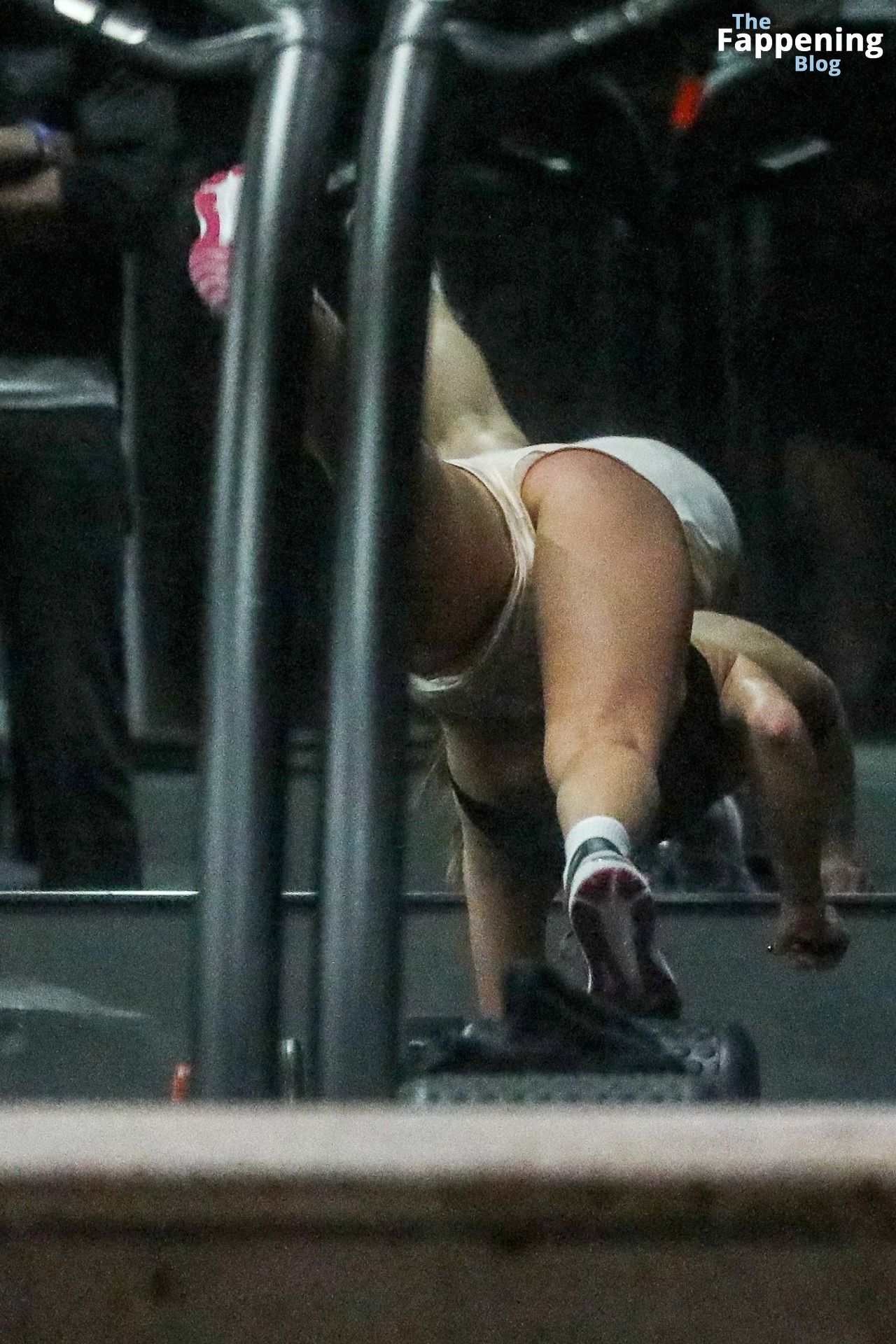 Эддисон Рэй демонстрирует свои подтянутые ноги и привлекательную заднюю часть, потея во время бега на беговой дорожке в спортзале, расположенном в Беверли-Хиллз, 19.01.2023.