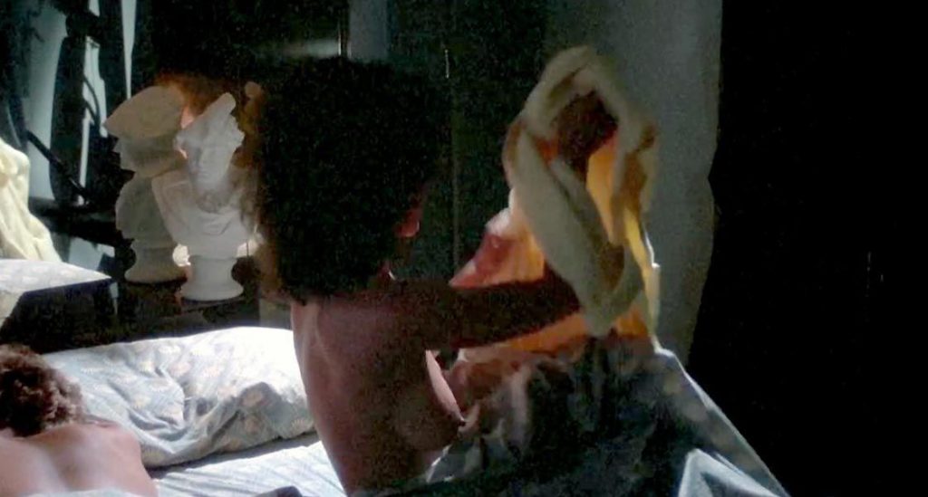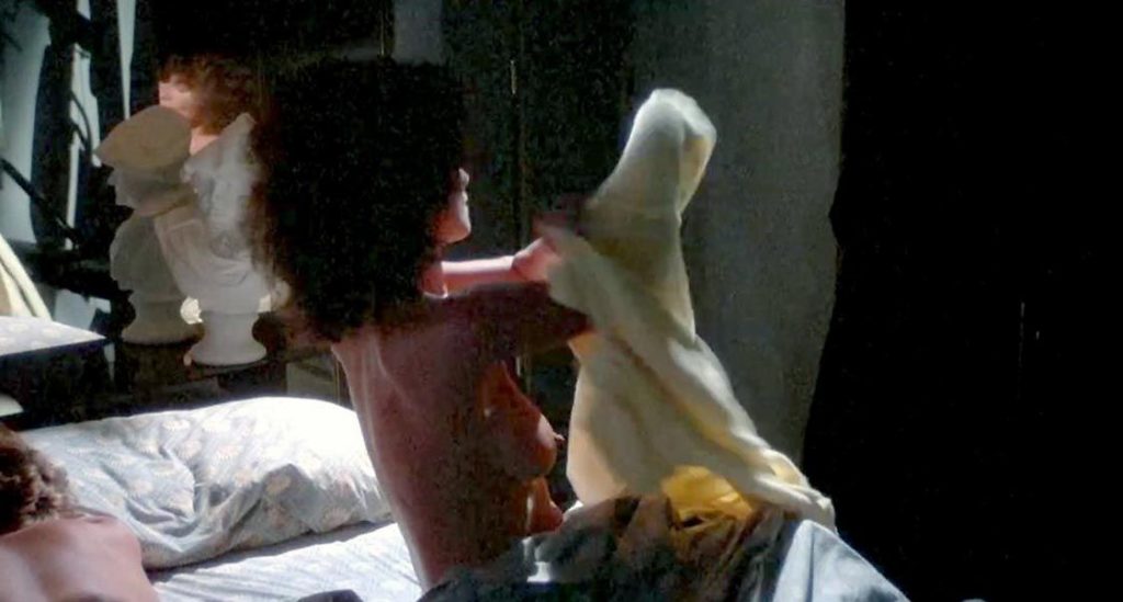 Our first scene is from the “Open House” movie, where we see Adrienne Barbeau in sexy lingerie as she seduces some guy. They start having sex, her tits pressed against him as we get to see her big hard nipples.