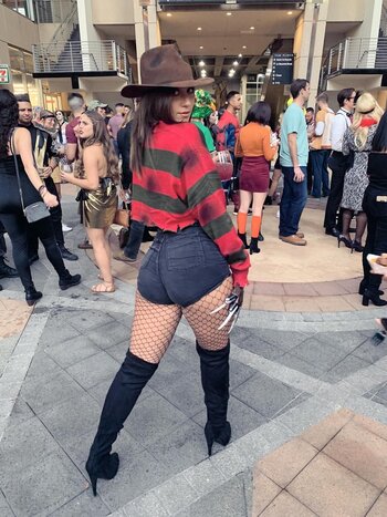 Она выбрала для мероприятия желто-розовое платье, демонстрирующее её декольте и стройные ноги. Агнес Моника Мульйото — 33-летняя индонезийская певица, телеведущая и артистка.