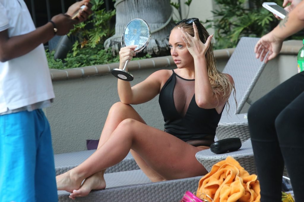 Эйслайн Хорган-Уоллес загорает топлес у бассейна в Лос-Анджелесе, 30.06.2017. Эйслайн Хорган-Уоллес — телеведущая реалити-шоу, модель, дизайнер, актриса, колумнист журнала. Возраст: 38.