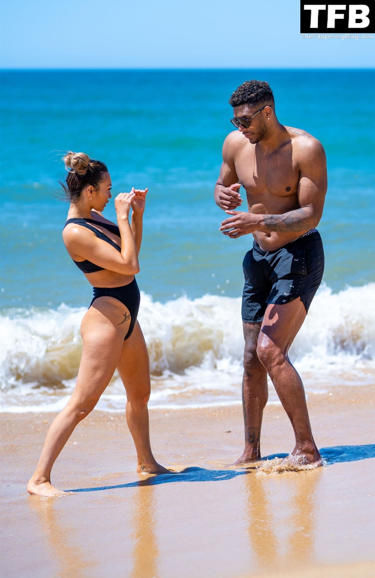 AJ выглядела сногсшибательно, демонстрируя все свои изгибы в сексуальном купальнике, в то время как Тео показывал своё впечатляющее телосложение под палящим португальским солнцем.