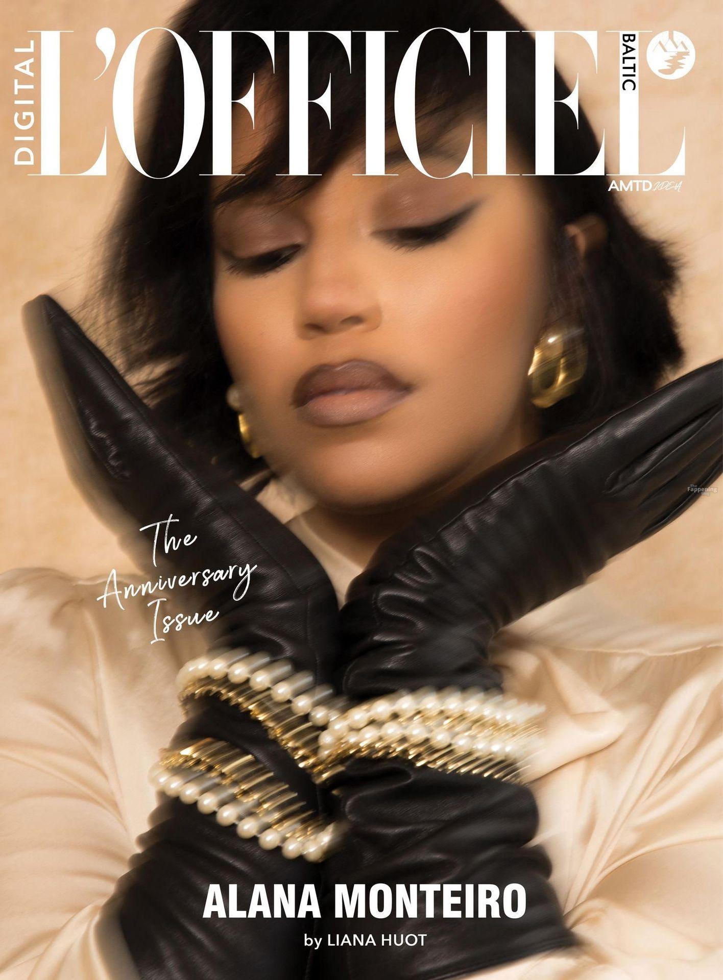 Алана Монтейро сияет в юбилейном выпуске L’Officiel, одетая в сатин, жемчуг и кожаные перчатки для образа, который элегантен и вне времени