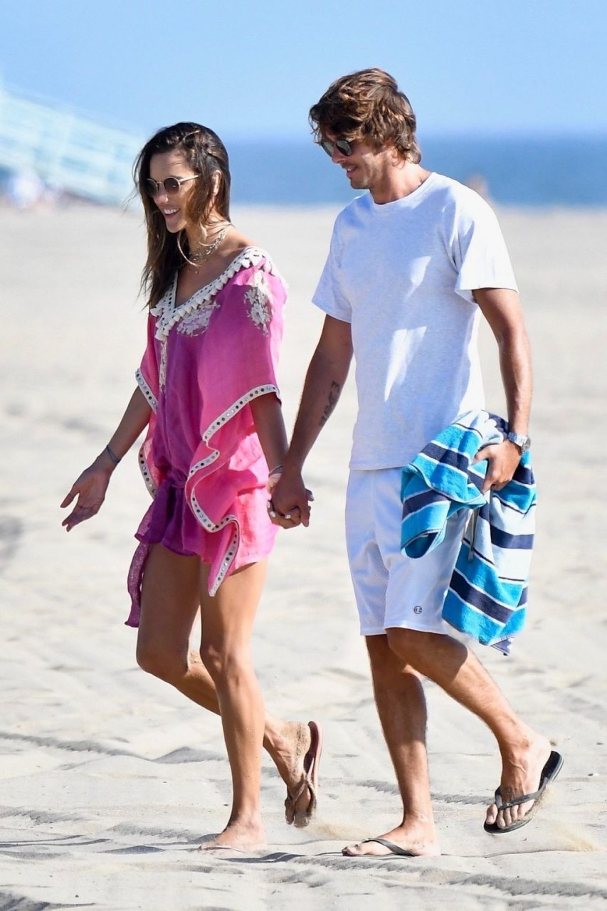 Бразильская модель Алессандра Амбросио наслаждается днем на пляже в Санта-Монике с семьей и друзьями, отмечая 11-й день рождения своей дочери Анжи Луизы, 25.08.2019.
