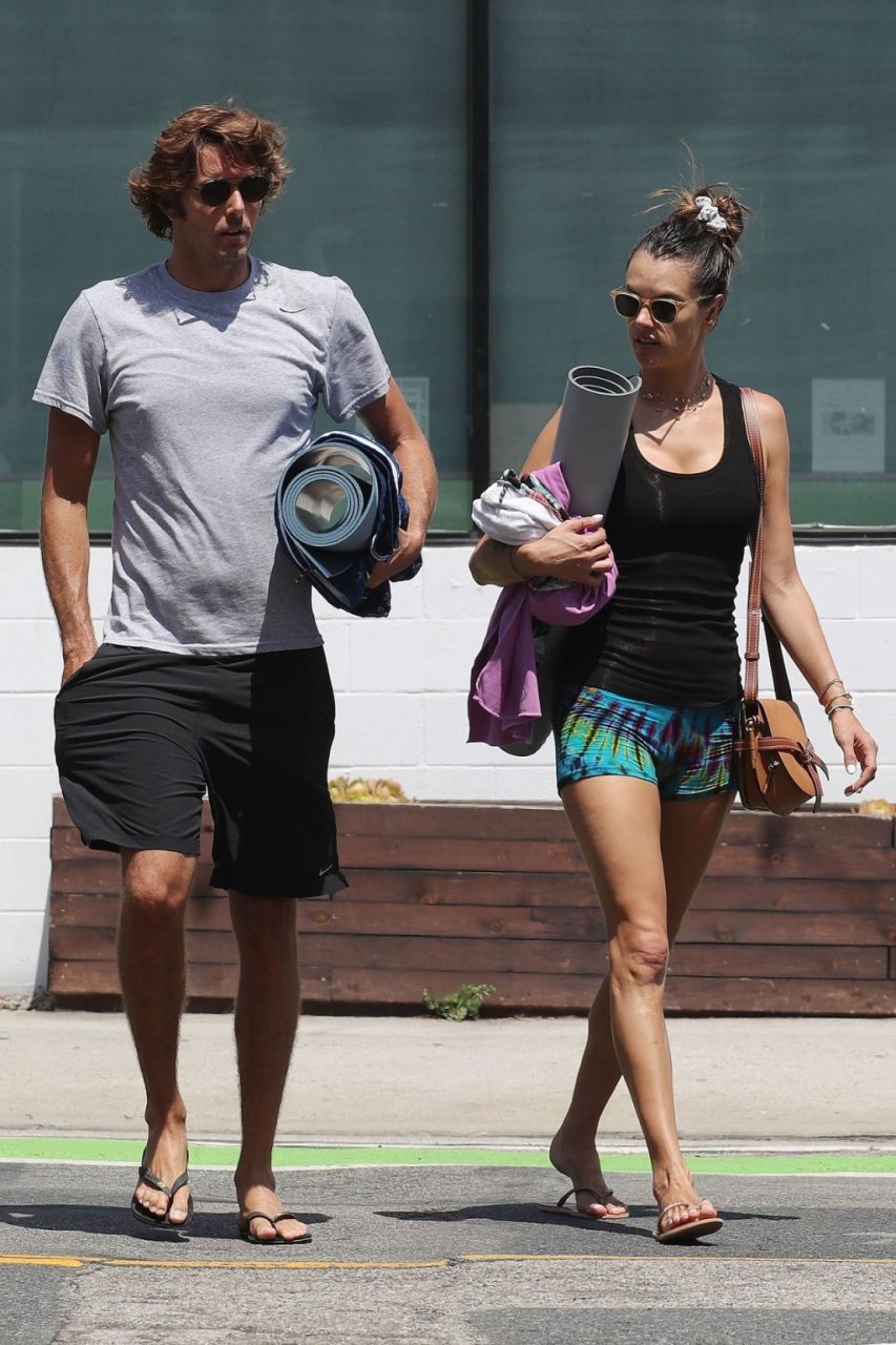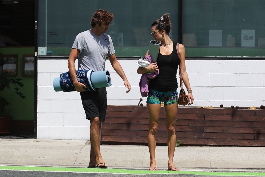 Бразильская супермодель Алессандра Амбросио целует своего парня Николо Одди после совместного занятия йогой в YogaWorks в Санта-Монике, 19.08.2019.