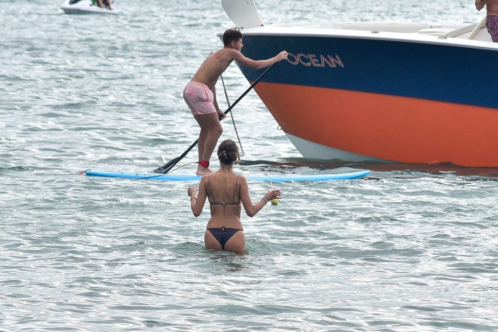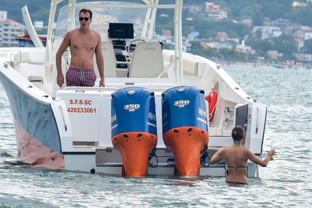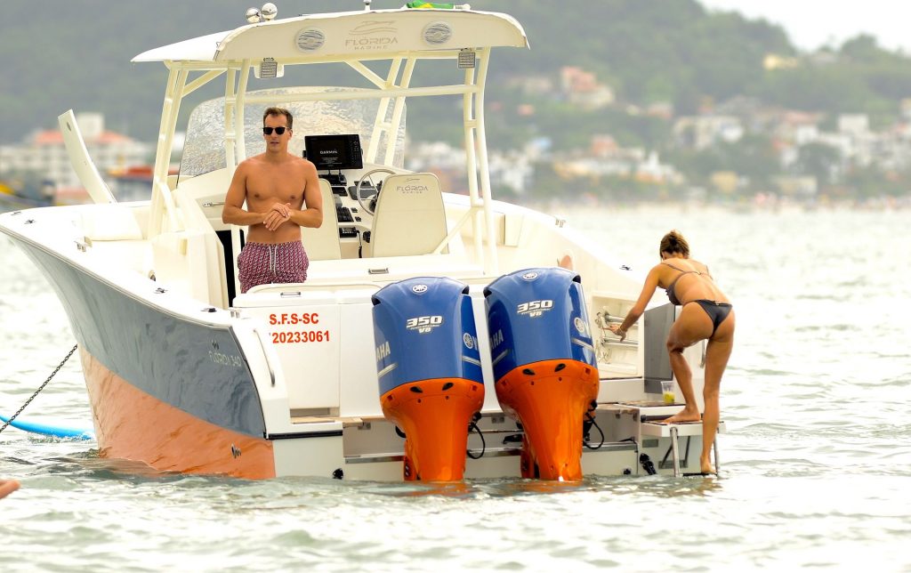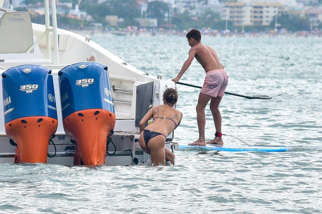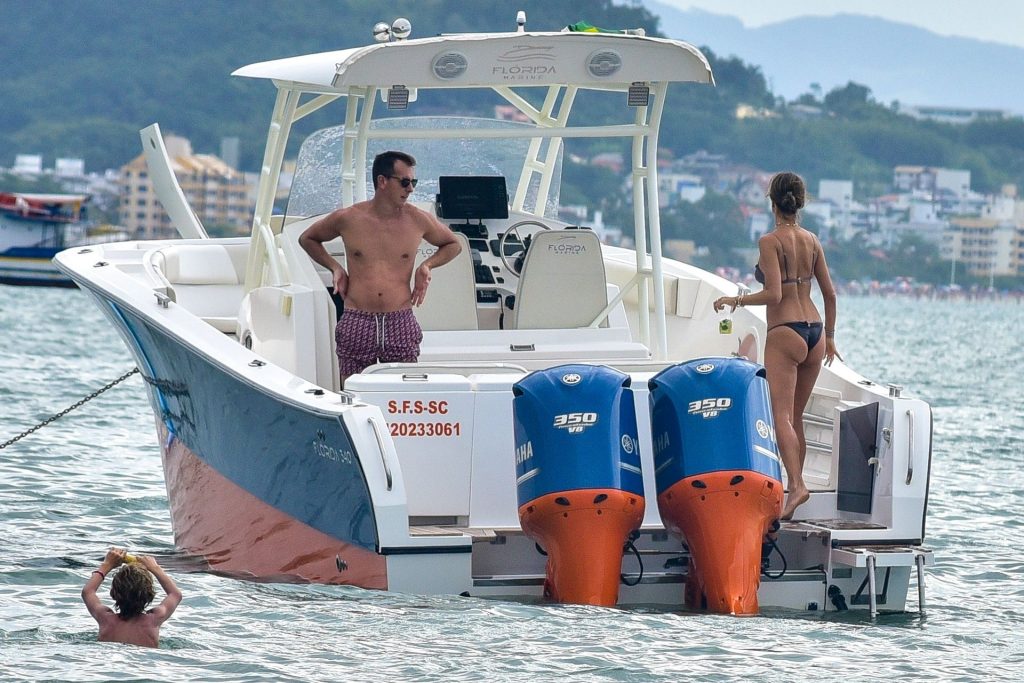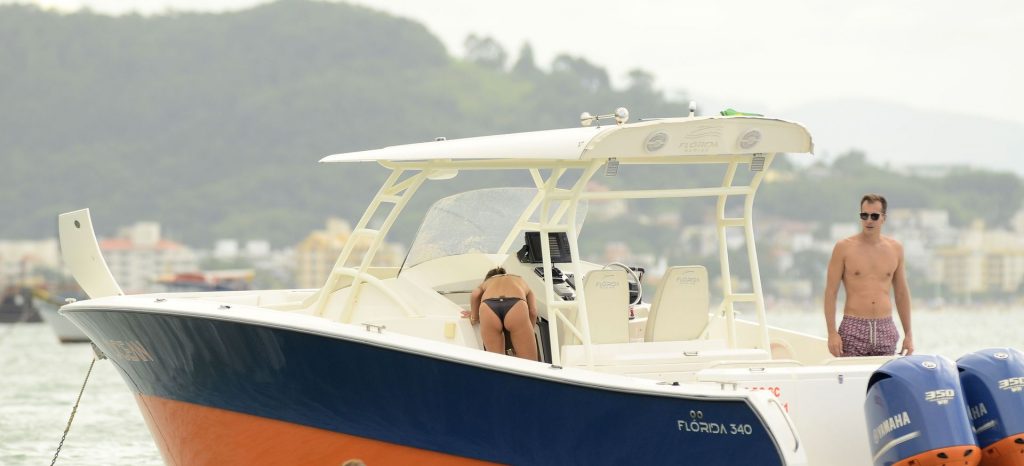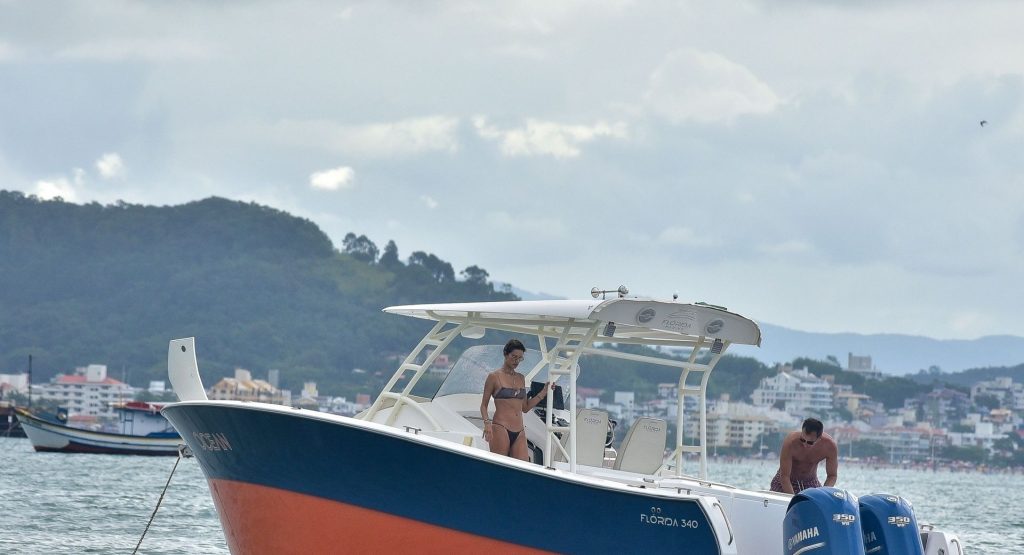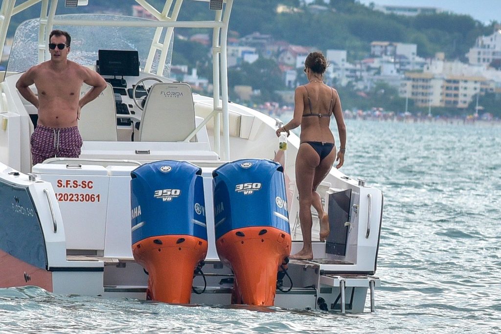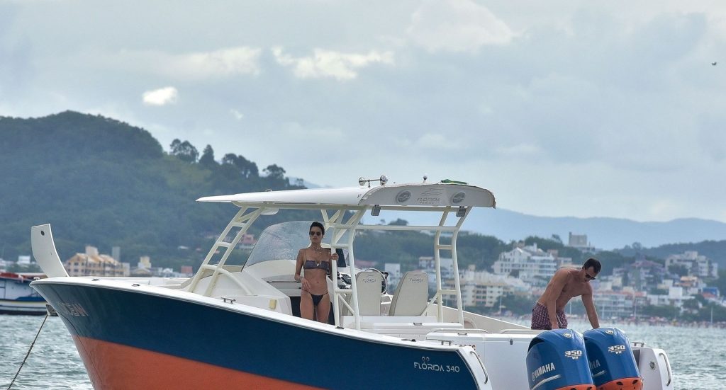 Александра Амбросио наслаждается днем на скоростной лодке, играет в пляжный теннис во Флорианополисе, 01/03/2020. Потрясающая супермодель максимально использовала свой отпуск в родной Бразилии, наслаждаясь качественным временем с семьей — мужем и детьми.