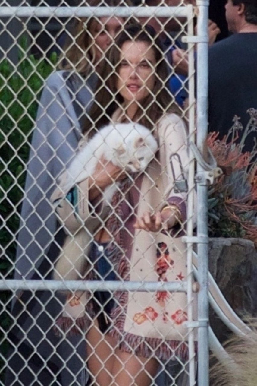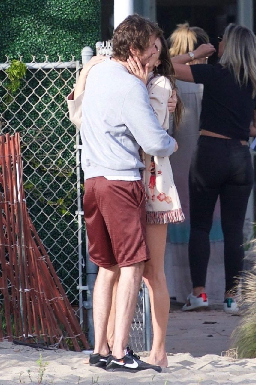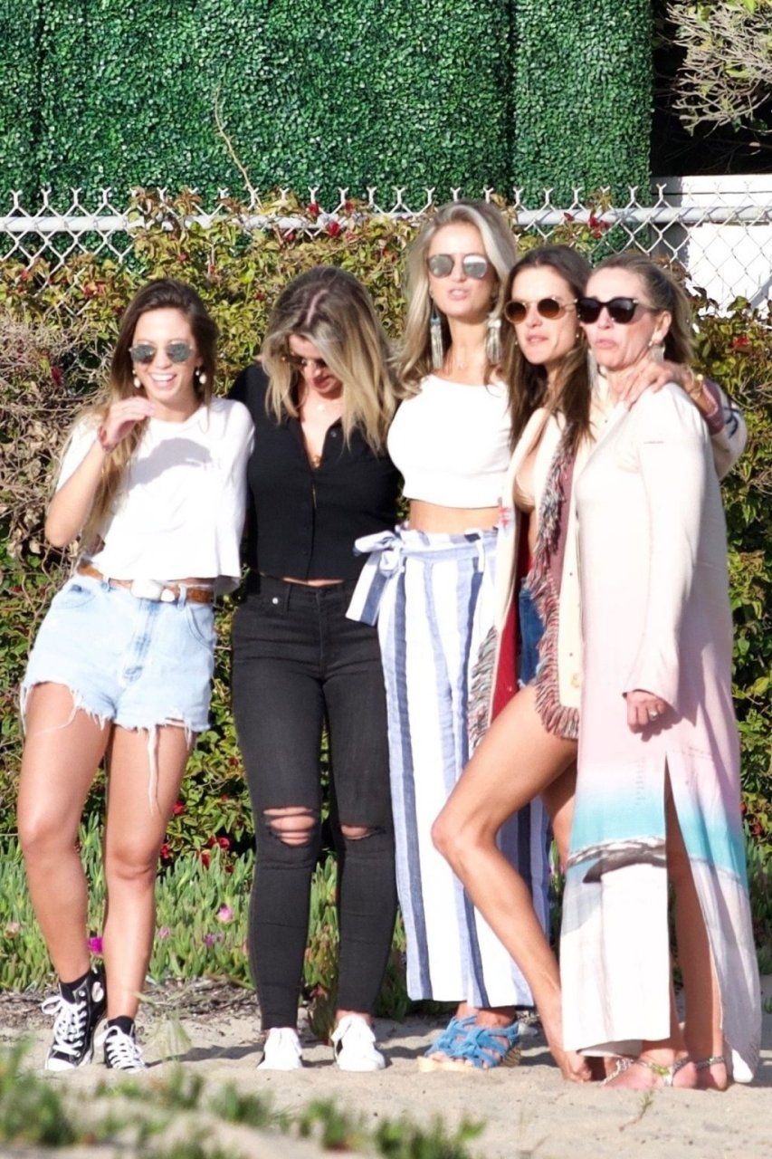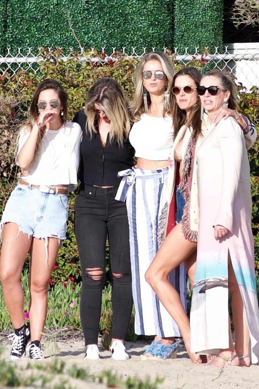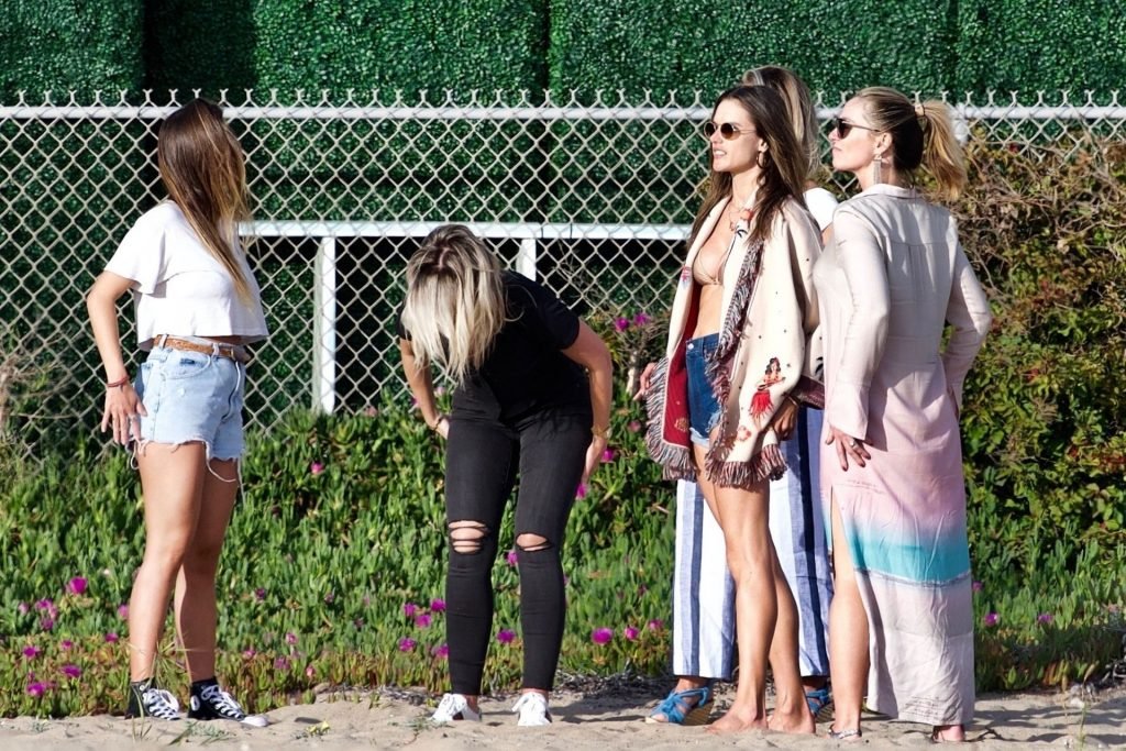 Александра Амбросио веселится с друзьями на пляже в Малибу, Калифорния, 07.04.2019. Позже модель отходит в сторону, чтобы насладиться проявлениями нежности с её парнем Николо Одди.