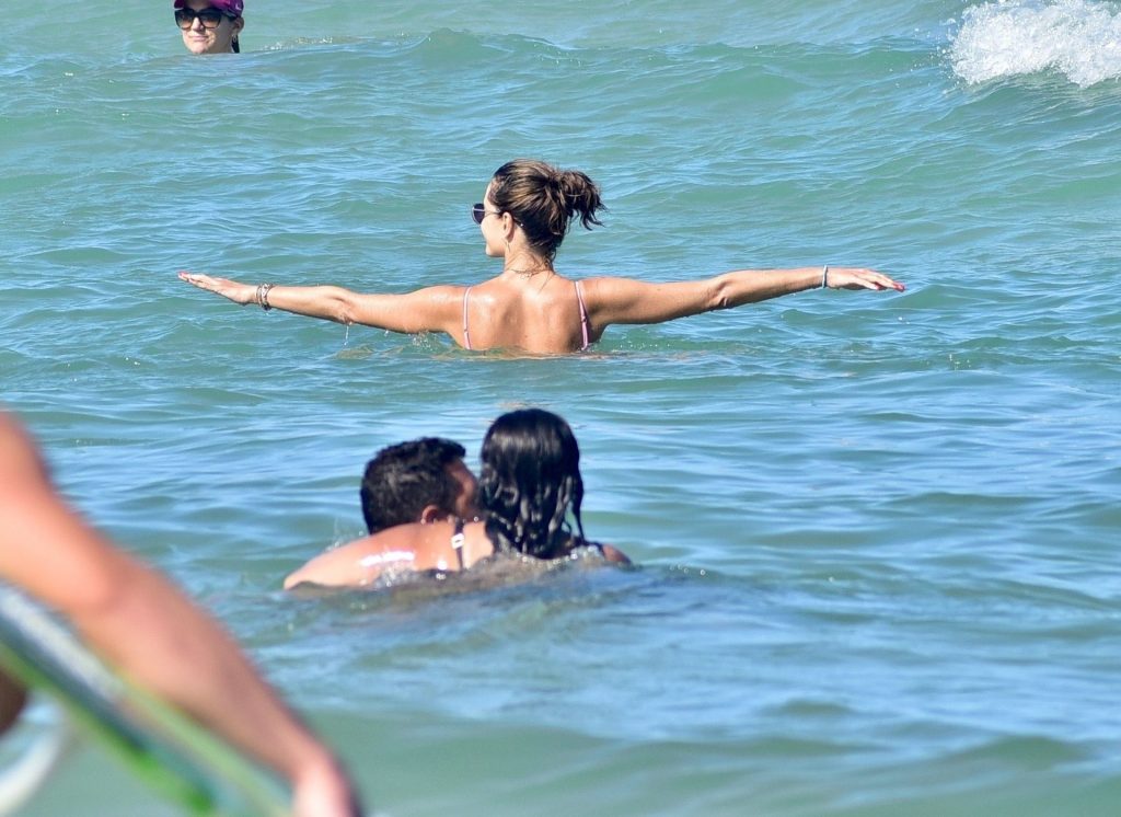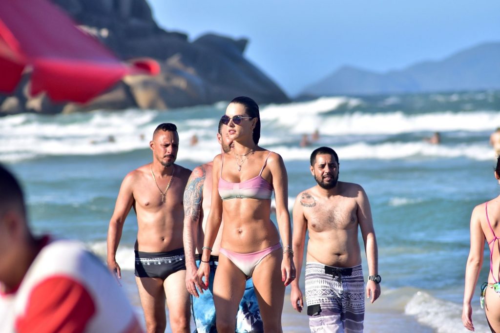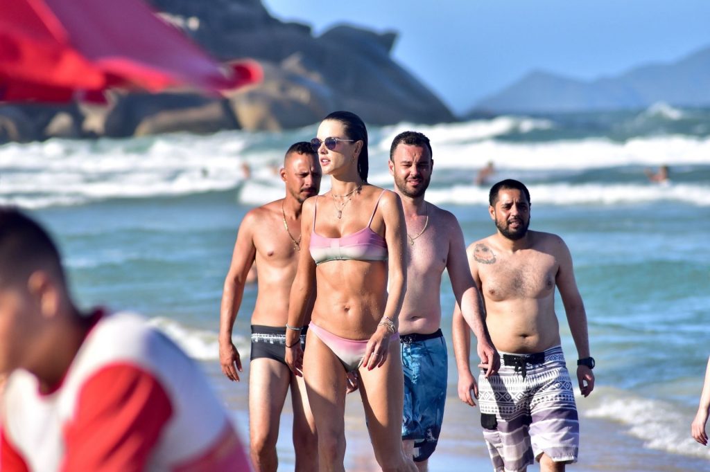 Бразильская бомба Александра Амбросио и её парень Николо Одди привлекают внимание на пляже во Флорианополисе, Бразилия, 30.12.2019. Высокая модель была замечена в весёлой компании друзей и семьи. Александра также демонстрирует свою фигуру в двухчастном бикини, играя в пляжный теннис.
