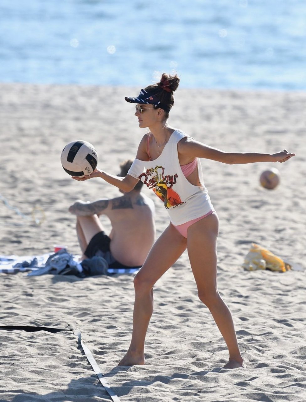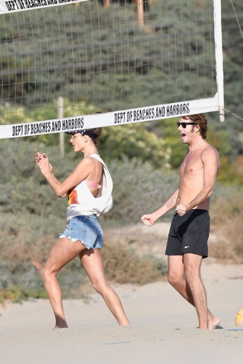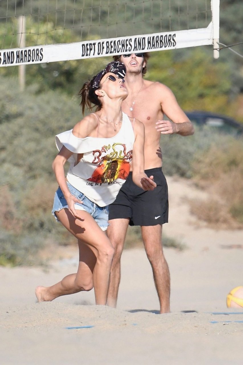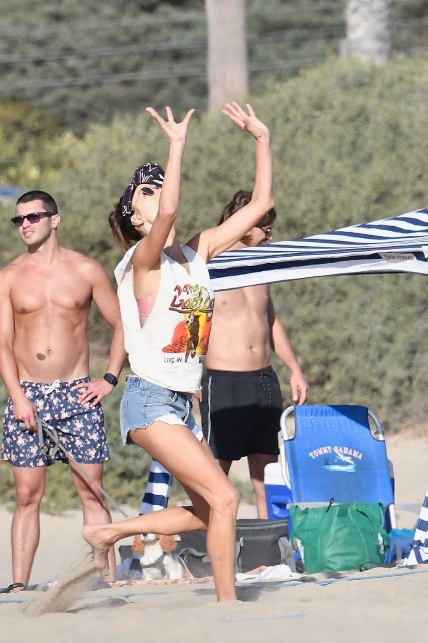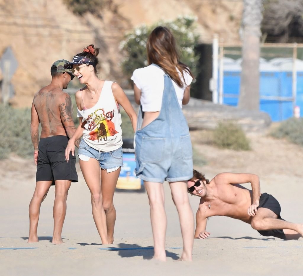 Александра Амбросио наслаждается прекрасным субботним днем, играя в волейбол на пляже Санта-Моника с детьми, бойфрендом Николо Одди и друзьями, 13.10.2019. 38-летняя бразильская красавица выглядела так, будто отлично проводит время с широкой улыбкой на лице.