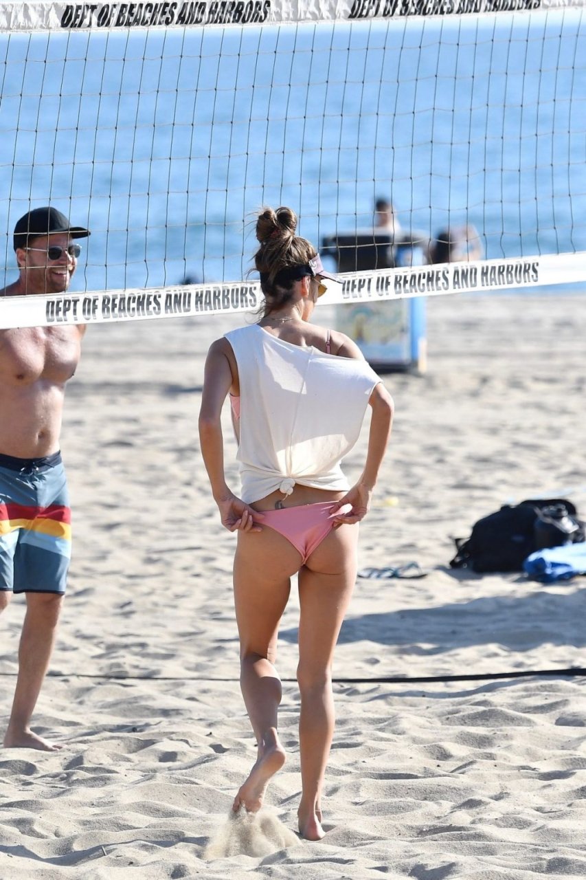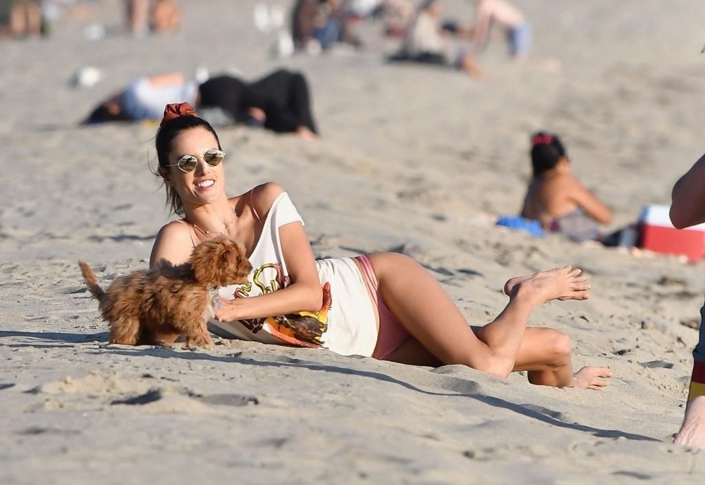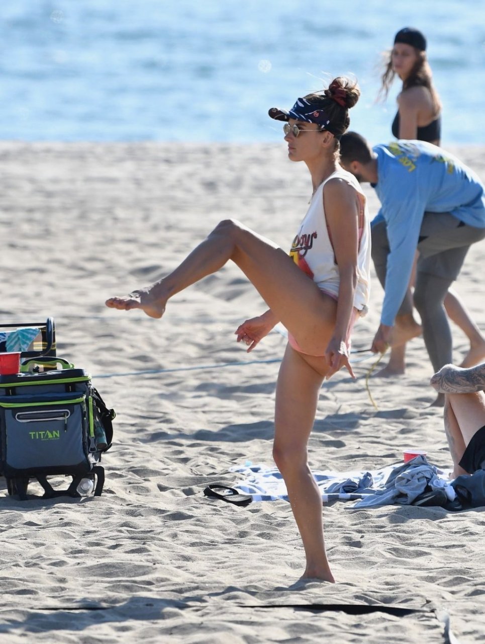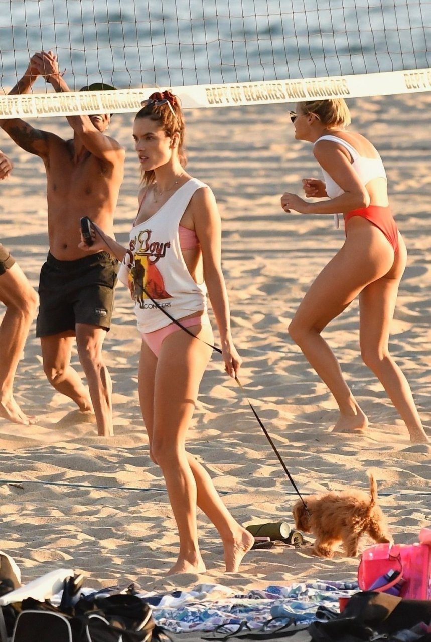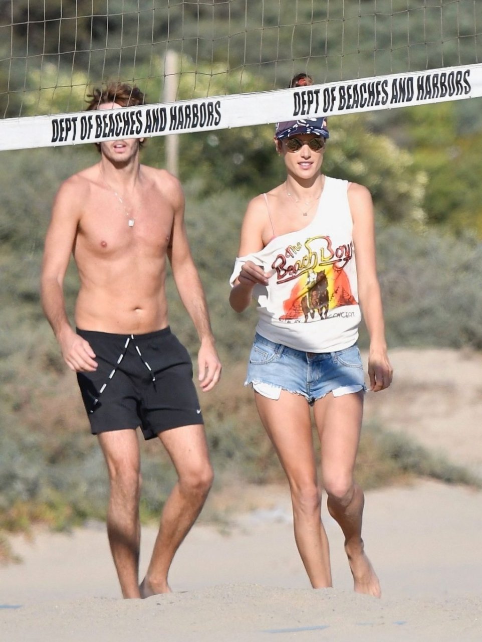 Александра Амбросио наслаждается прекрасным субботним днем, играя в волейбол на пляже Санта-Моника с детьми, бойфрендом Николо Одди и друзьями, 13.10.2019. 38-летняя бразильская красавица выглядела так, будто отлично проводит время с широкой улыбкой на лице.