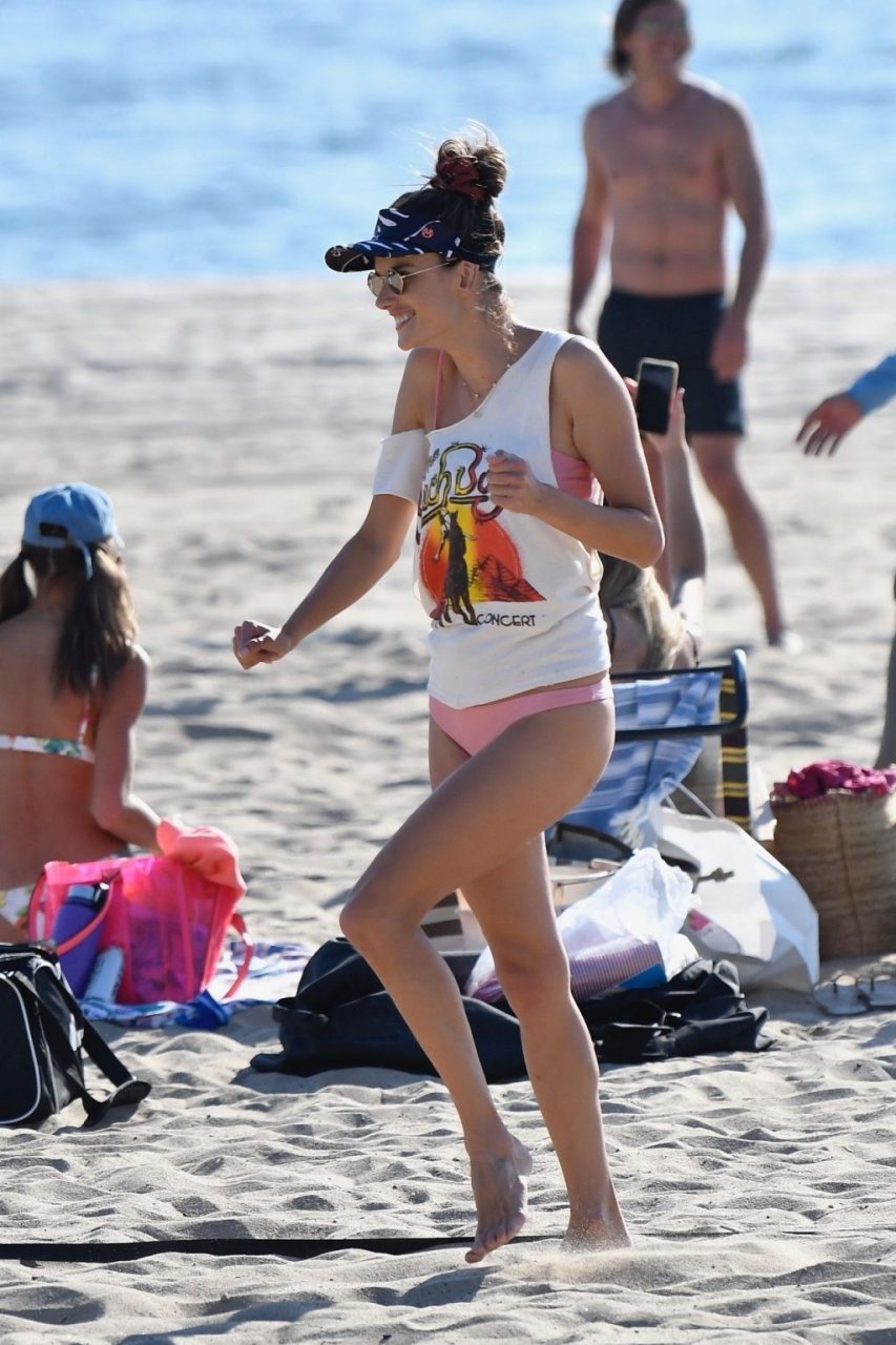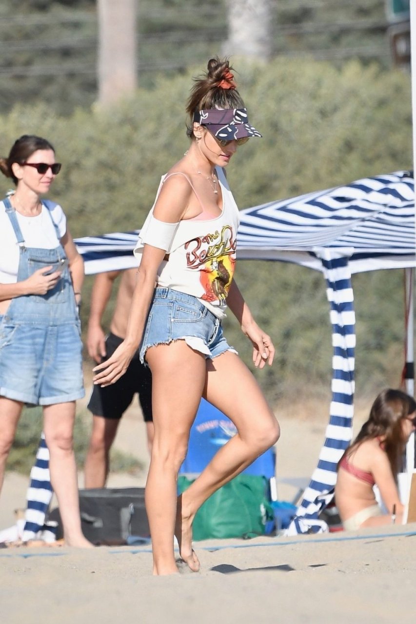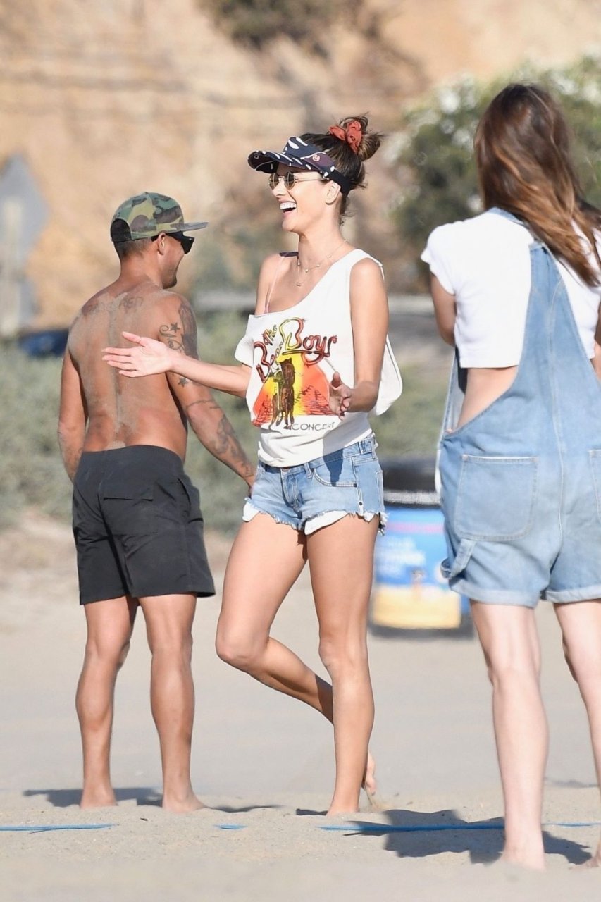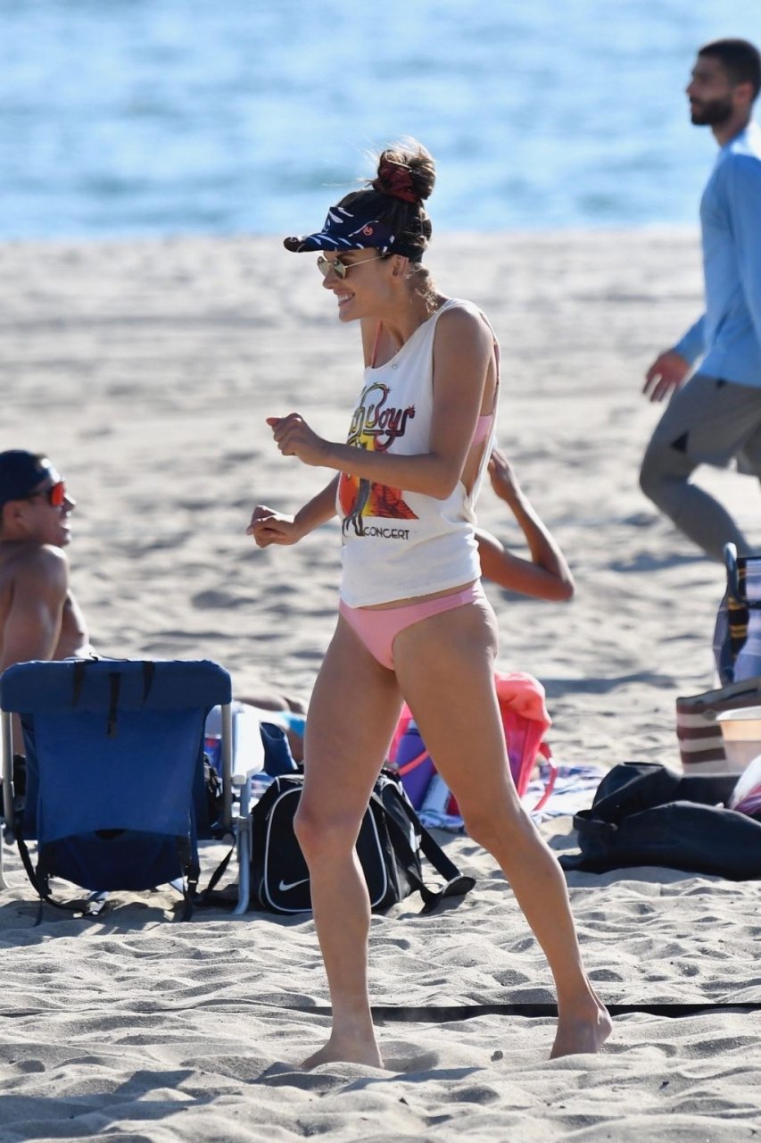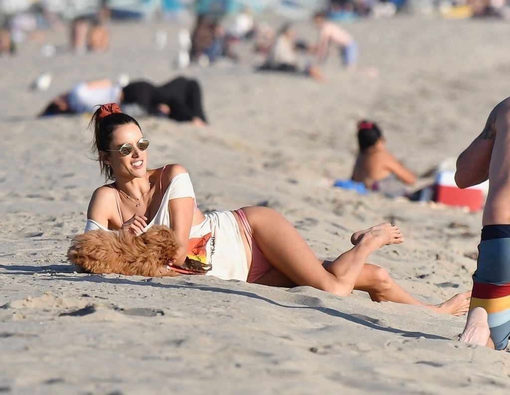 Александра Амбросио наслаждается прекрасным субботним днем, играя в волейбол на пляже Санта-Моника с детьми, бойфрендом Николо Одди и друзьями, 13.10.2019. 38-летняя бразильская красавица выглядела так, будто отлично проводит время с широкой улыбкой на лице.