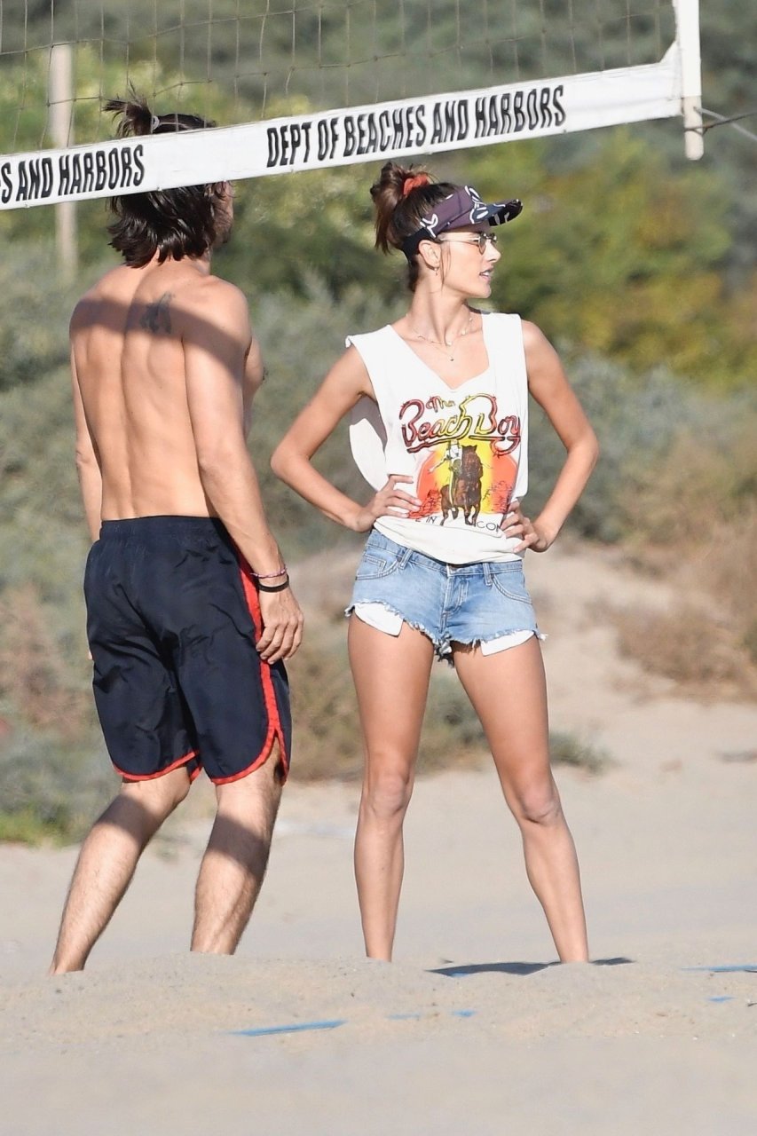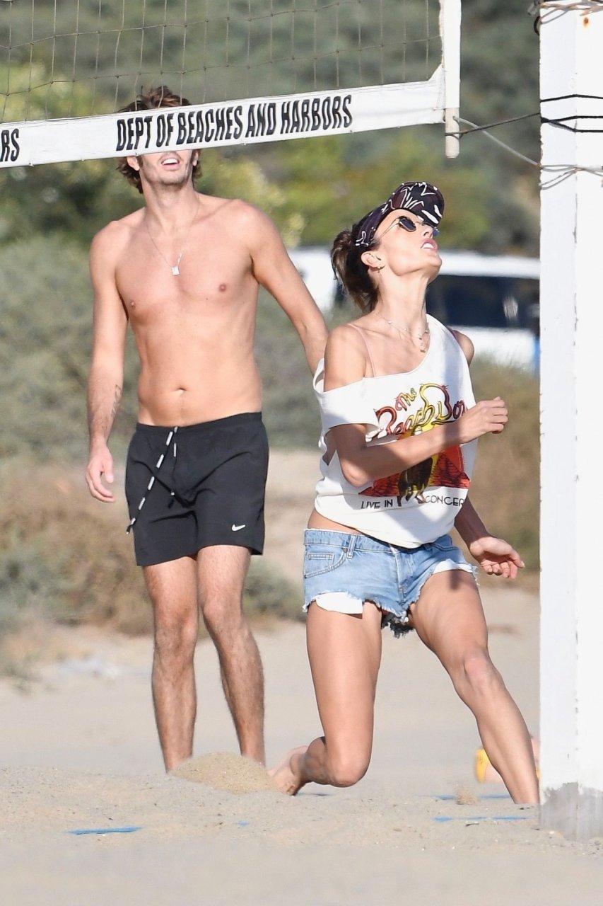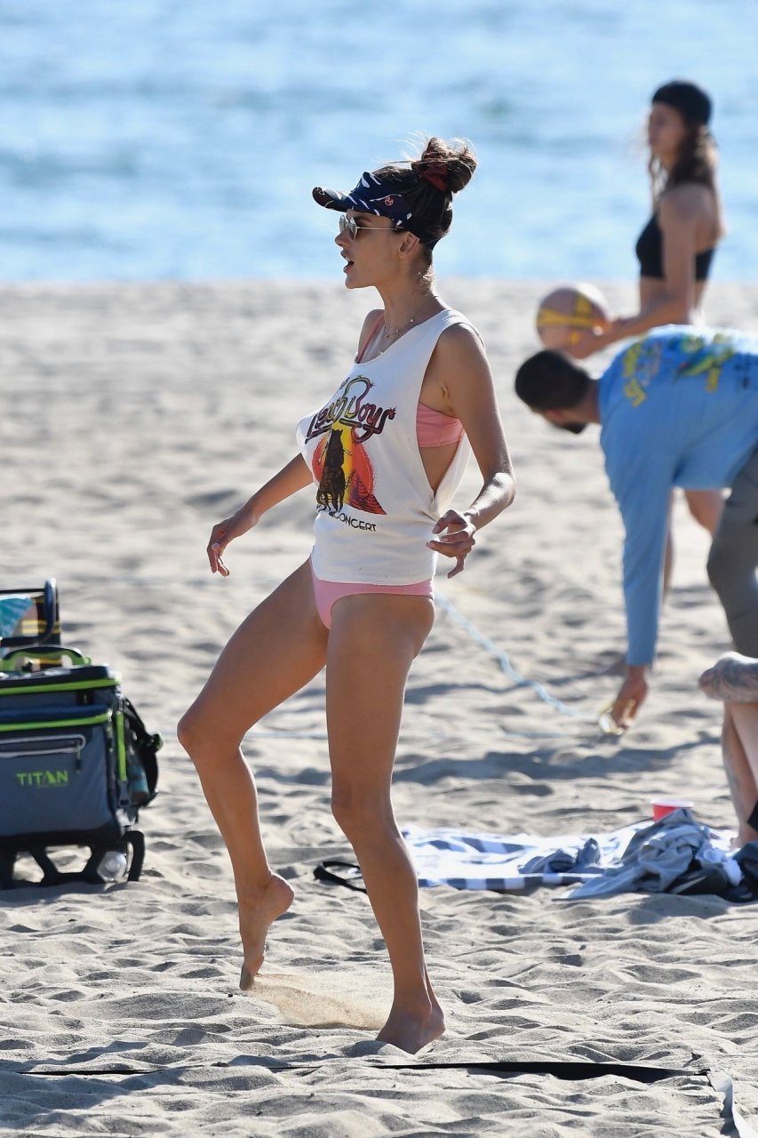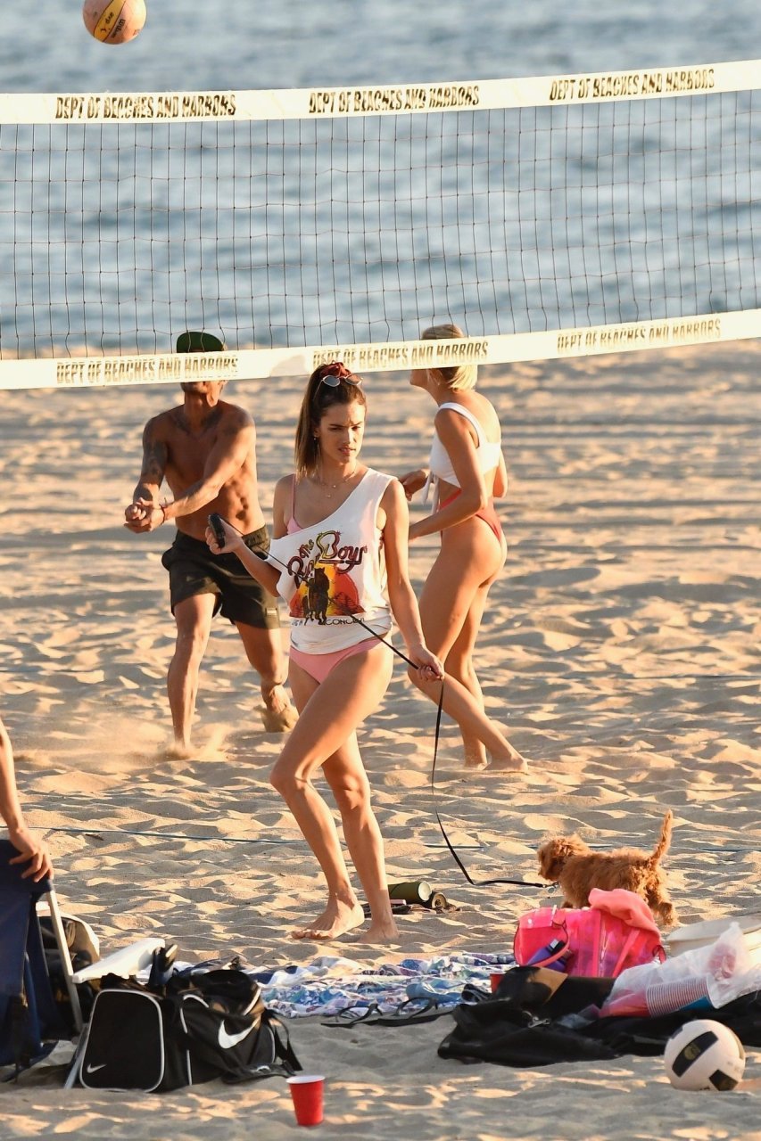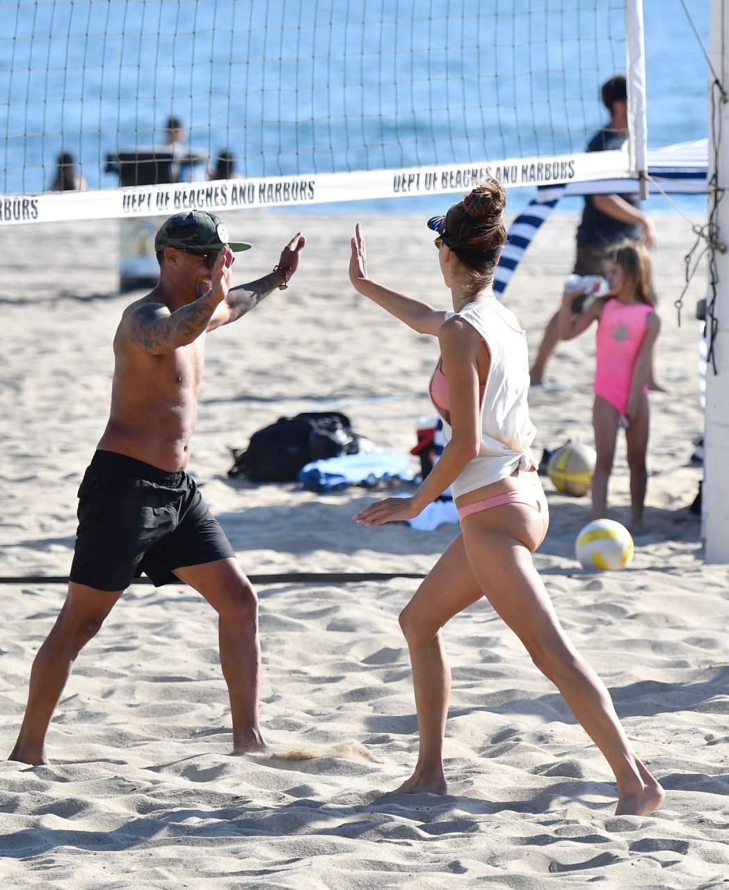 Александра Амбросио наслаждается прекрасным субботним днем, играя в волейбол на пляже Санта-Моника с детьми, бойфрендом Николо Одди и друзьями, 13.10.2019. 38-летняя бразильская красавица выглядела так, будто отлично проводит время с широкой улыбкой на лице.