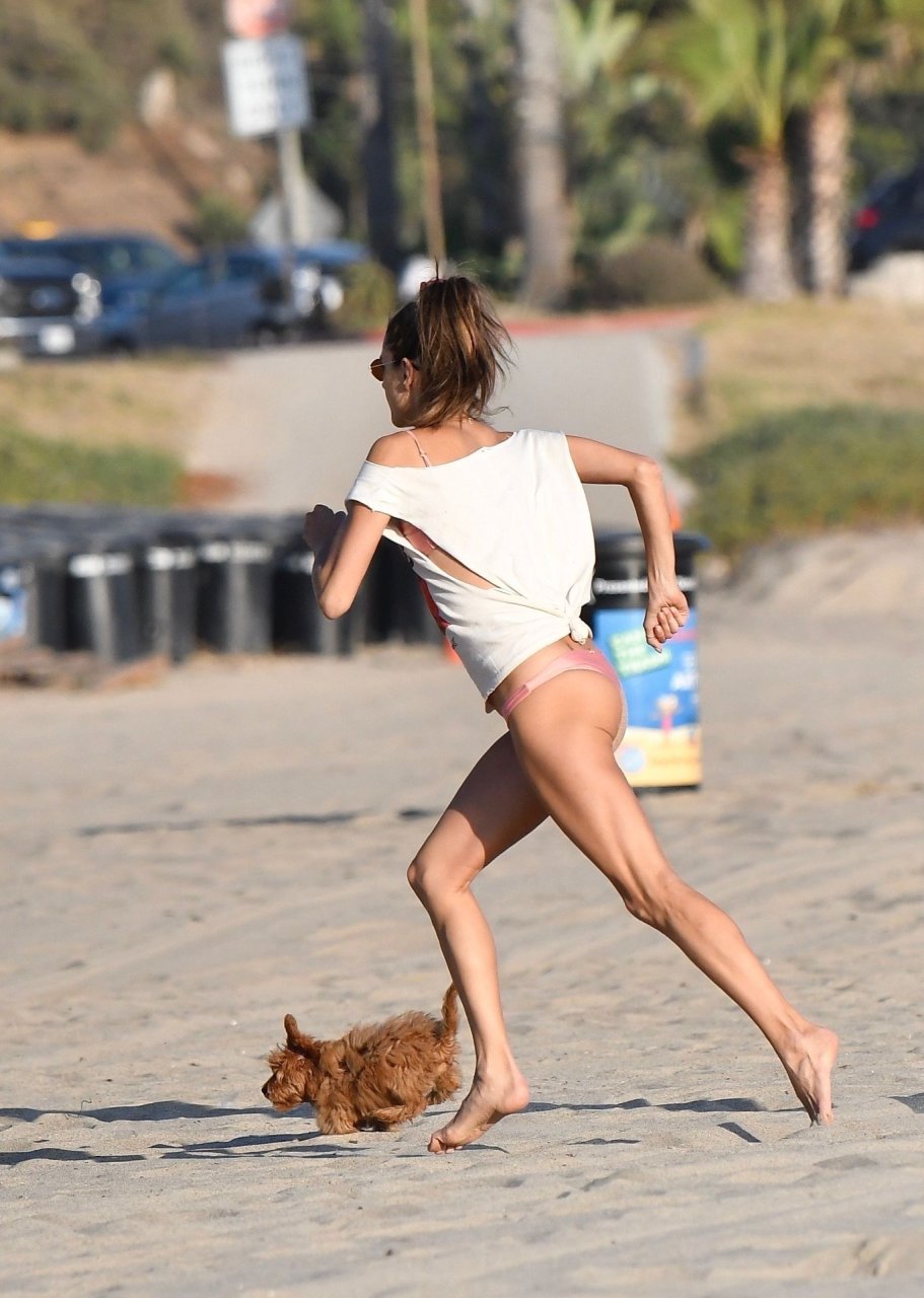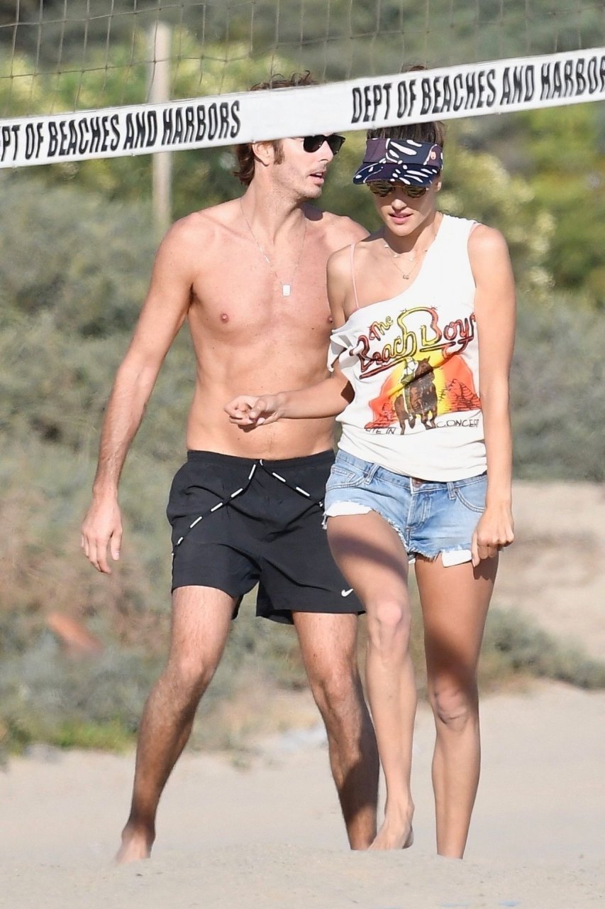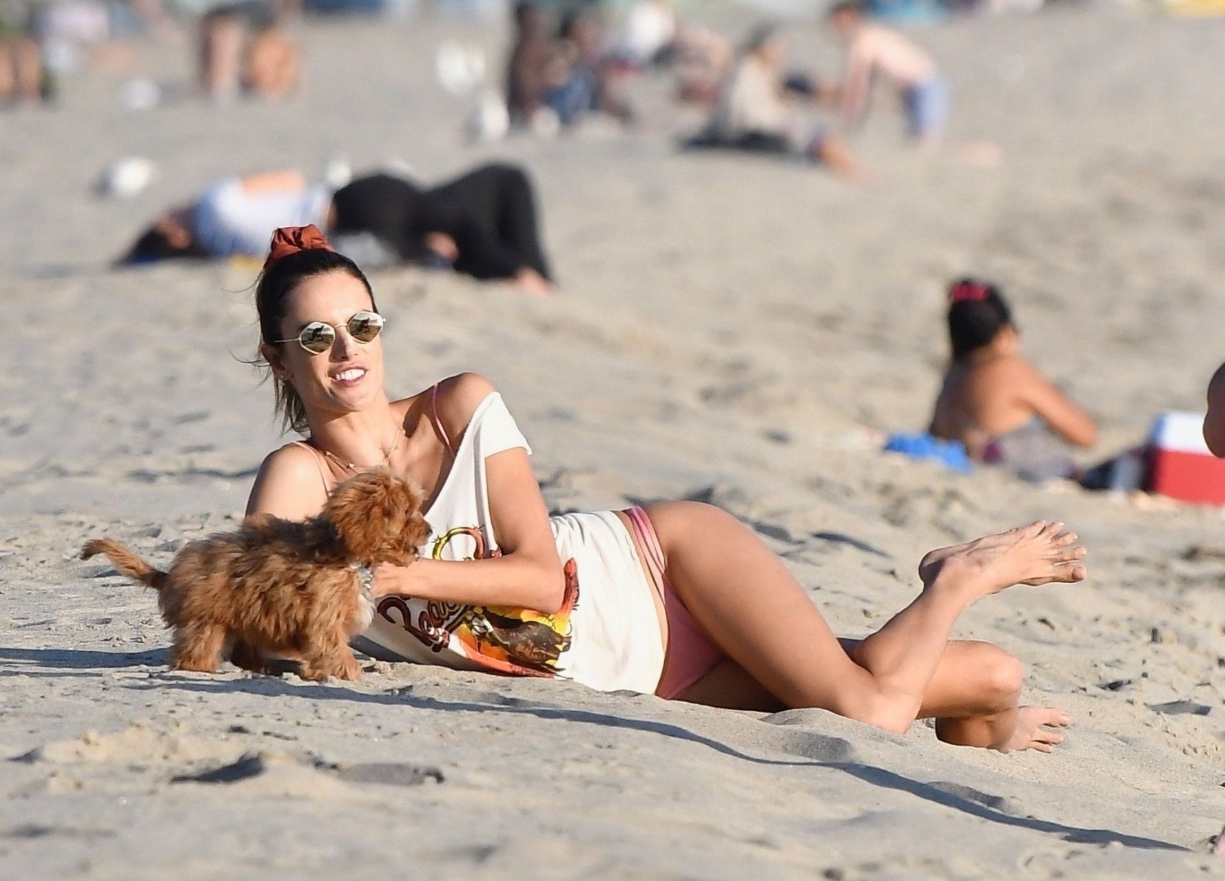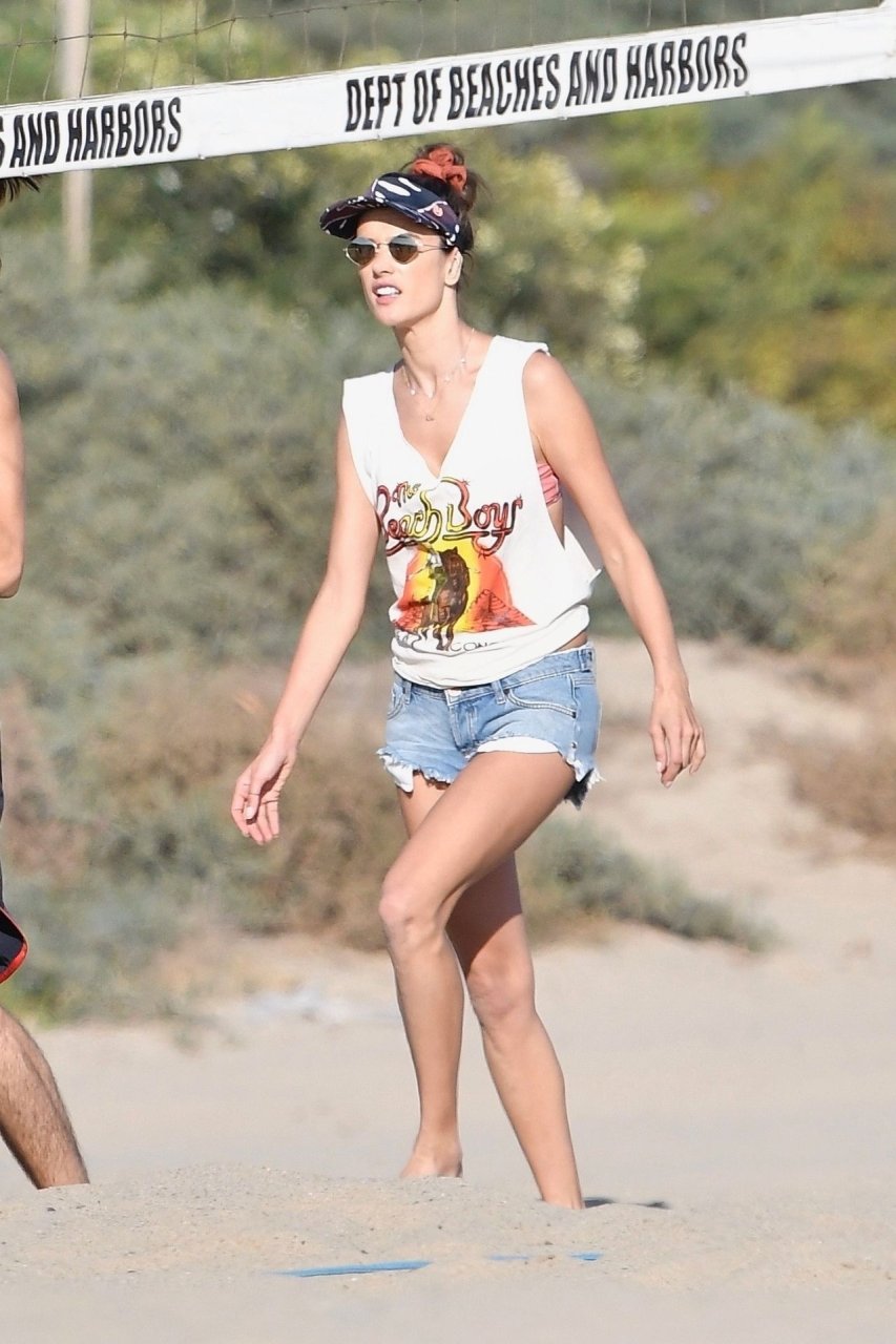 Александра Амбросио наслаждается прекрасным субботним днем, играя в волейбол на пляже Санта-Моника с детьми, бойфрендом Николо Одди и друзьями, 13.10.2019. 38-летняя бразильская красавица выглядела так, будто отлично проводит время с широкой улыбкой на лице.