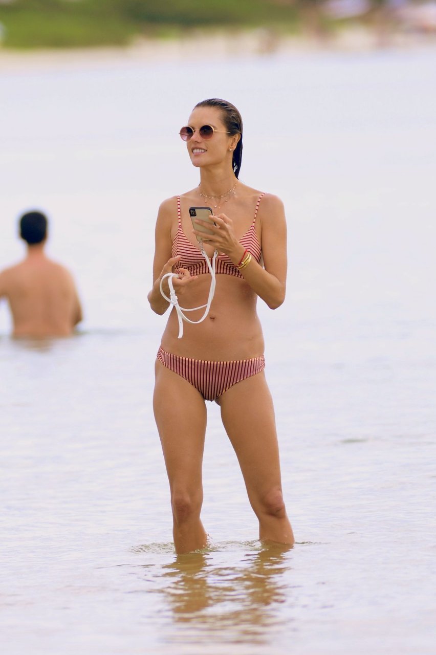 Бывшая модель Victoria’s Secret, Александра Амбросио продолжила свой показ бикини в конце года в Бразилии, выйдя на пляж в потрясающем полосатом красно-белом бикини, 23.12.2018. Помимо демонстрации своей невероятной фигуры, она также показала свою спортивную сторону, играя в пляжный волейбол на песке, а затем в море.
