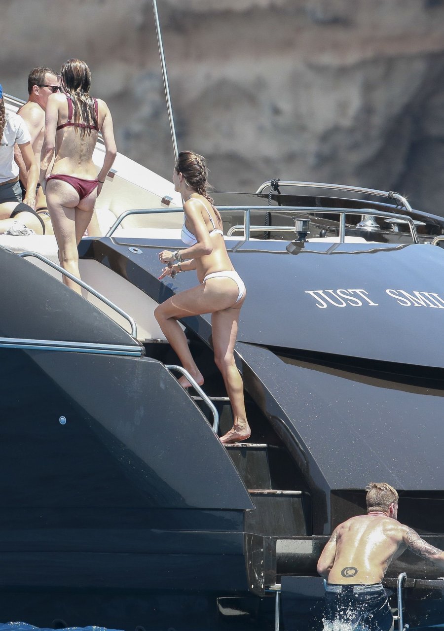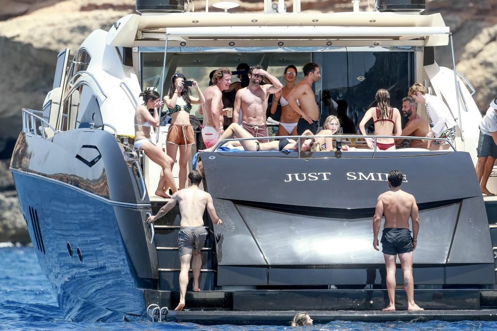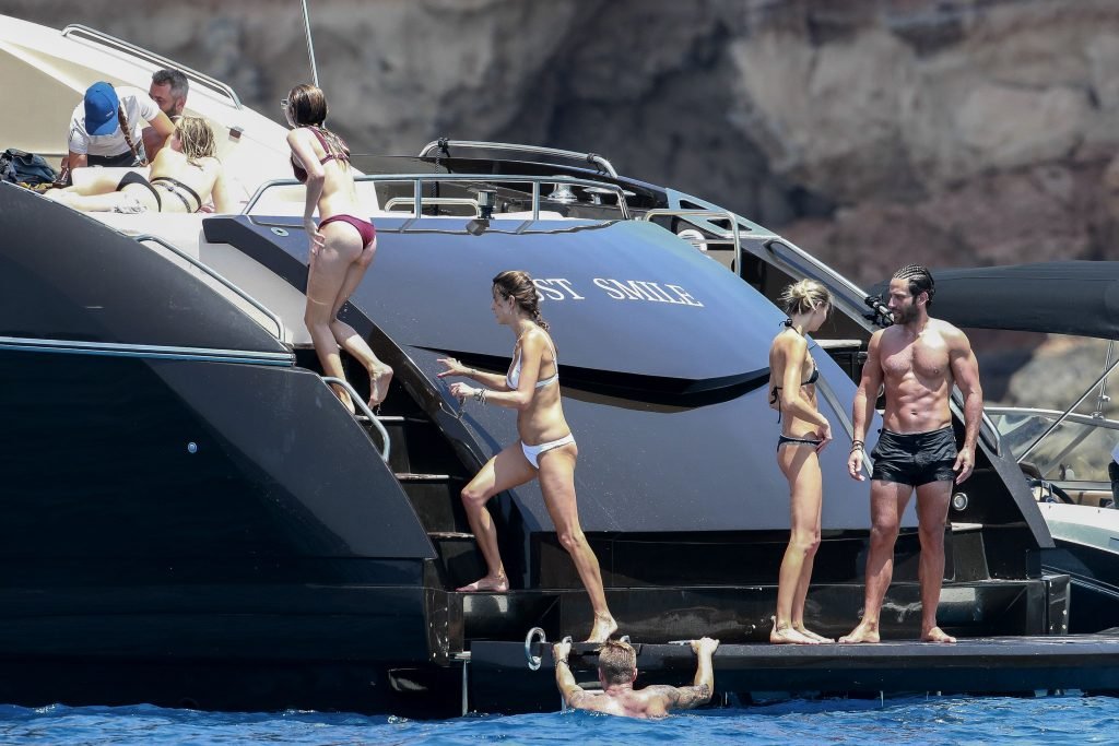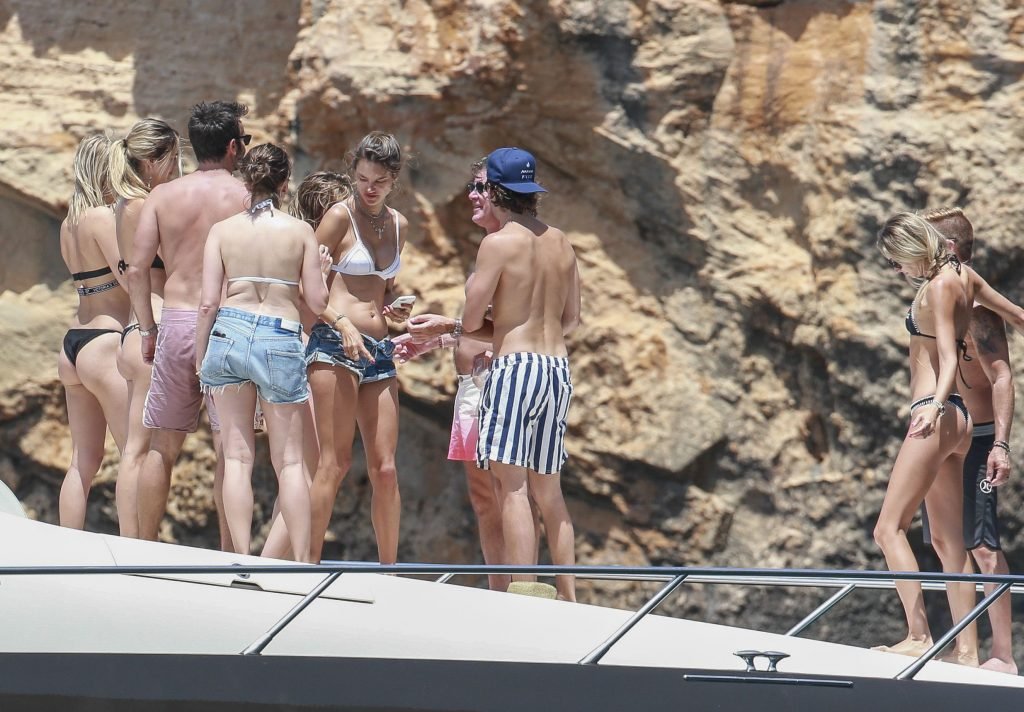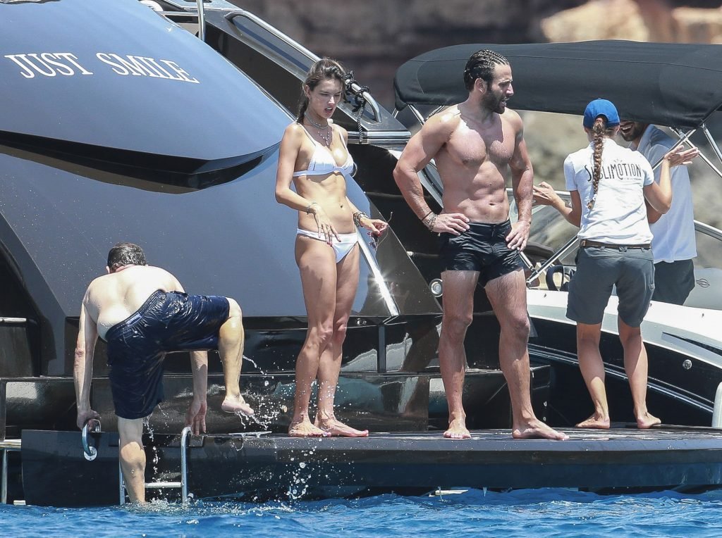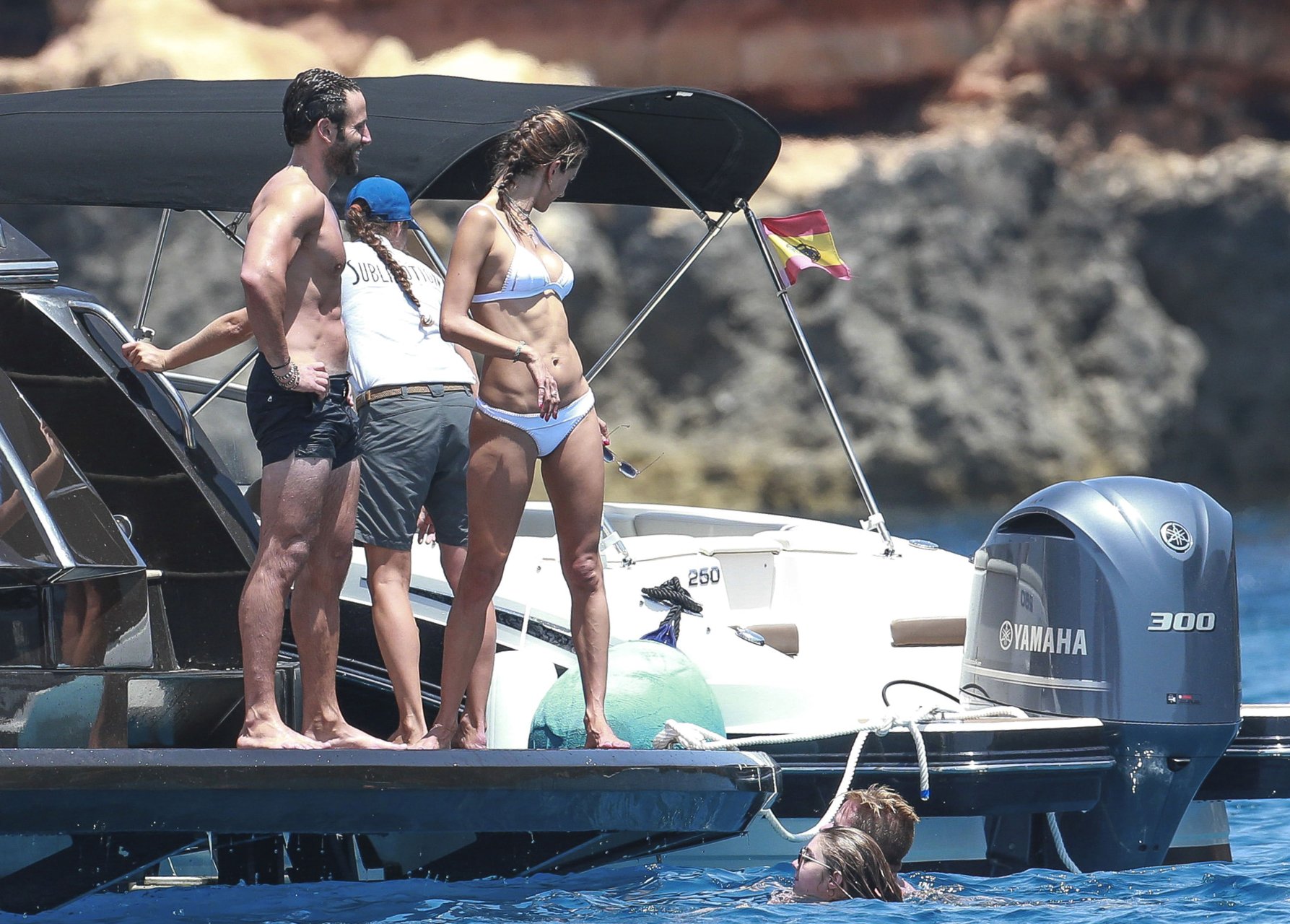 Супермодель Александра Амбросио с женихом Джейми Мазуром, Талитой Корреа, Луди Дельфино и другими друзьями наслаждались прогулкой на красивой лодке во время отпуска на Ибице, 11.07.2017.