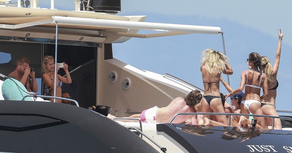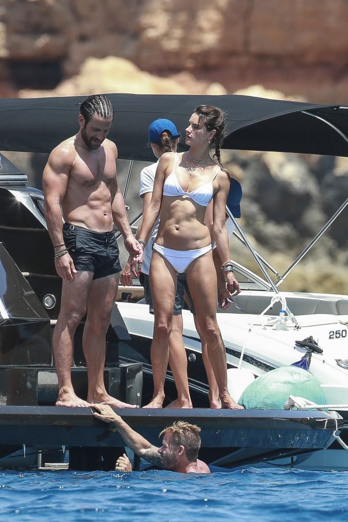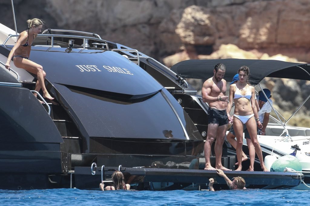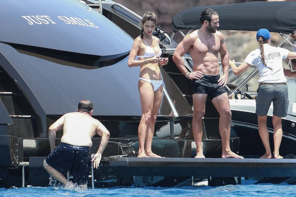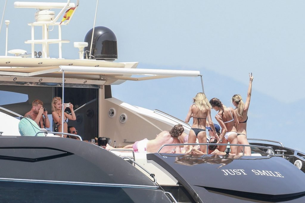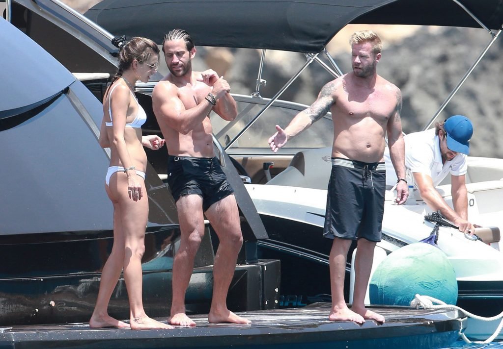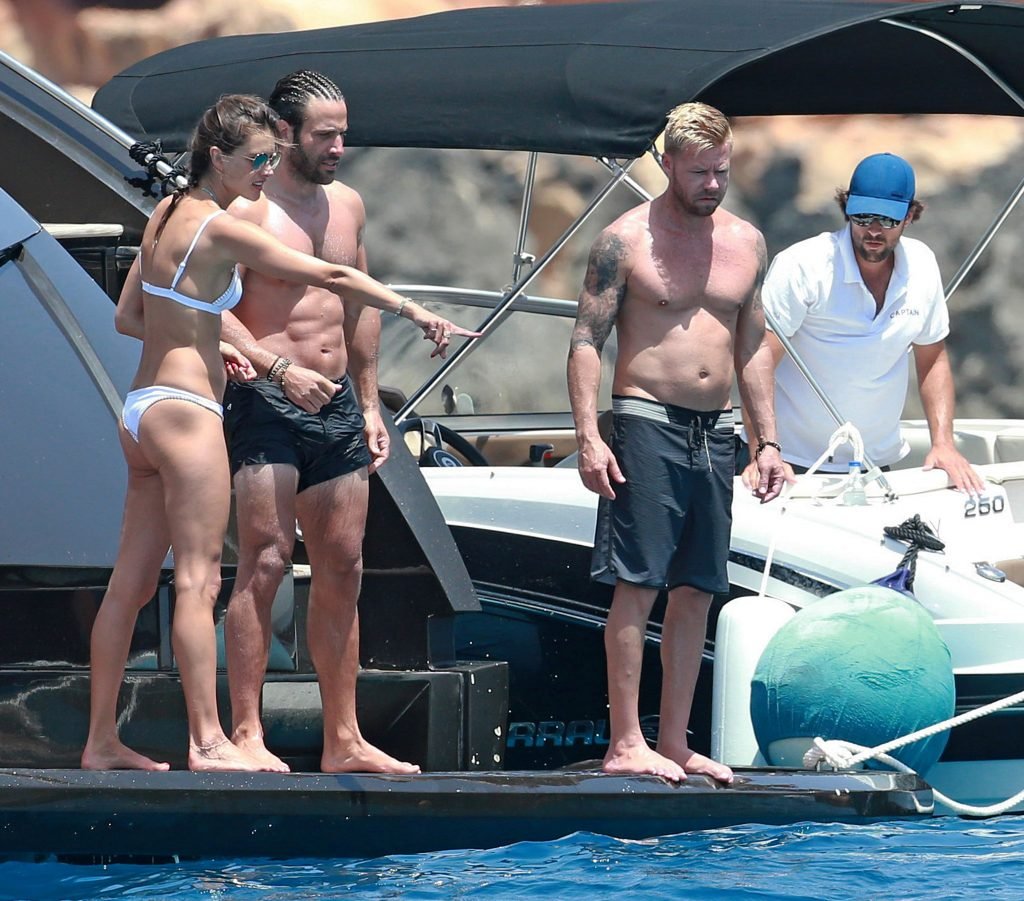 Супермодель Александра Амбросио с женихом Джейми Мазуром, Талитой Корреа, Луди Дельфино и другими друзьями наслаждались прогулкой на красивой лодке во время отпуска на Ибице, 11.07.2017.