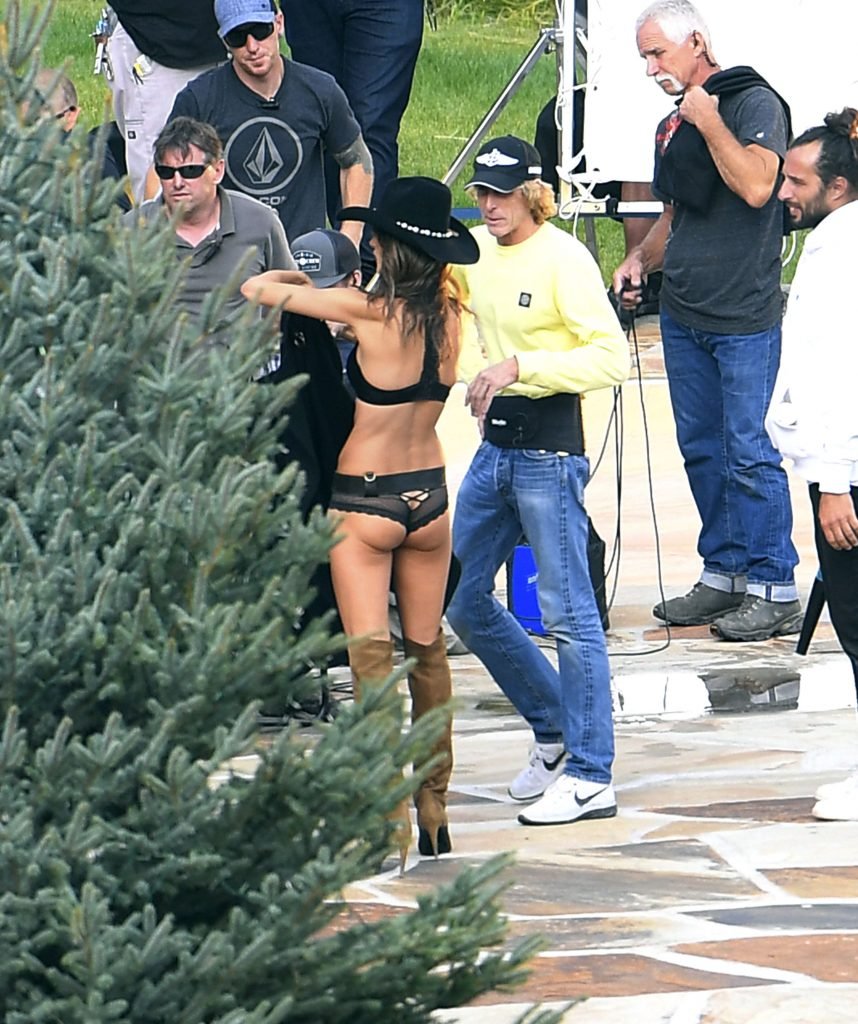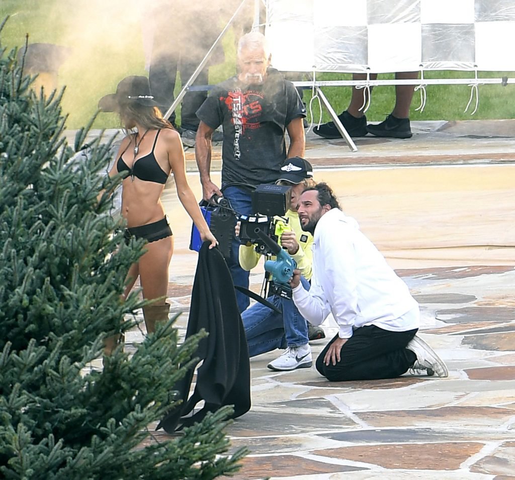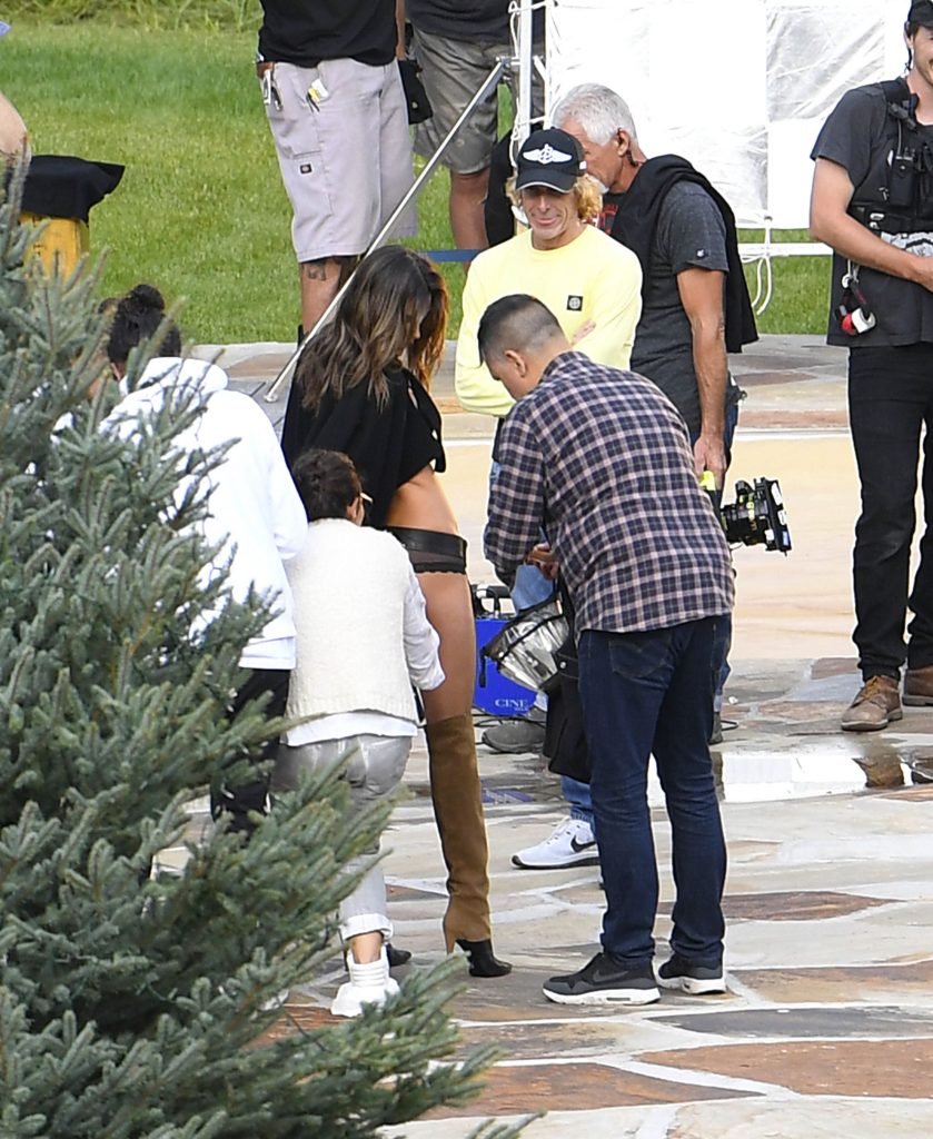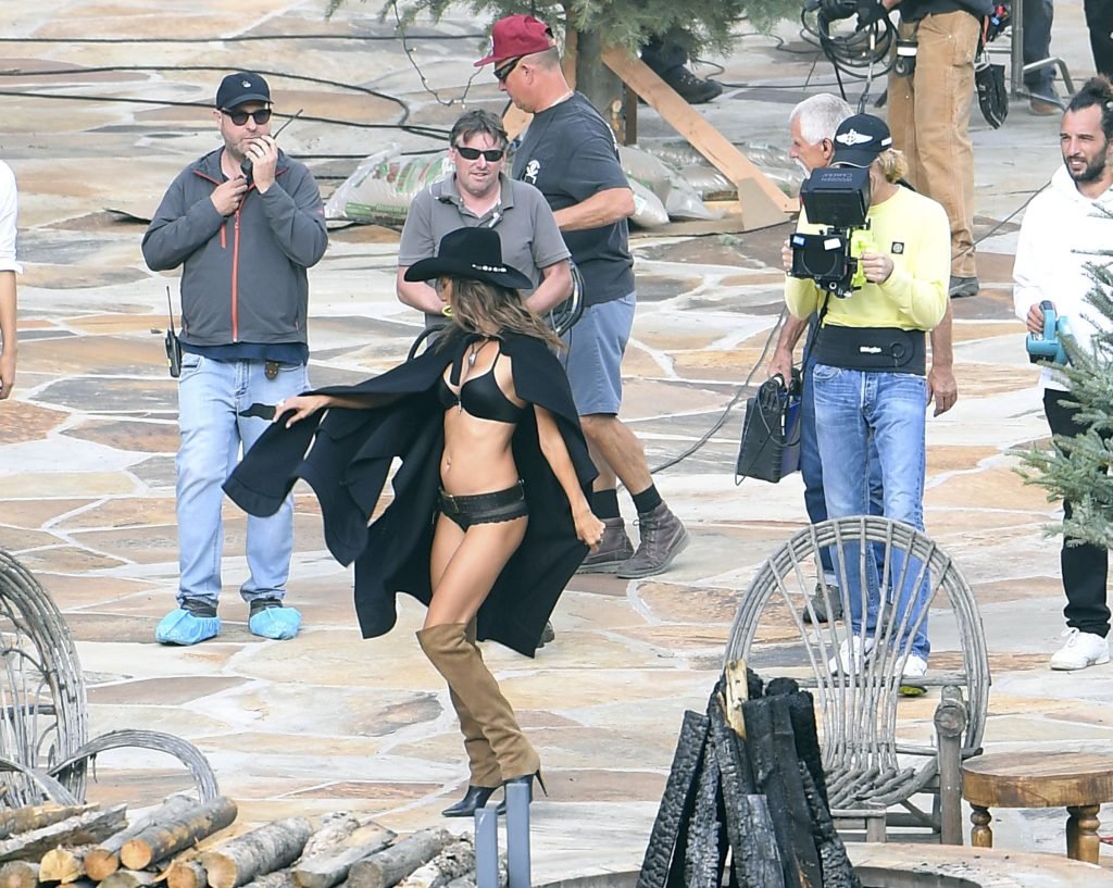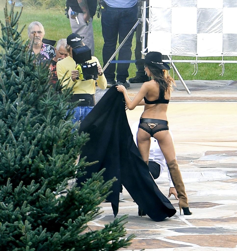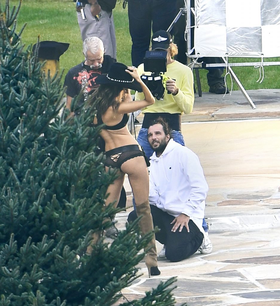 Супермодель Александра Амбросио была замечена, когда её намазывали маслом во время фотосессии для предстоящего праздничного каталога Victoria Secret в Аспене, 15.08.2017.