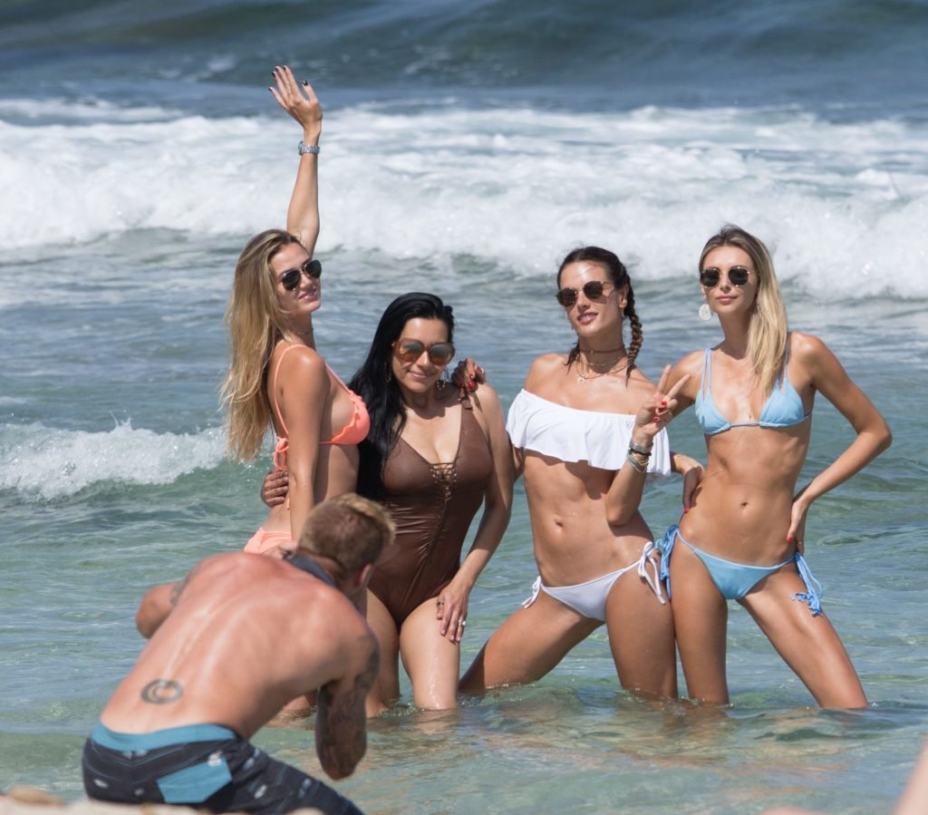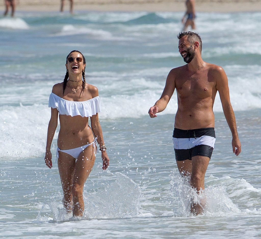Бразильская красавица Александра Амбросио весело проводит время с друзьями на пляже в Ибице, 14.07.2017.