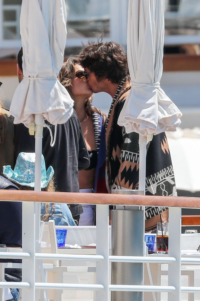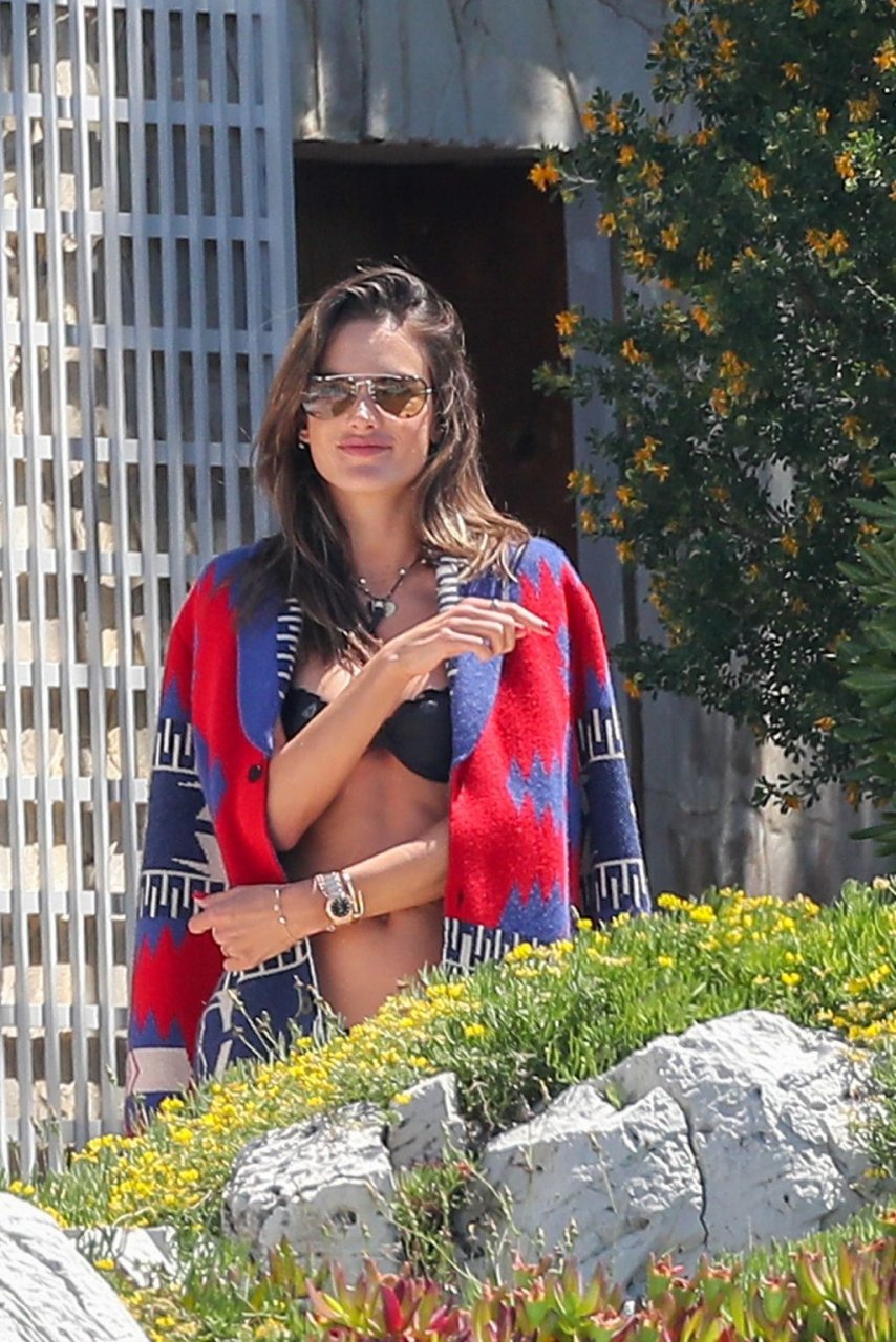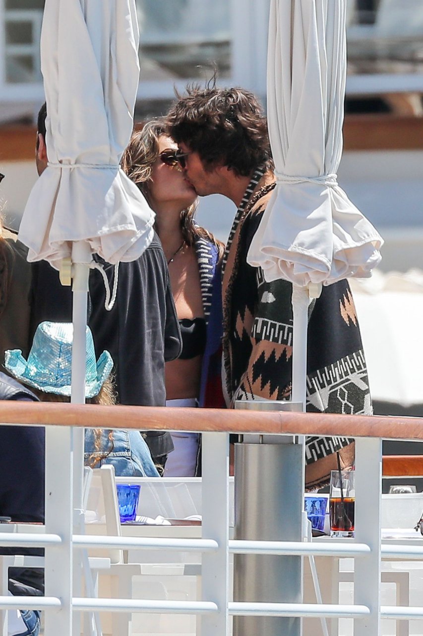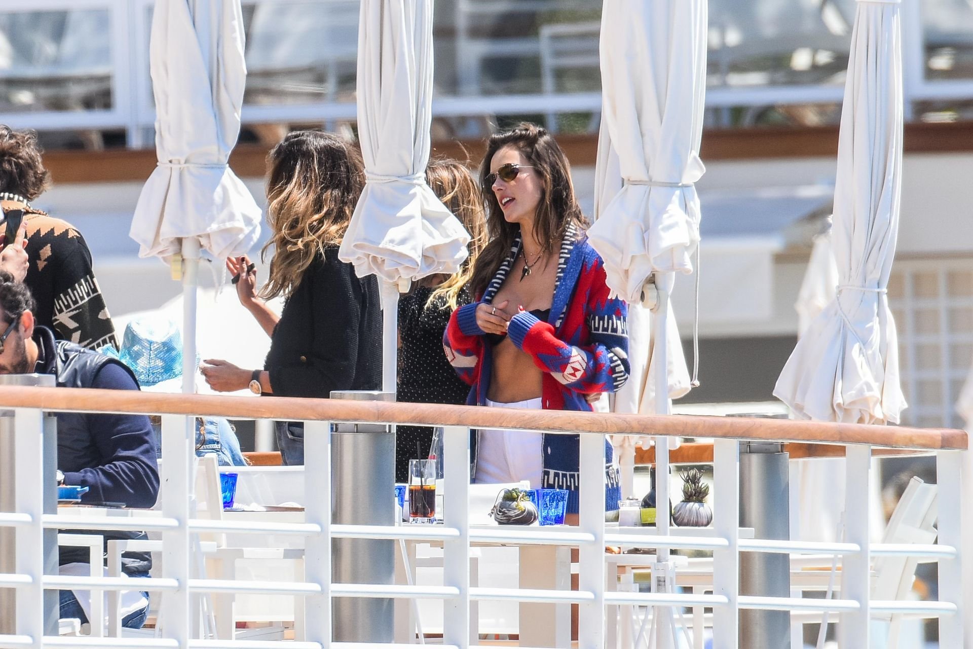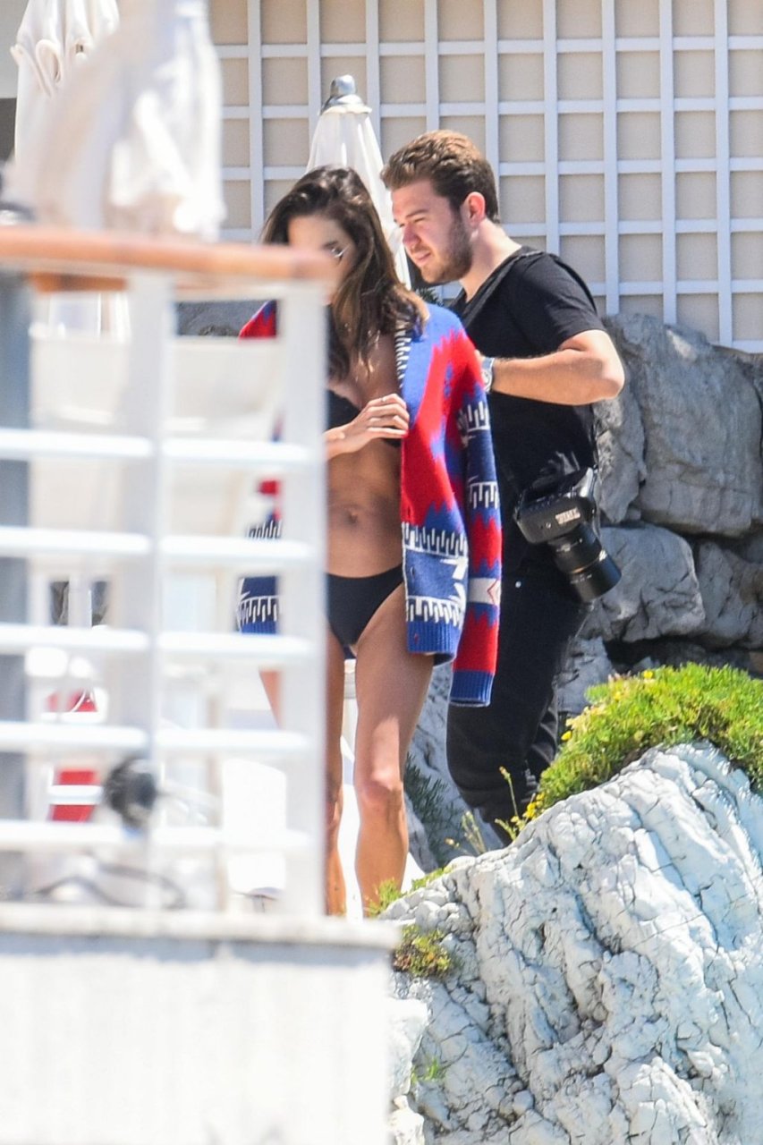 Модель Александра Амбросио запечатлена в бикини в отеле Eden Roc во время 72-го ежегодного Каннского кинофестиваля в Каннах, 16.05.2019. Папарацци застали её целующейся со своим парнем, Николо Одди.