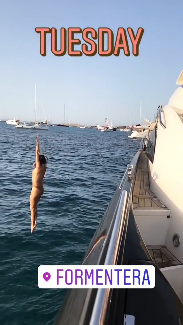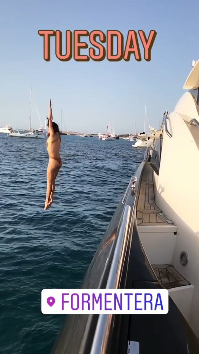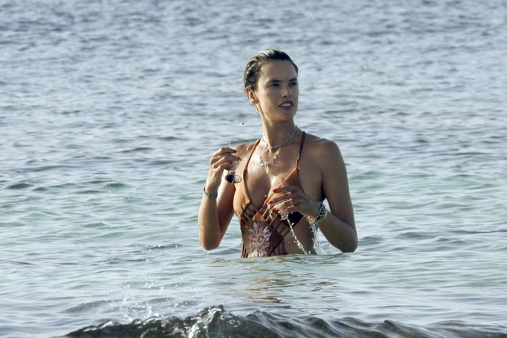 Супермодель Александра Амбросио была замечена за купанием в море во время отпуска на Форментере, Испания, 11.07.2017.