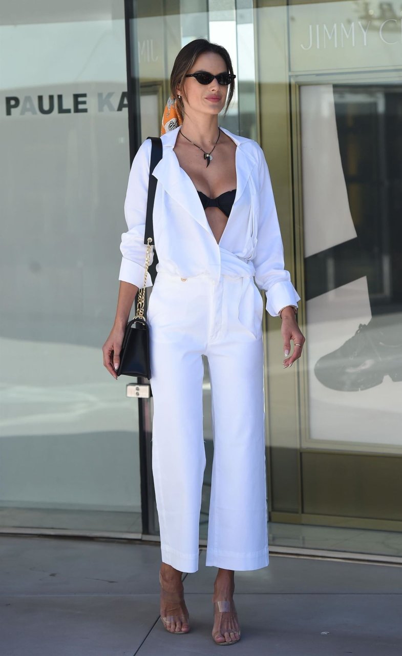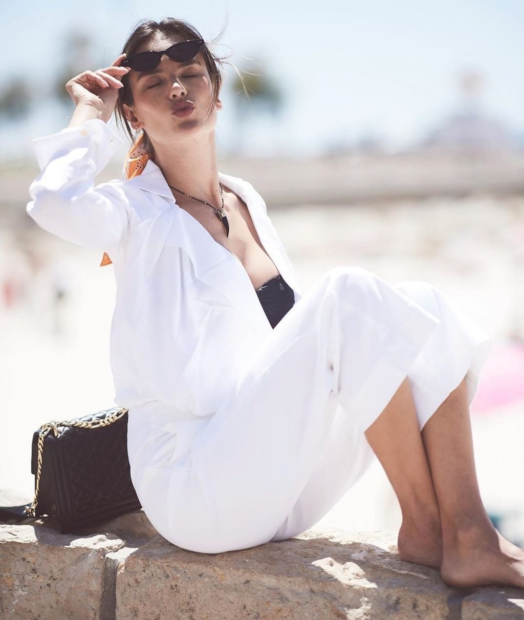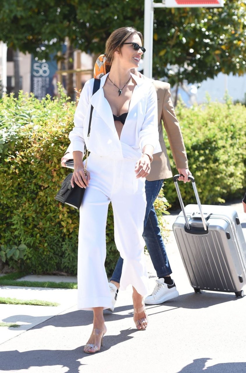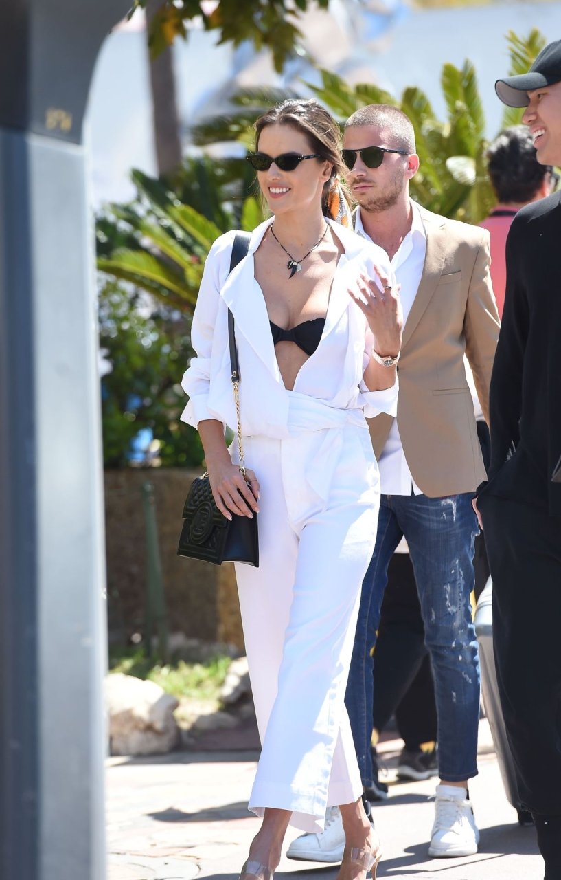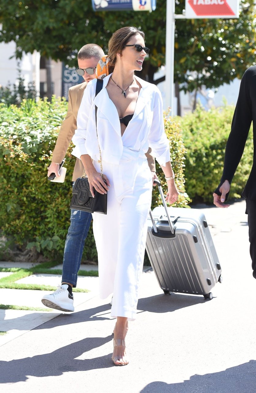 Бразильская модель Александра Амбросио демонстрирует сексуальное декольте, покидая отель Martinez во время Каннского кинофестиваля 2019 года, 14.05.2019.
