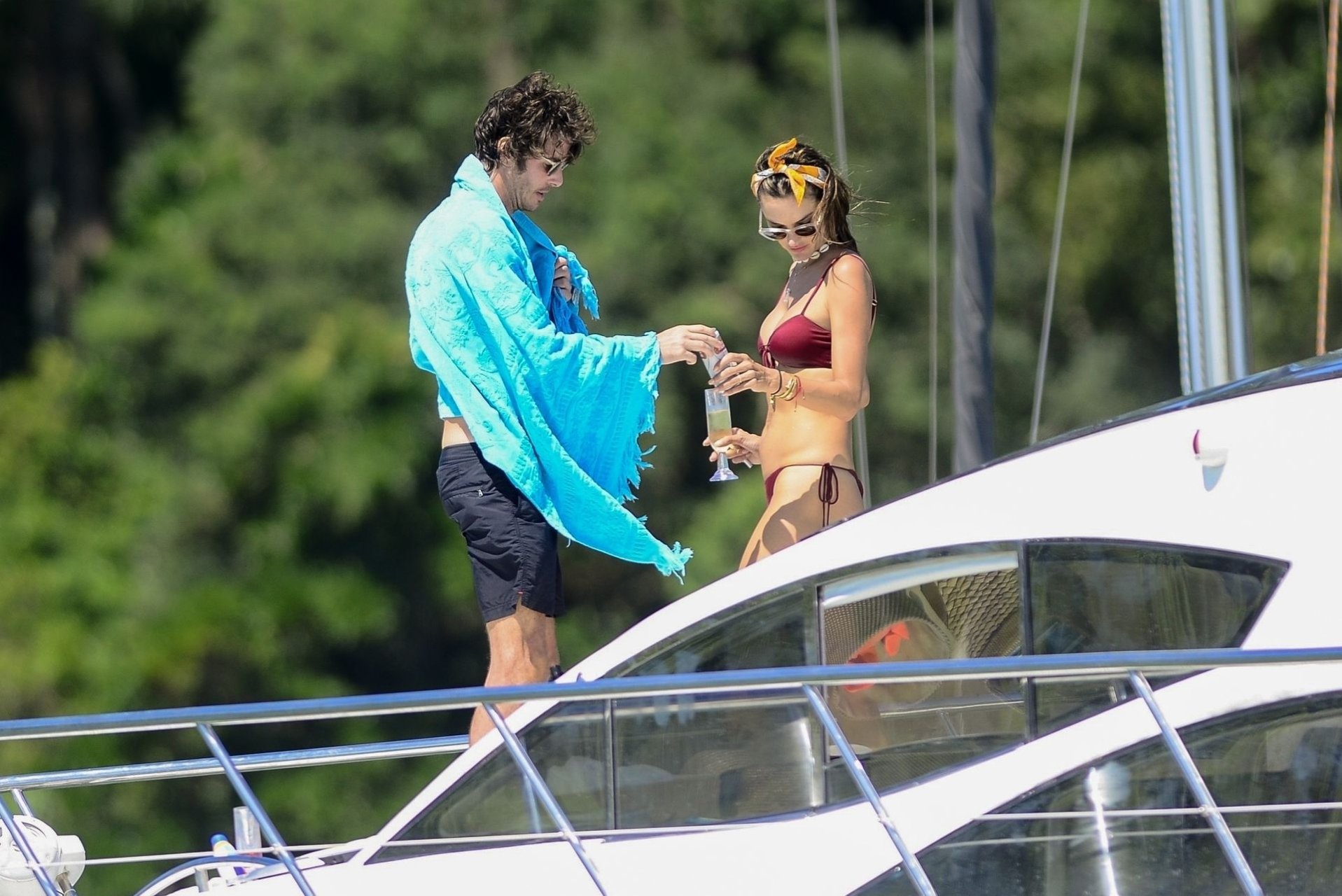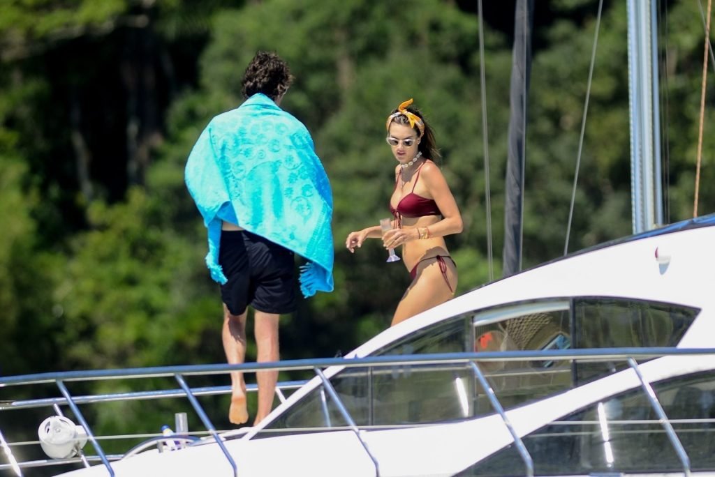 Супермодель Александра Амбросио и Николо Одди наслаждаются прогулкой на яхте с детьми Александры во Флорианополисе, 29.12.2018.