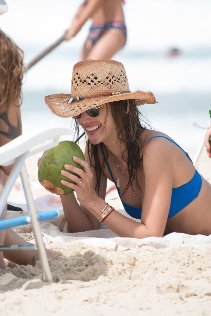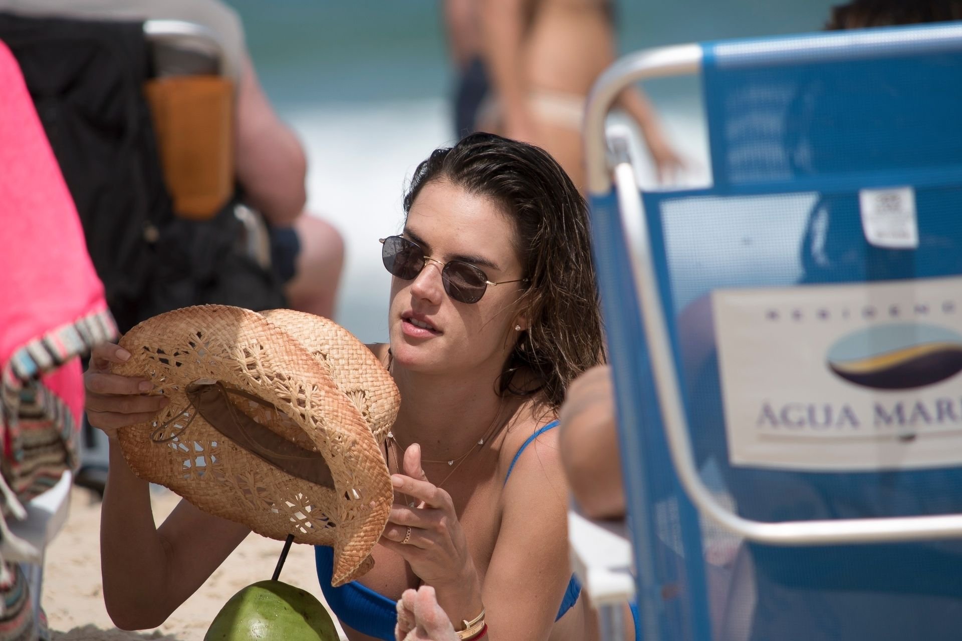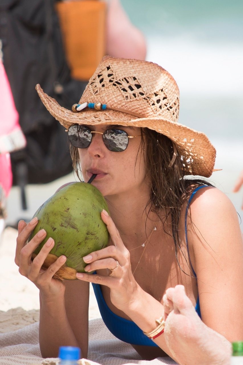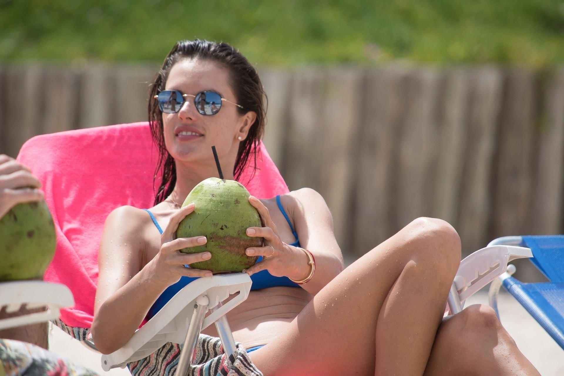 Александра Амбросио наслаждается днем на пляже с бойфрендом Николо Одди и друзьями во Флорианополисе, 26.12.2018. Бразильская красавица прилетела домой на рождественские каникулы и продолжает свое пребывание в тропиках. Александра сияла улыбкой, наслаждаясь прекрасным днем, пила свежий кокосовый сок, прижималась к Одди и позже делала селфи с друзьями.