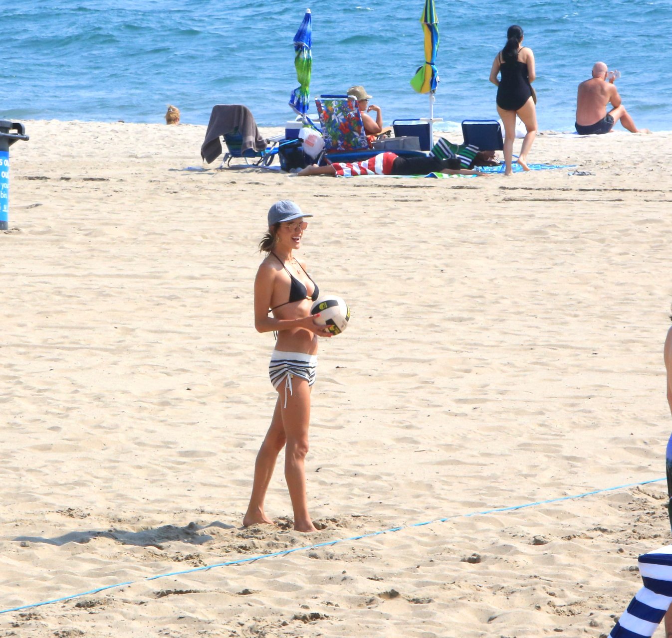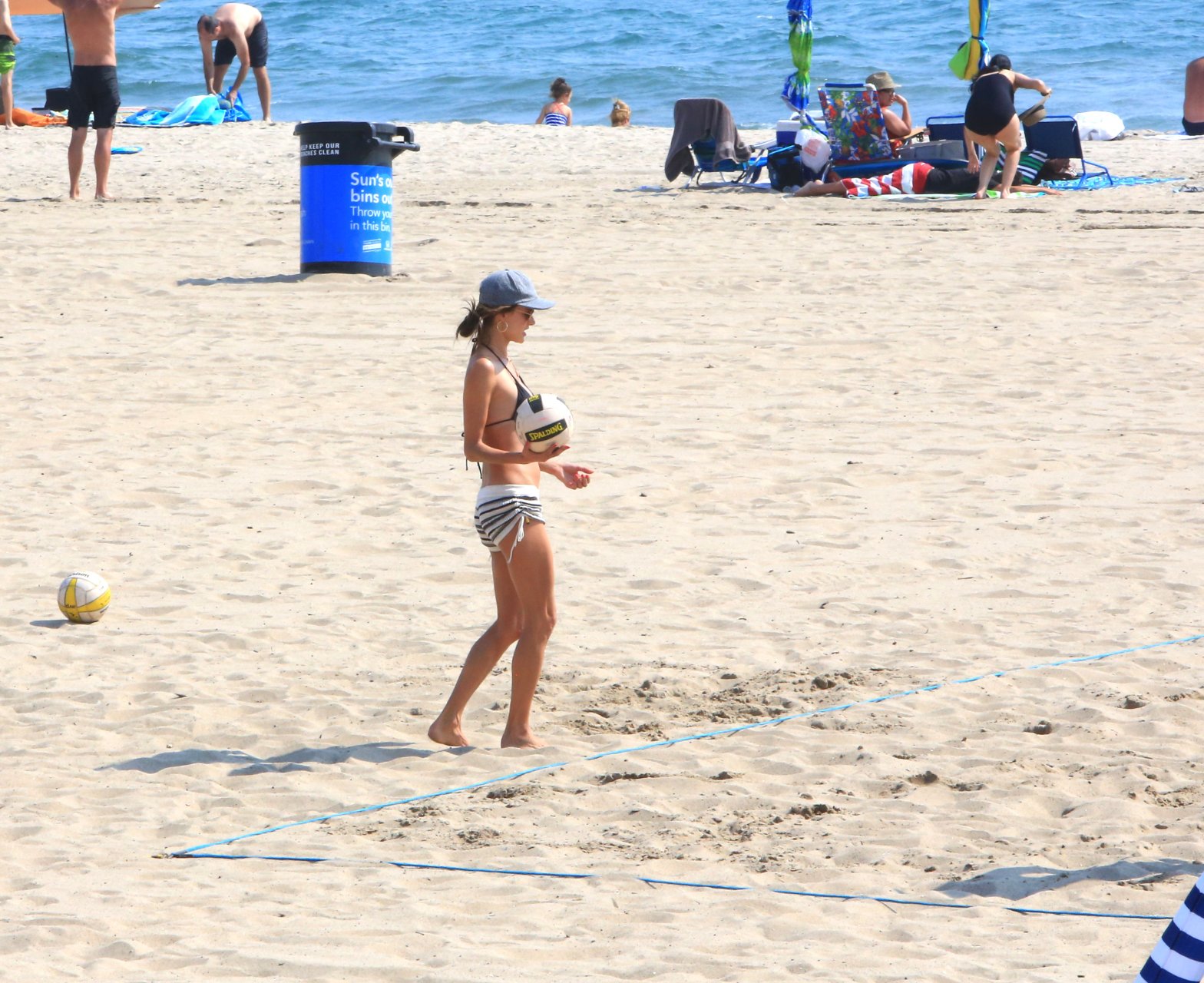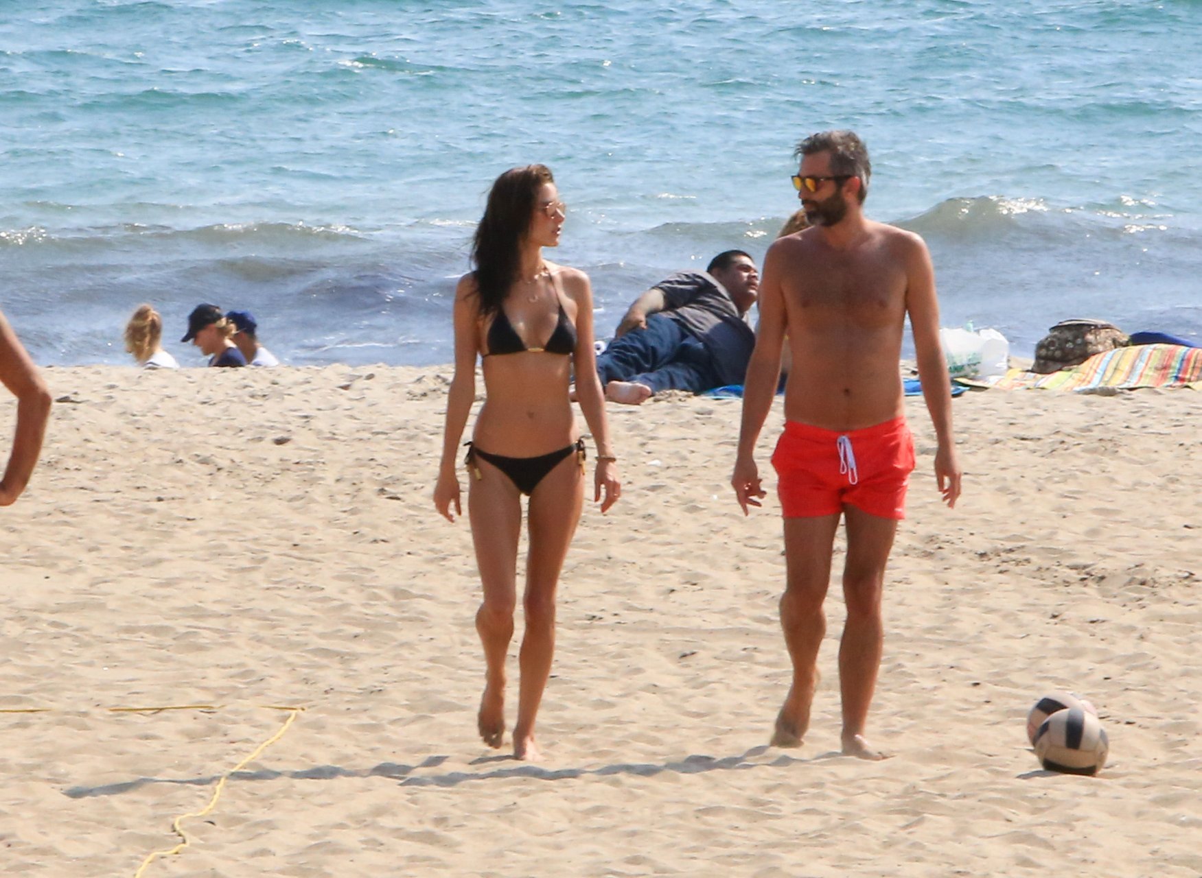 Супермодель Александра Амбросио наслаждается днем в крошечном черном бикини с друзьями после того, как ее видели с новым возлюбленным Николо Одди на пляже в Лос-Анджелесе, 11.08.2018.