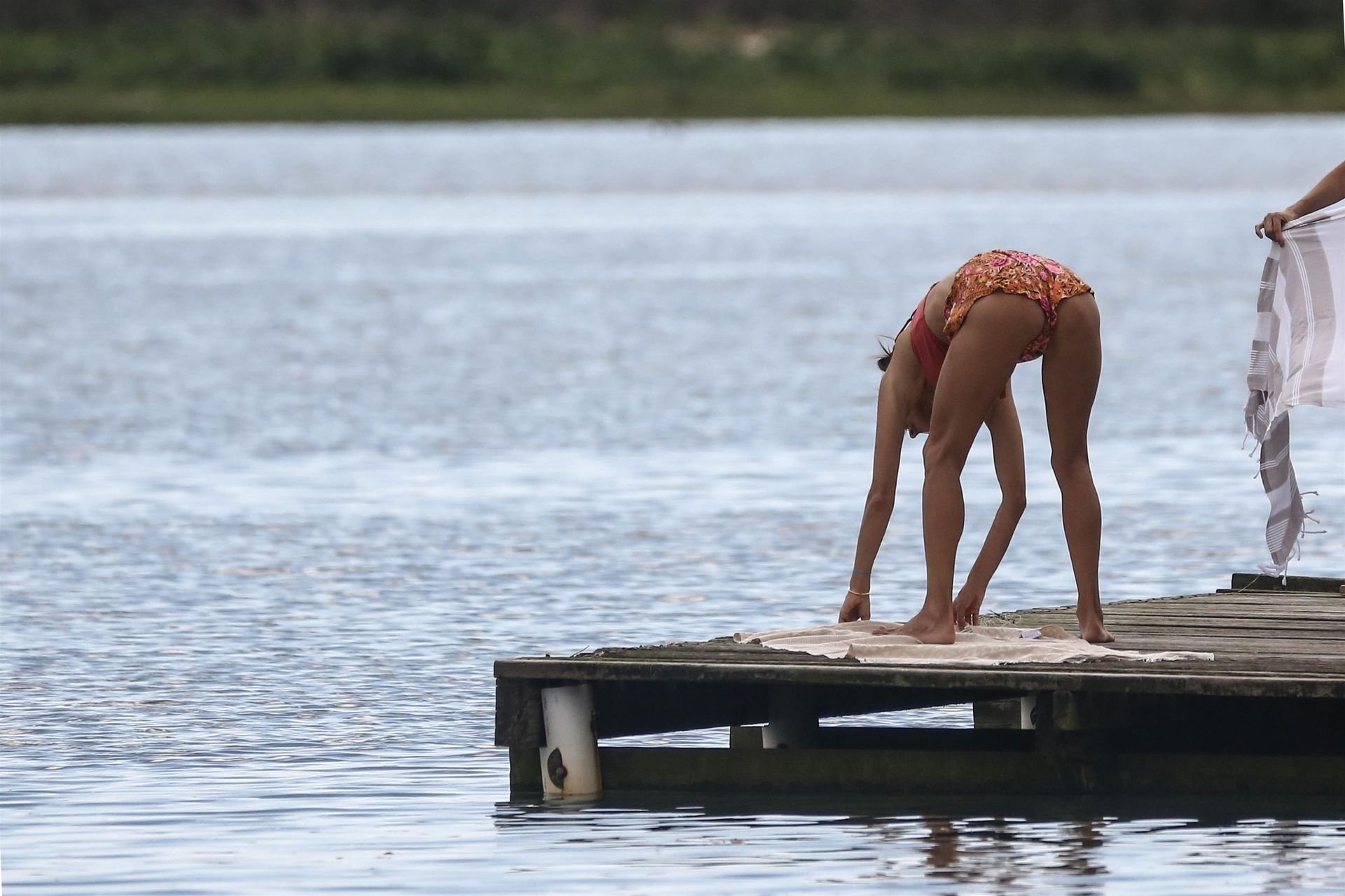 Бразильская пляжная красавица, модель Александра Амбросио вернулась на родину в Бразилию, и супермодель не теряет времени, наслаждаясь водами Флорианополиса, 07/03/2019.