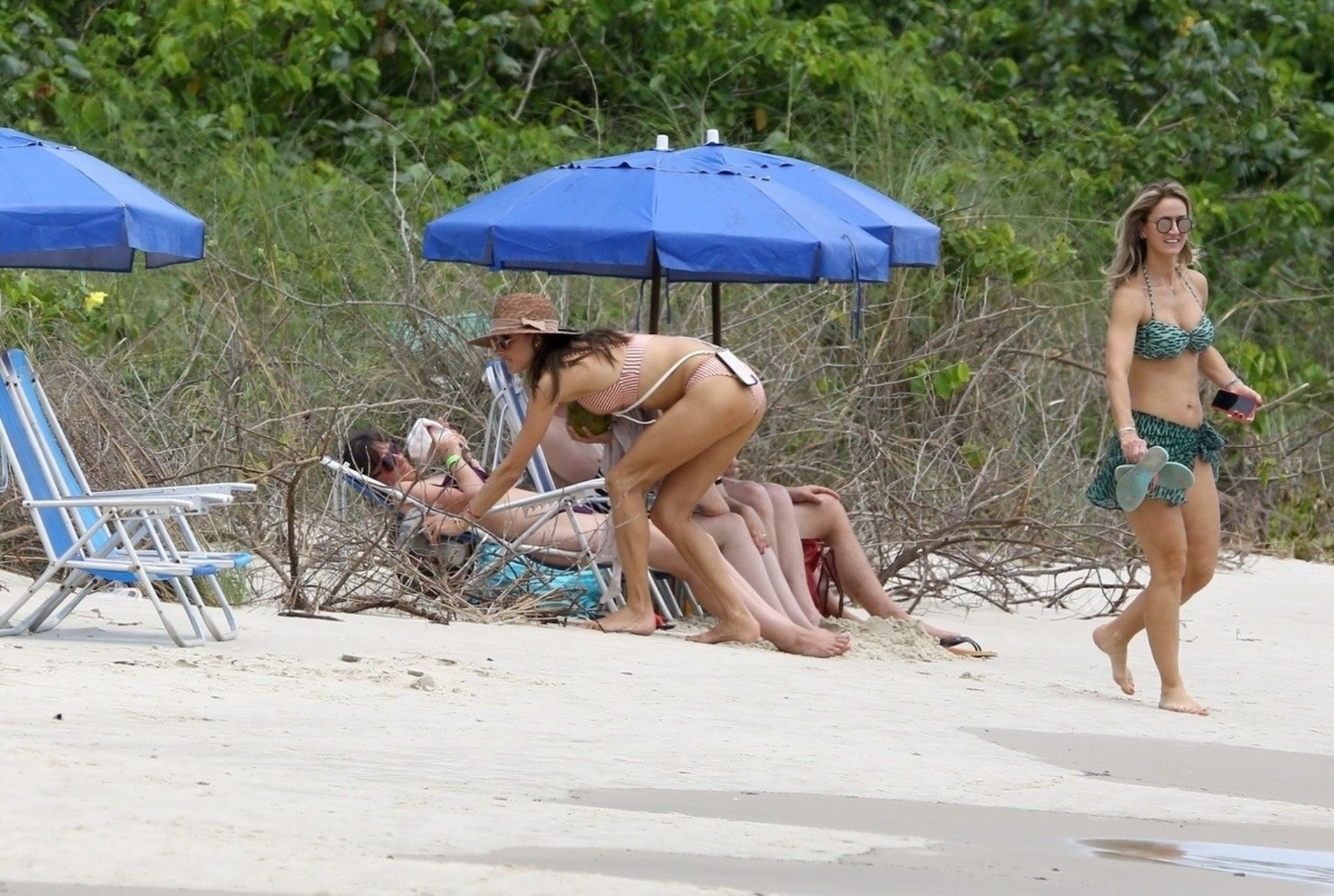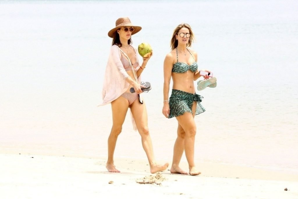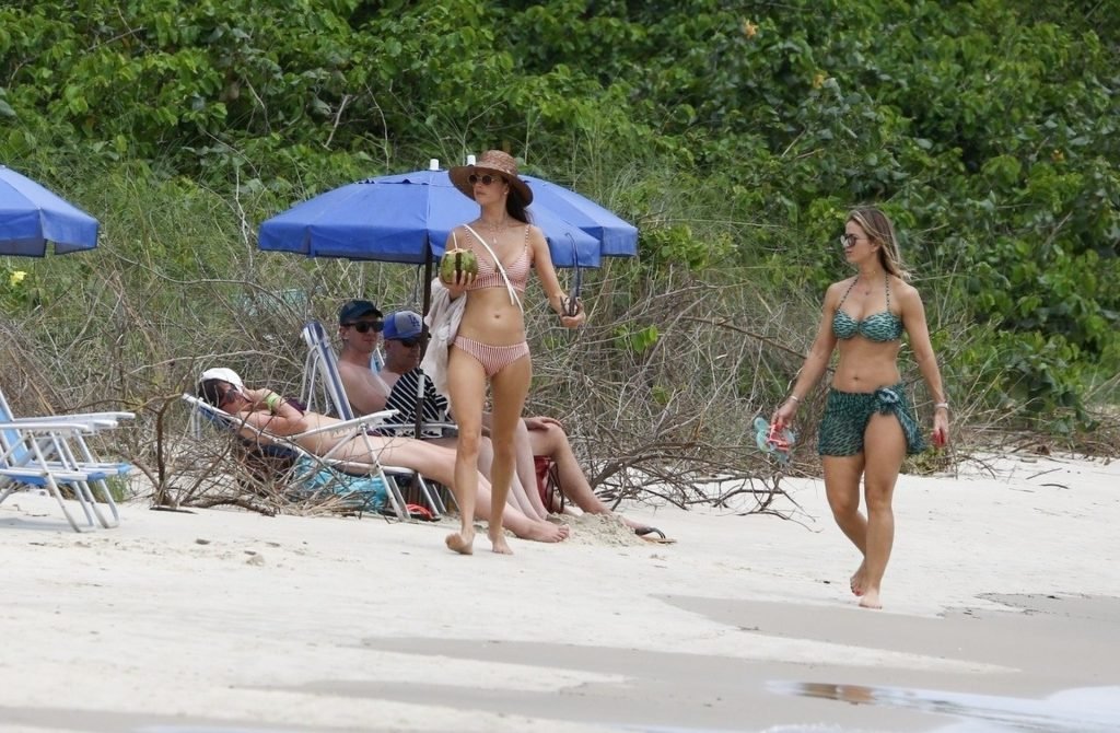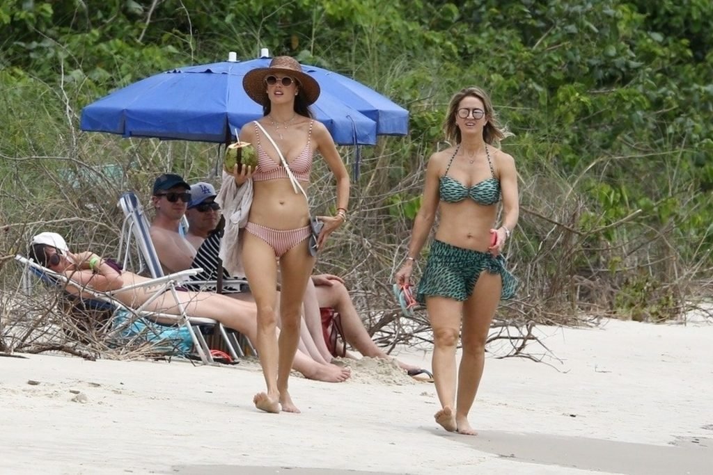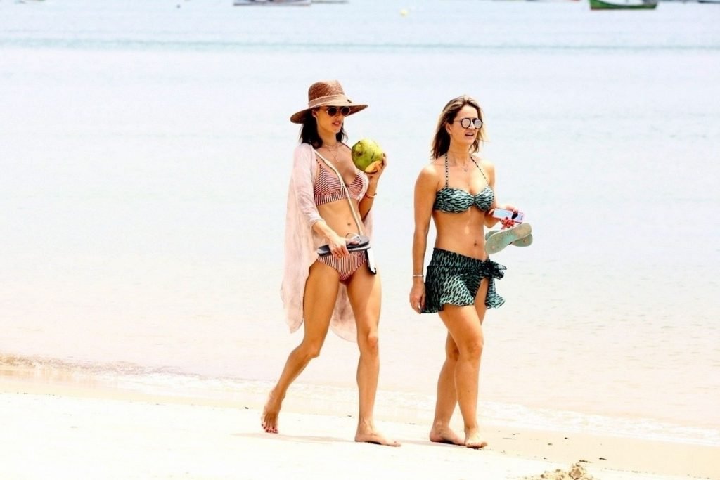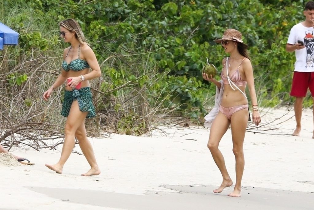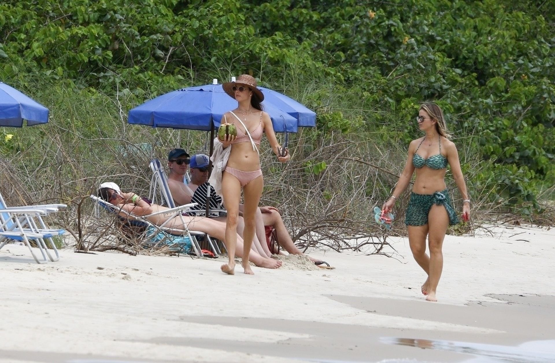 Модель Александра Амбросио возвращается домой в Бразилию для небольшого отдыха и расслабления перед рождественскими праздниками, 22.12.2018. 37-летняя бразильская красавица продемонстрировала свою подтянутую фигуру в красно-белом полосатом бикини, прогуливаясь по пляжу и окуная пальцы ног в воду вместе с подругой.
