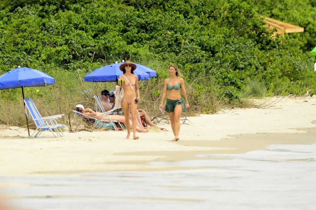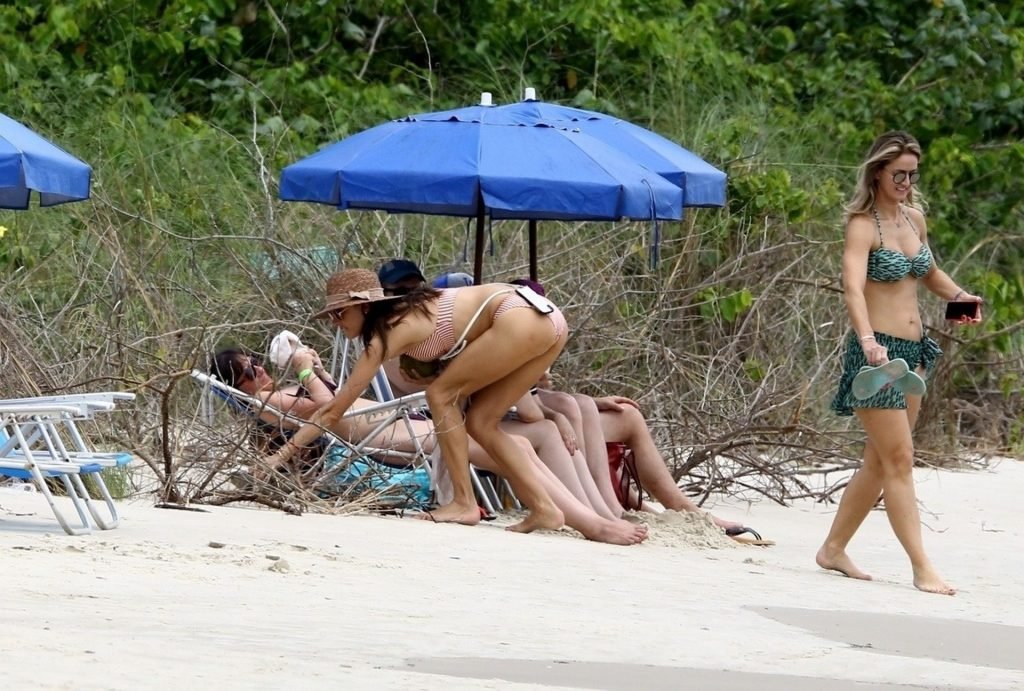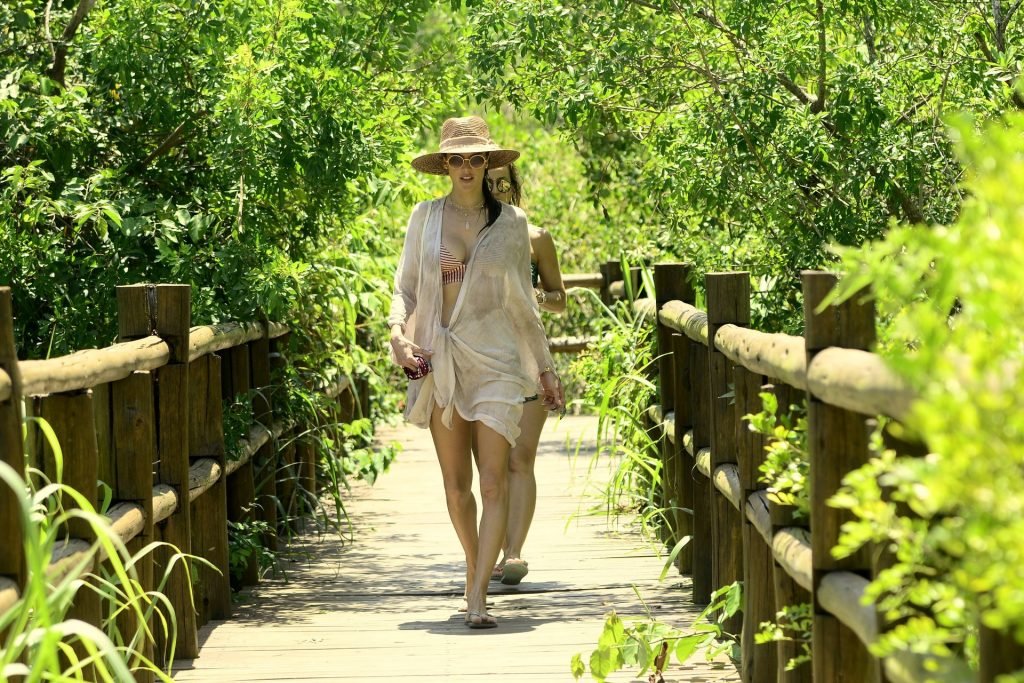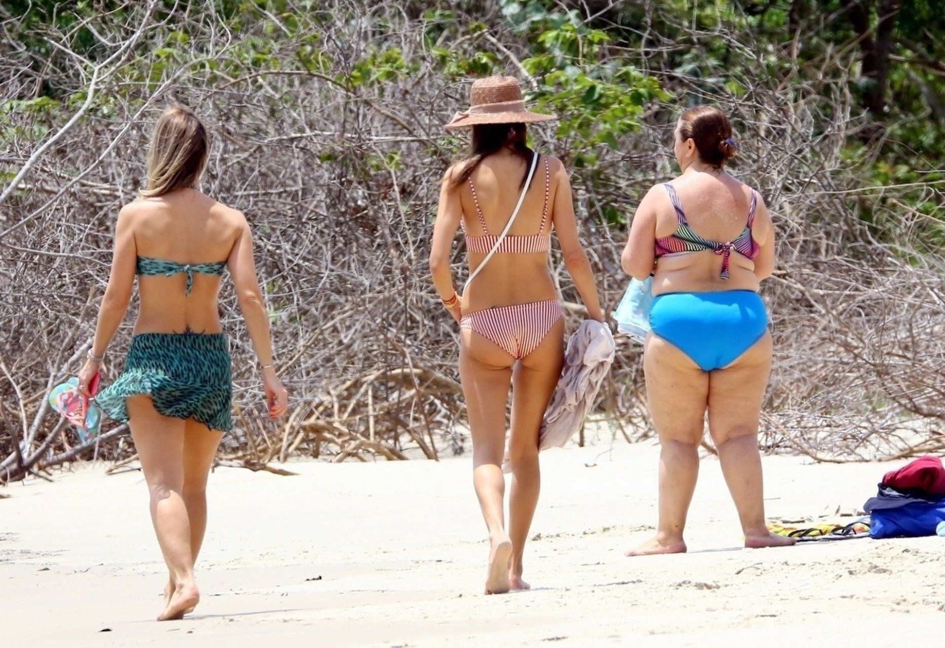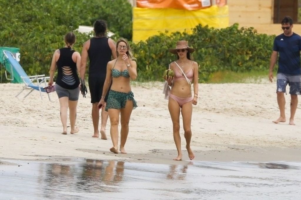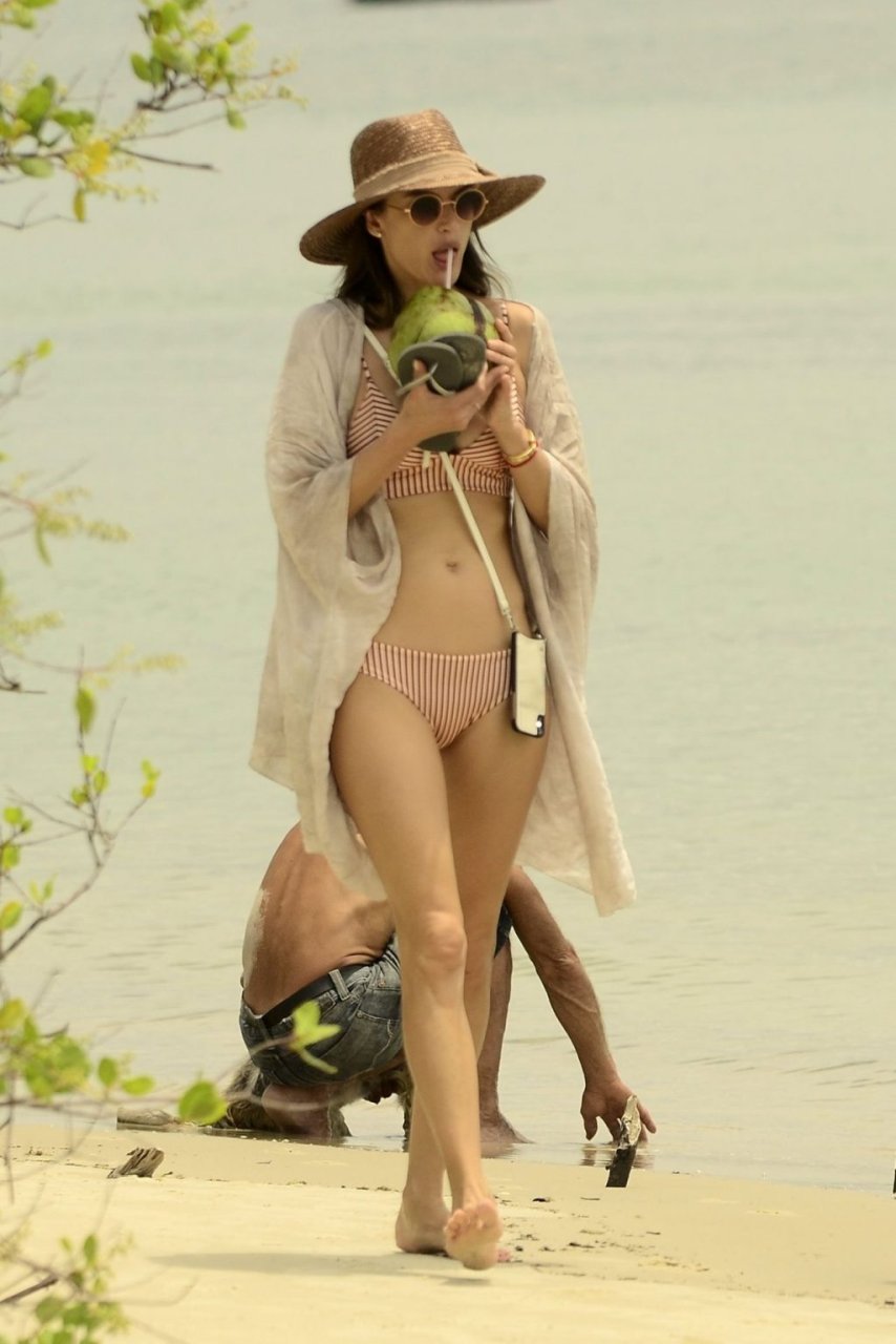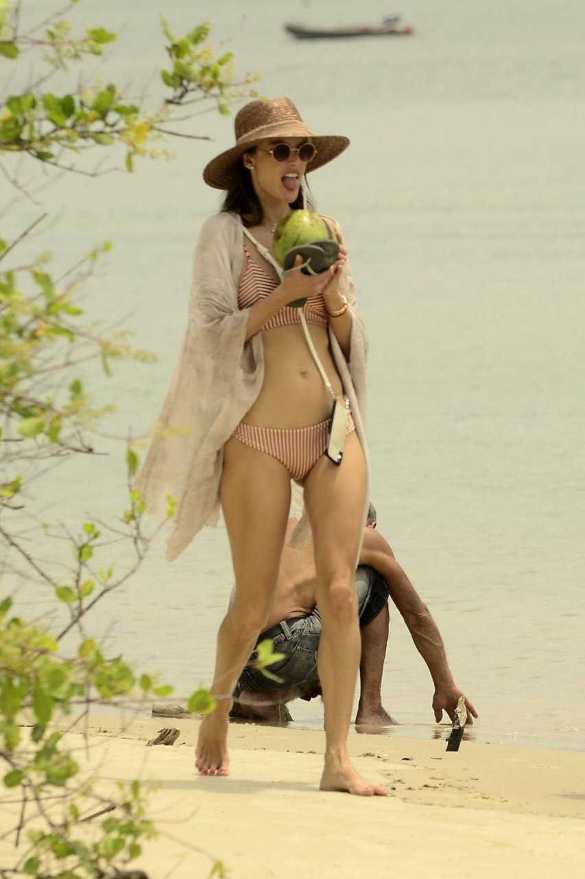 Модель Александра Амбросио возвращается домой в Бразилию для небольшого отдыха и расслабления перед рождественскими праздниками, 22.12.2018. 37-летняя бразильская красавица продемонстрировала свою подтянутую фигуру в красно-белом полосатом бикини, прогуливаясь по пляжу и окуная пальцы ног в воду вместе с подругой.