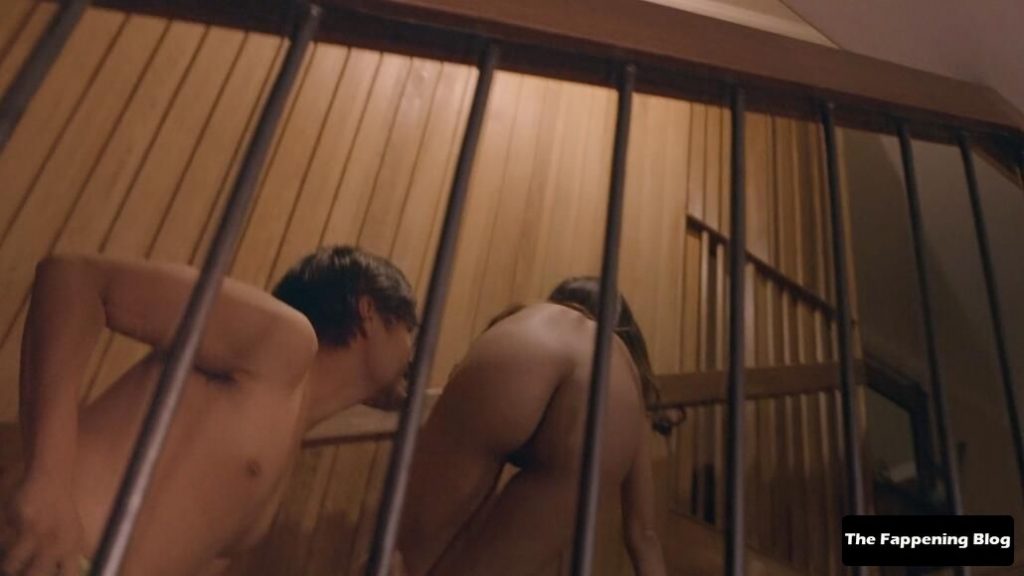 Алекса Миро полностью обнажена, когда парень следует за ней к основанию лестницы. Мы видим ее груди, ягодицы и лобок, когда она ложится на ступеньки, а парень целует ей ноги, прежде чем они начинают целоваться. Затем она продолжает подниматься по лестнице, и парень присоединяется к ней в коридоре, где поднимает ее, а она обвивает ноги вокруг него, целуясь.
