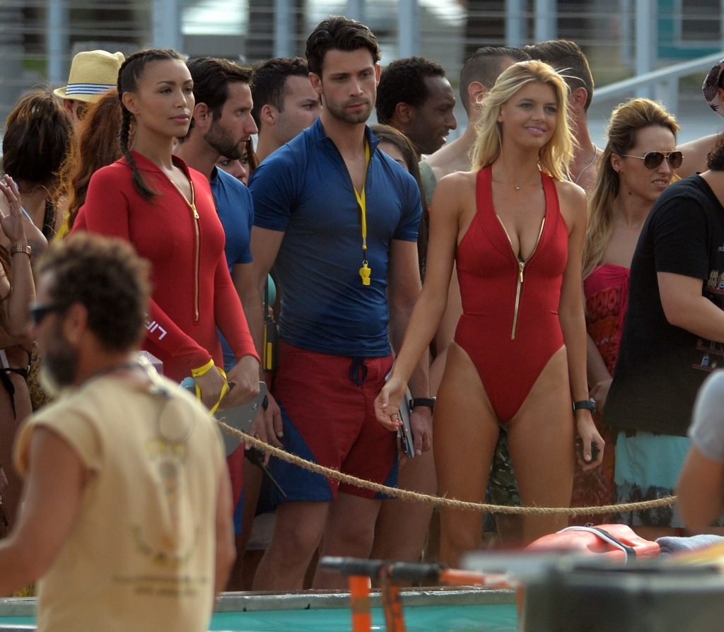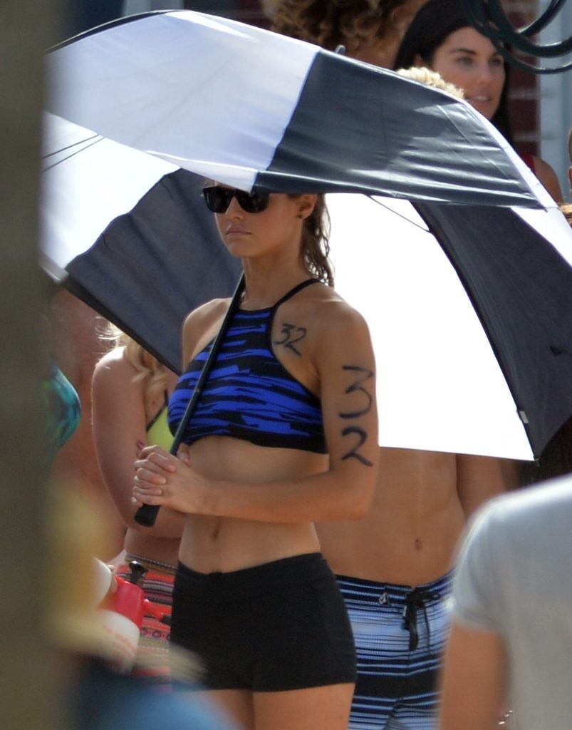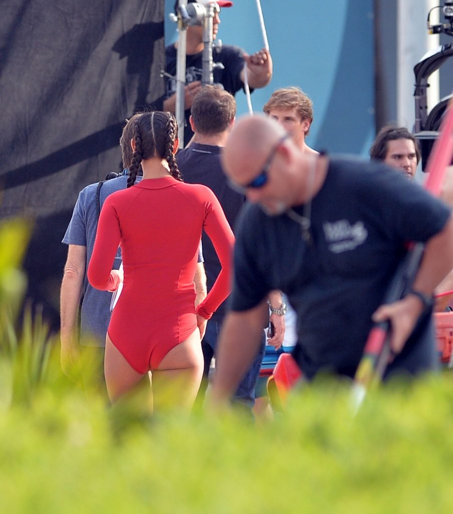 Александра Даддарио, Илфенеш Хадера и Келли Рорбах на пляже снимают сцену для «Спасателей Малибу», 03/08/2016 + ещё одно видео со съёмок за кадром.