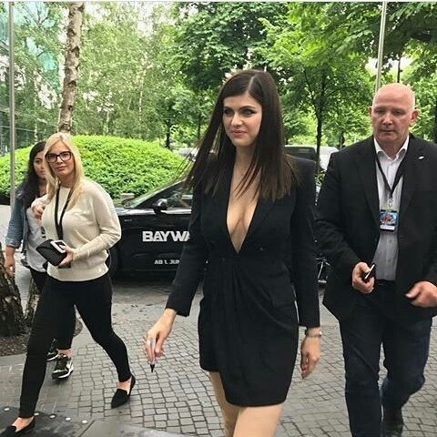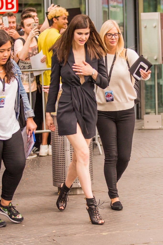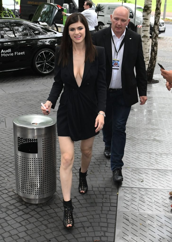 Alexandra Daddario демонстрирует своё декольте на фотоколле фильма «Спасатели Малибу» в Берлине, 30.05.2017. Александра Анна Даддарио — американская актриса (Baked in Brooklyn, Настоящий детектив). Возраст – 31.