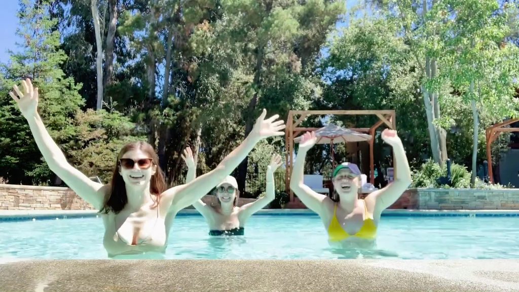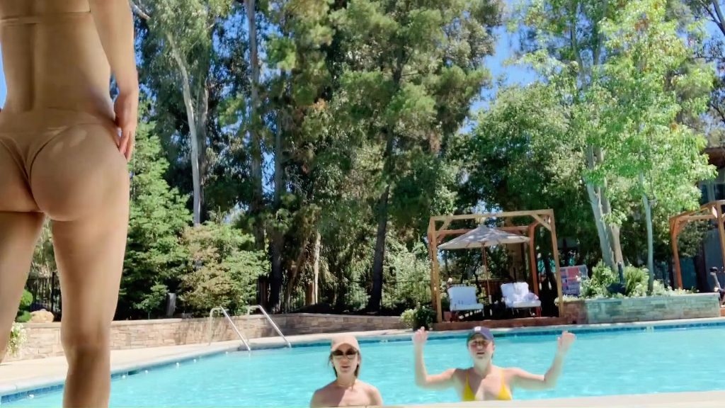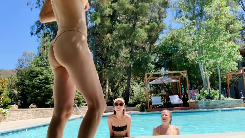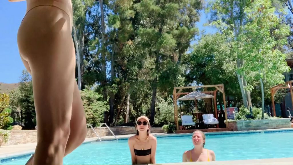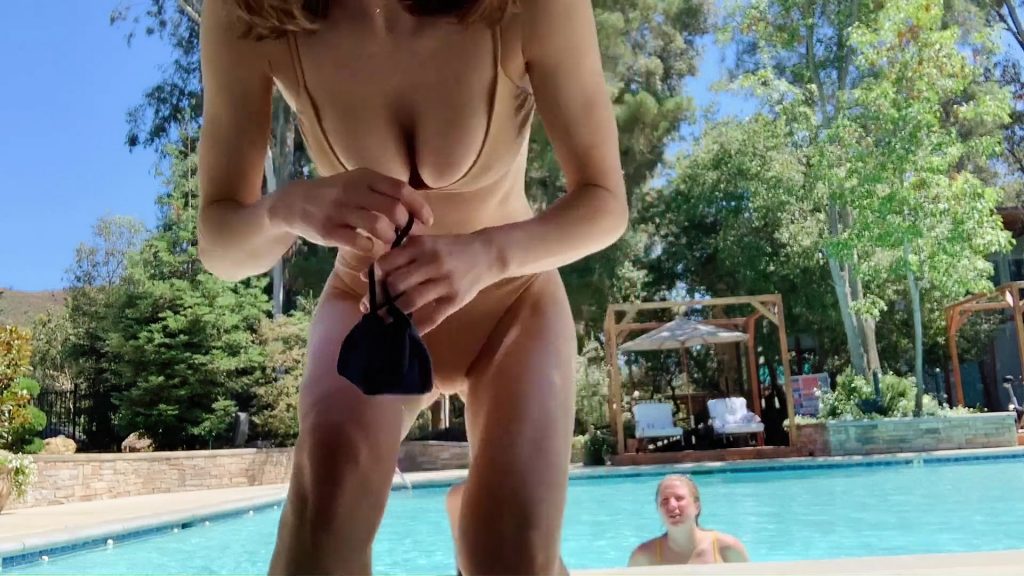Актриса/модель Александра Даддарио демонстрирует свои груди и ягодицы в бикини, наслаждаясь днем с подругами Кейт и Морган в бассейне (август 2020).