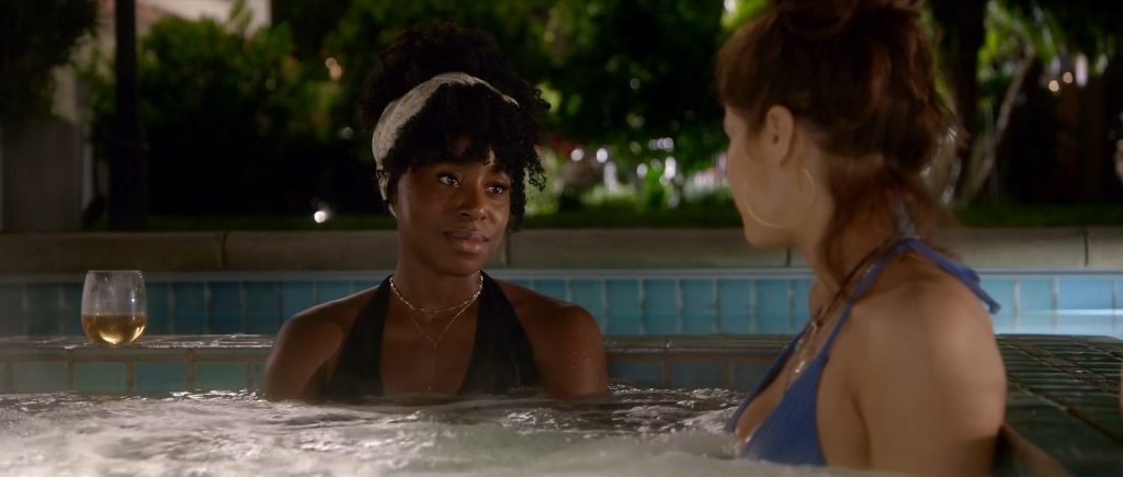 Смотрите еще одну горячую сцену Александры Даддарио без наготы из “Почему женщины убивают” (2019) Сезон 1 Эпизод 2 (s01e02), где вы можете увидеть ее (в роли Джейд), сидящей в джакузи с Кирби Хауэлл-Бэптист (в роли Тейлор Хардинг). Александра демонстрирует декольте в своем синем бикини. Алекс и Кирби почти целуются, но их прерывает парень, присоединившийся к ним в ванне. О, у них могла бы получиться отличная межрасовая секс-сцена!