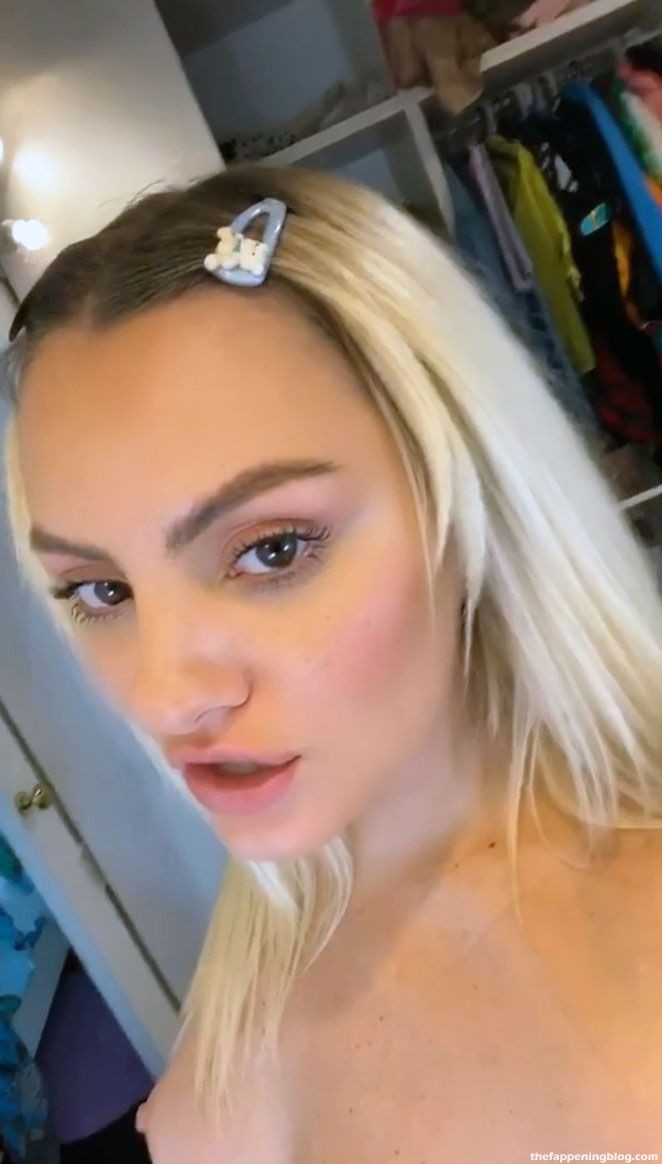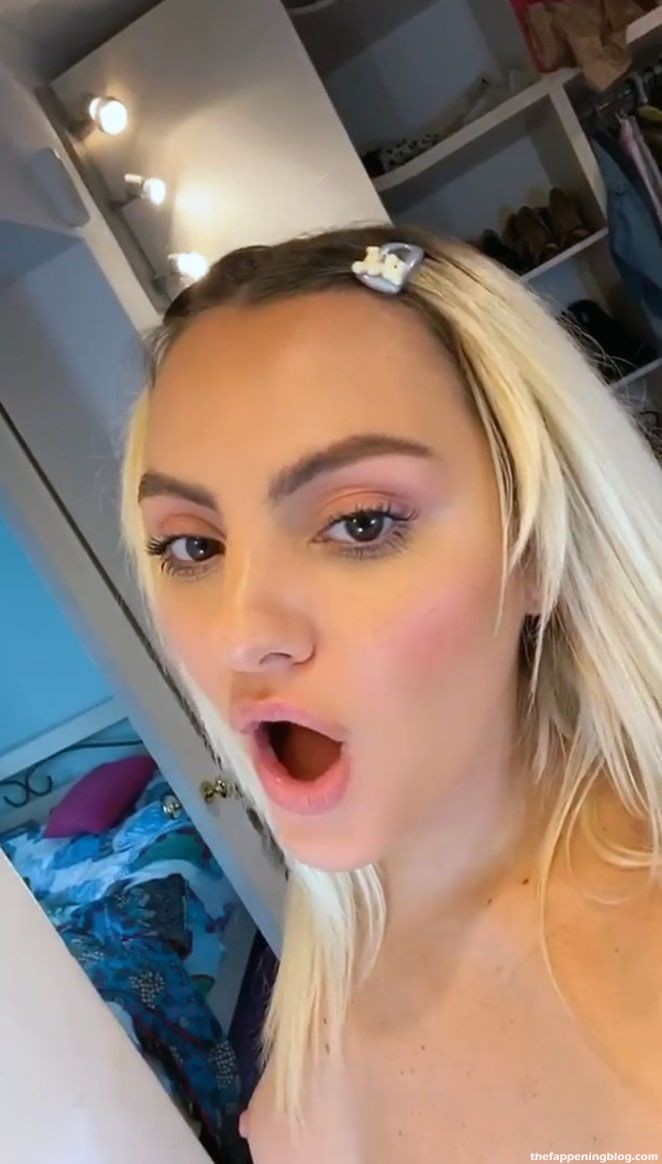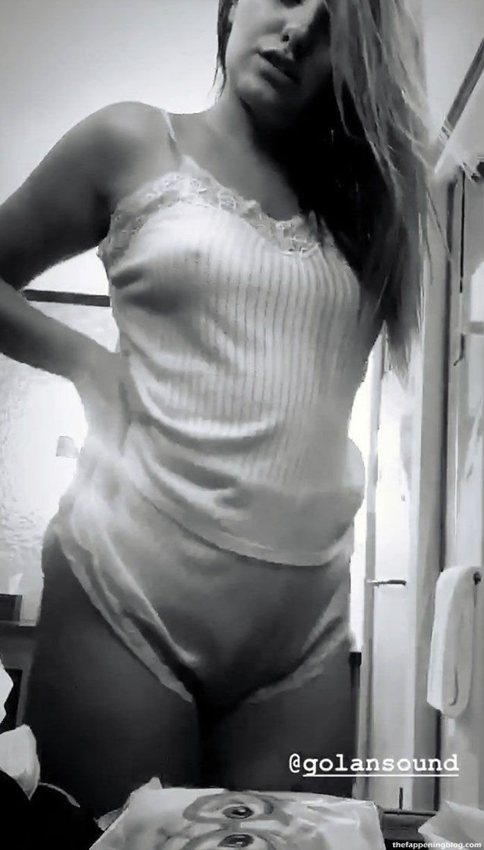 Alright, guys, so here is a clip of miss Alexandra Stan! She shared this clip of her singing! But, even though that she was naked, she thought no one would notice because she was filming only her face! Luckily for us, she seemed to forget it, so we had a brief viewing of her tits and hard nipples! She also noticed it soon, and she took the video down, but we managed to get it saved by then!