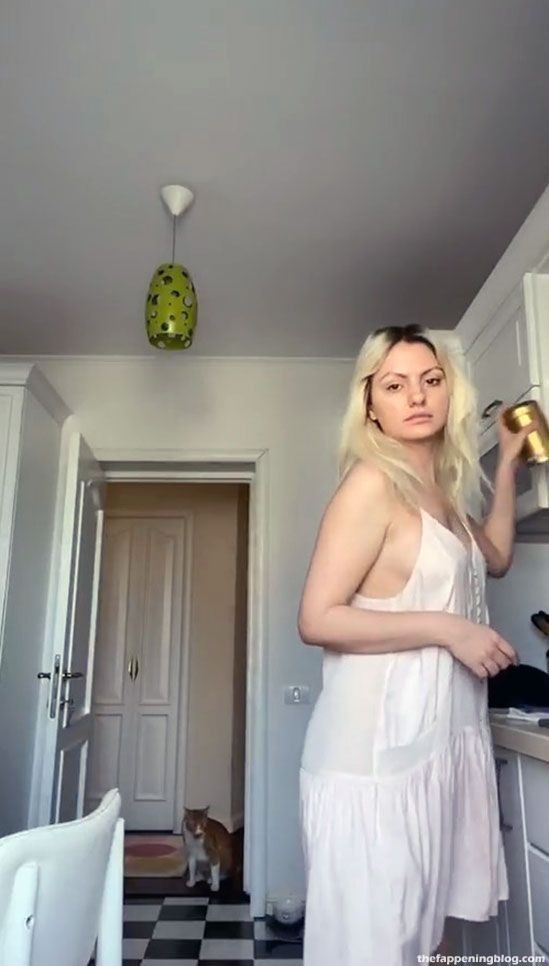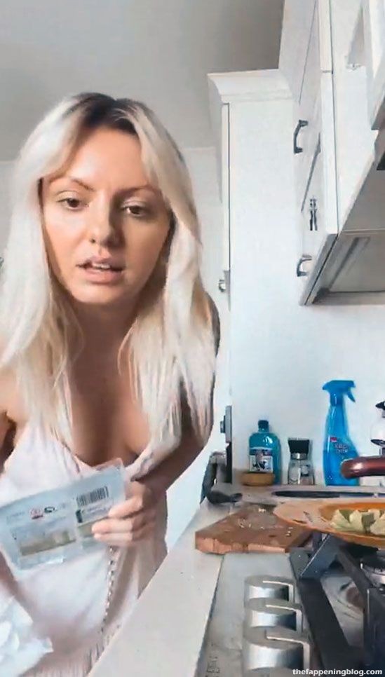 And now, let’s take a look at another Alexandra’s oops moment! She was once again filming a short clip of her cooking or some shit, and it doesn’t even matter. What matters is that we had a chance to see Alexandra Stan braless!