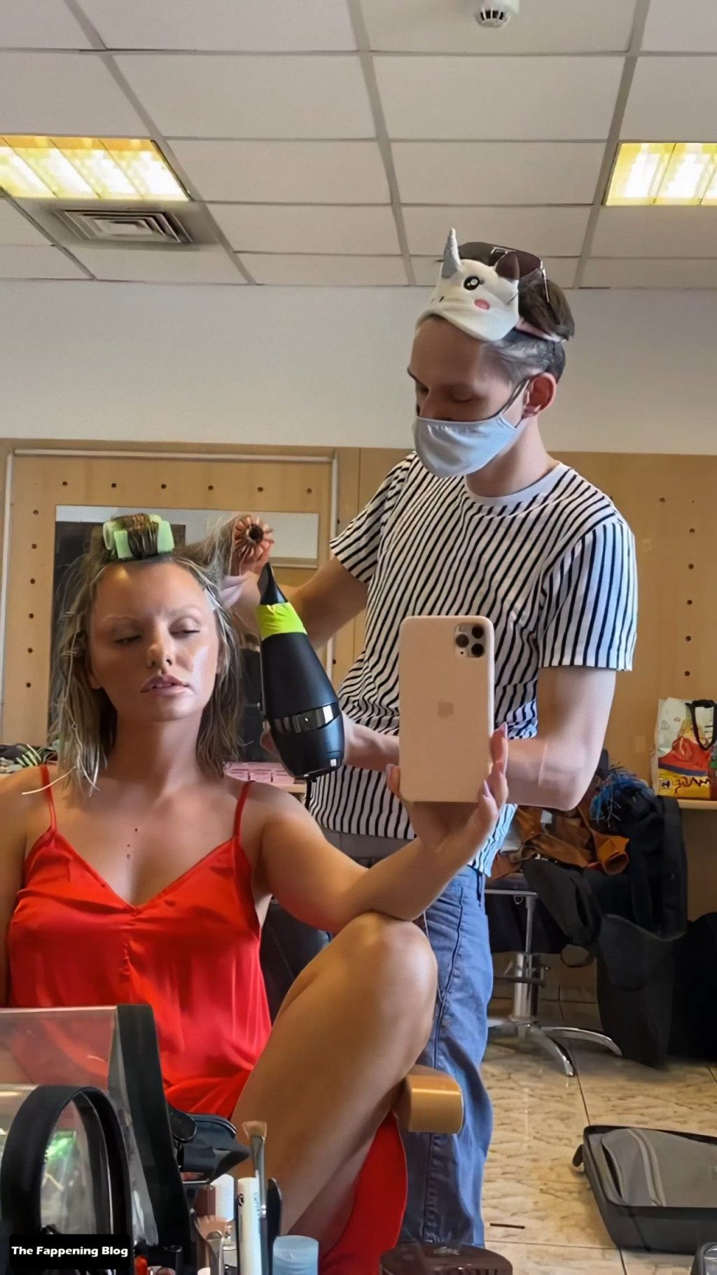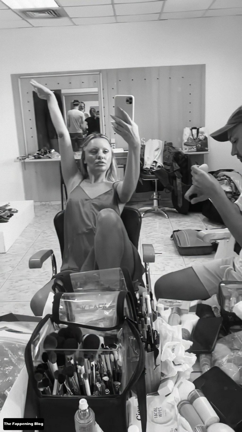 Александра Стан готовится к фотосессии и показывает свои голые груди.