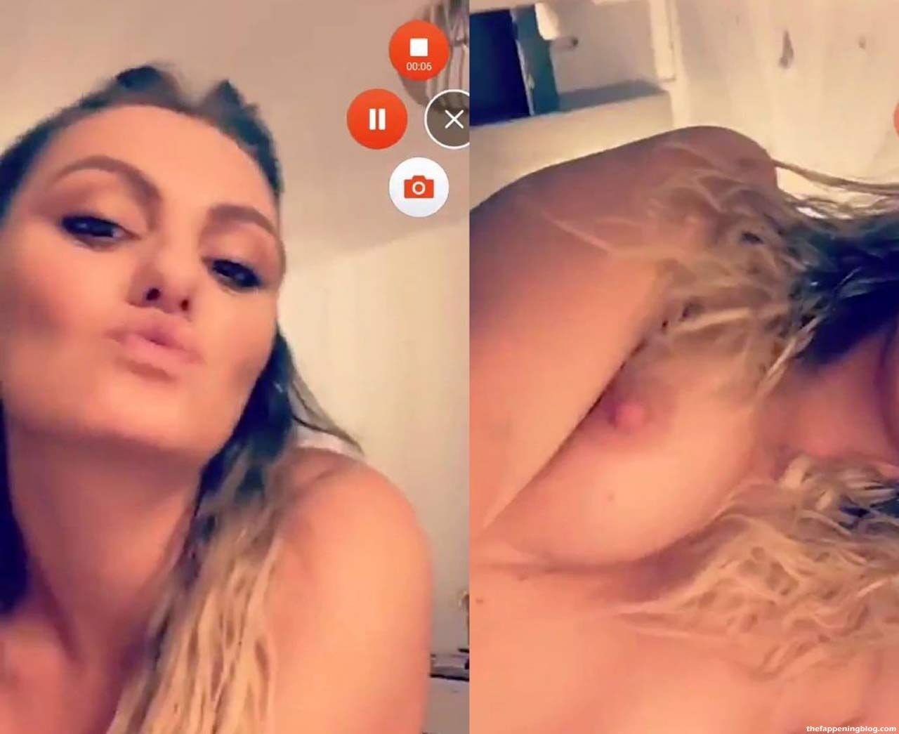 Alright, guys, so here is a clip of miss Alexandra Stan! She shared this clip of her singing! But, even though that she was naked, she thought no one would notice because she was filming only her face! Luckily for us, she seemed to forget it, so we had a brief viewing of her tits and hard nipples! She also noticed it soon, and she took the video down, but we managed to get it saved by then!