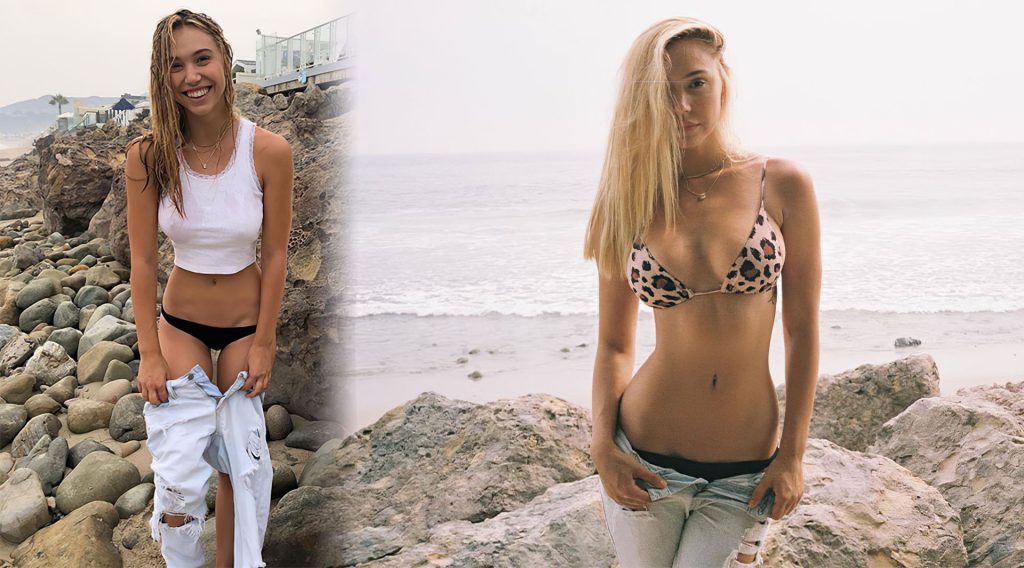 Американская модель и танцовщица Алексис Рен демонстрирует свои красивые сиськи, позируя в бикини и мокрой футболке для новой фотосессии Дэвида Мушегайна на пляже в Малибу (август 2020).