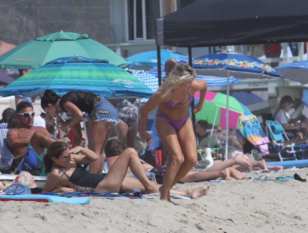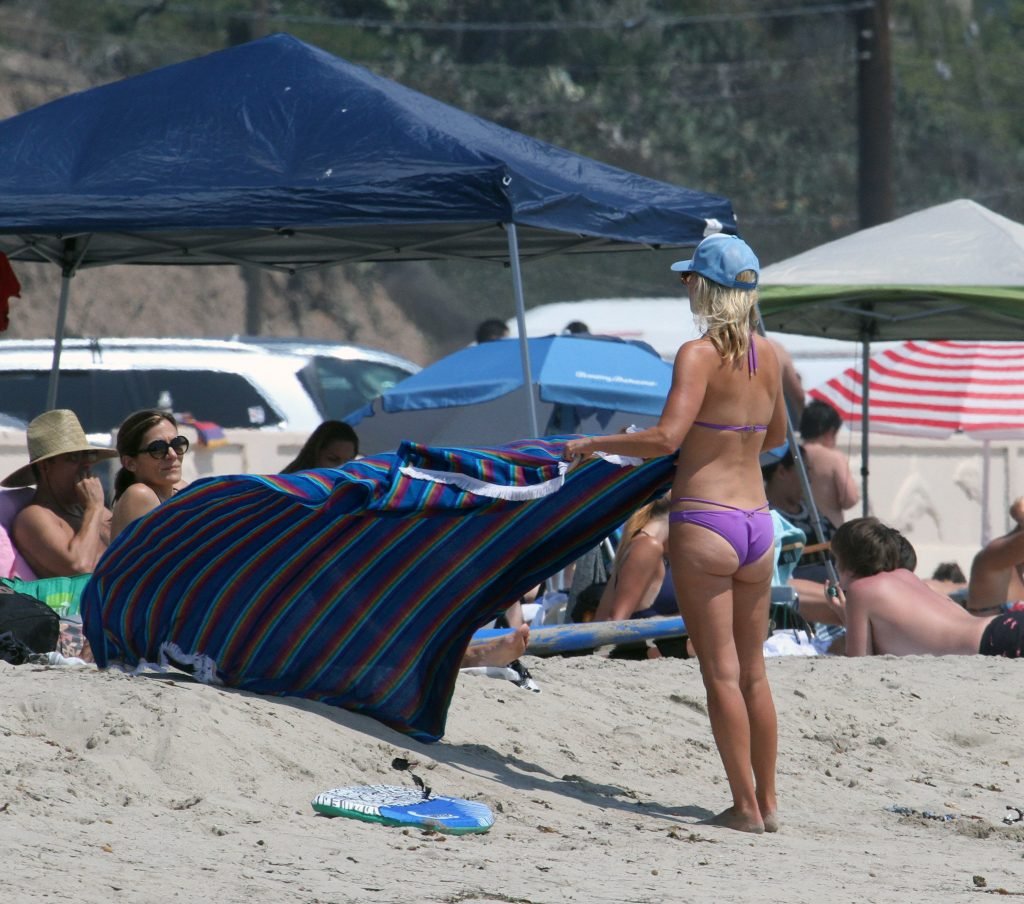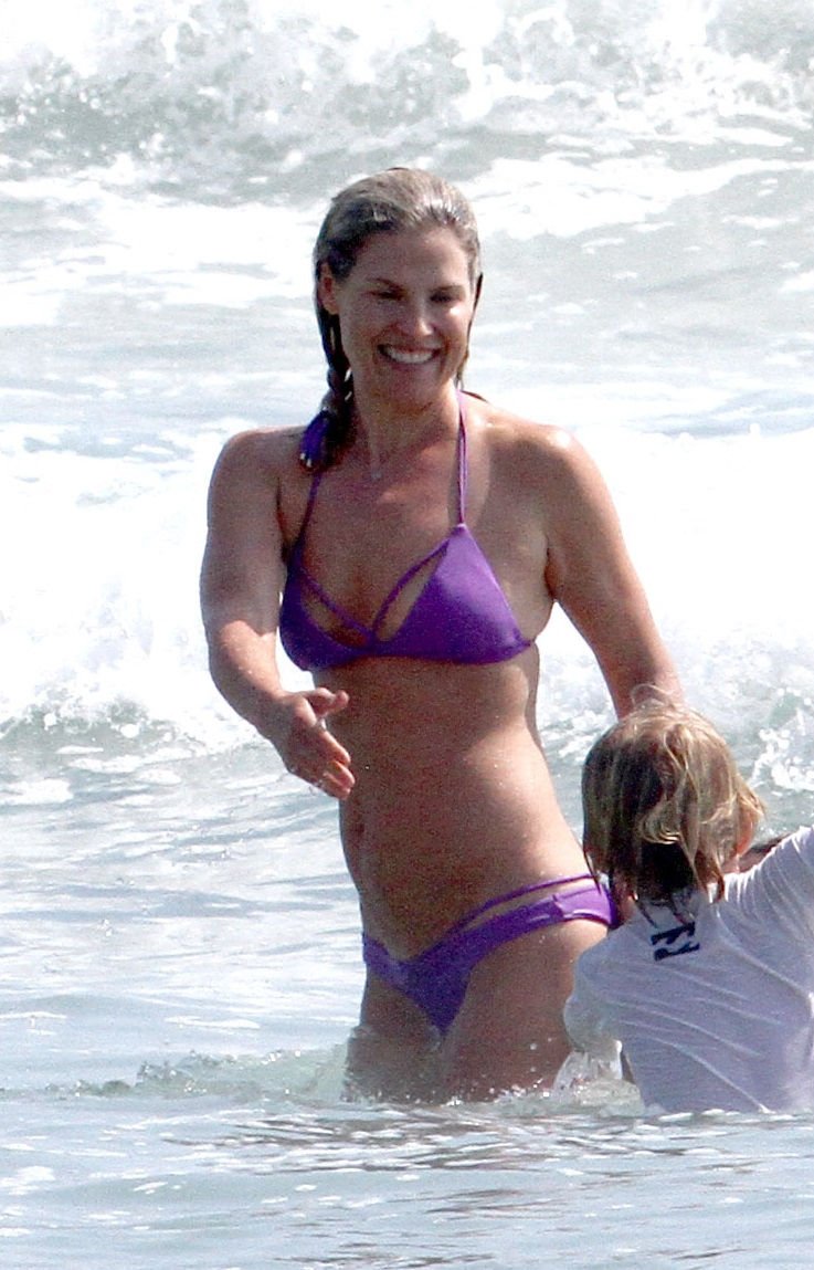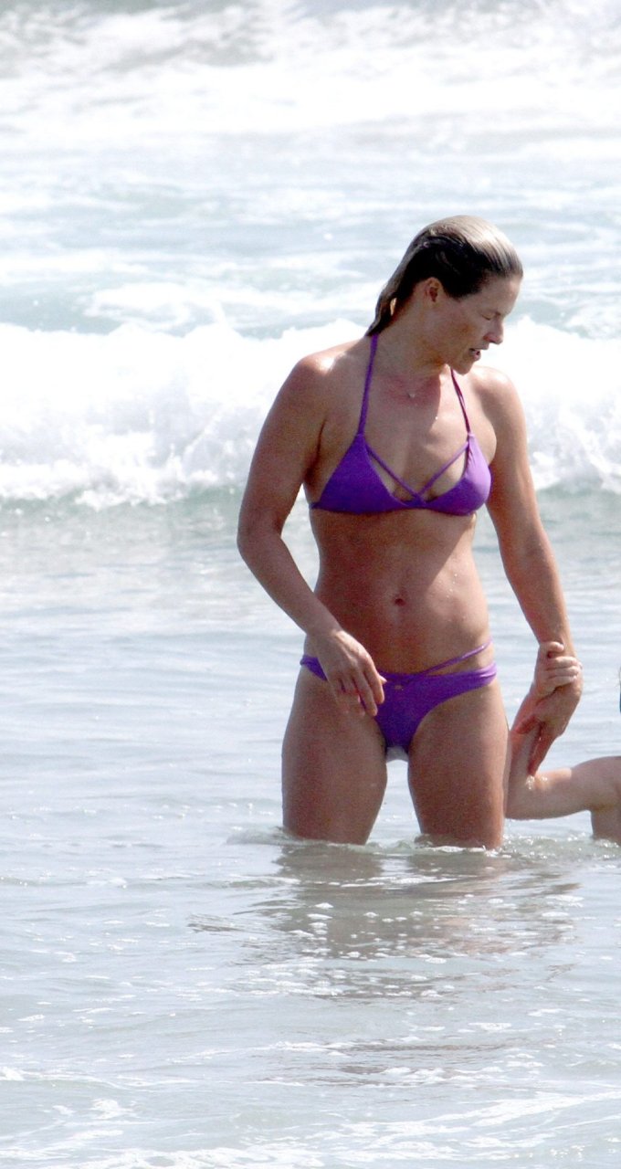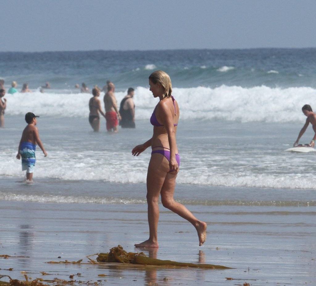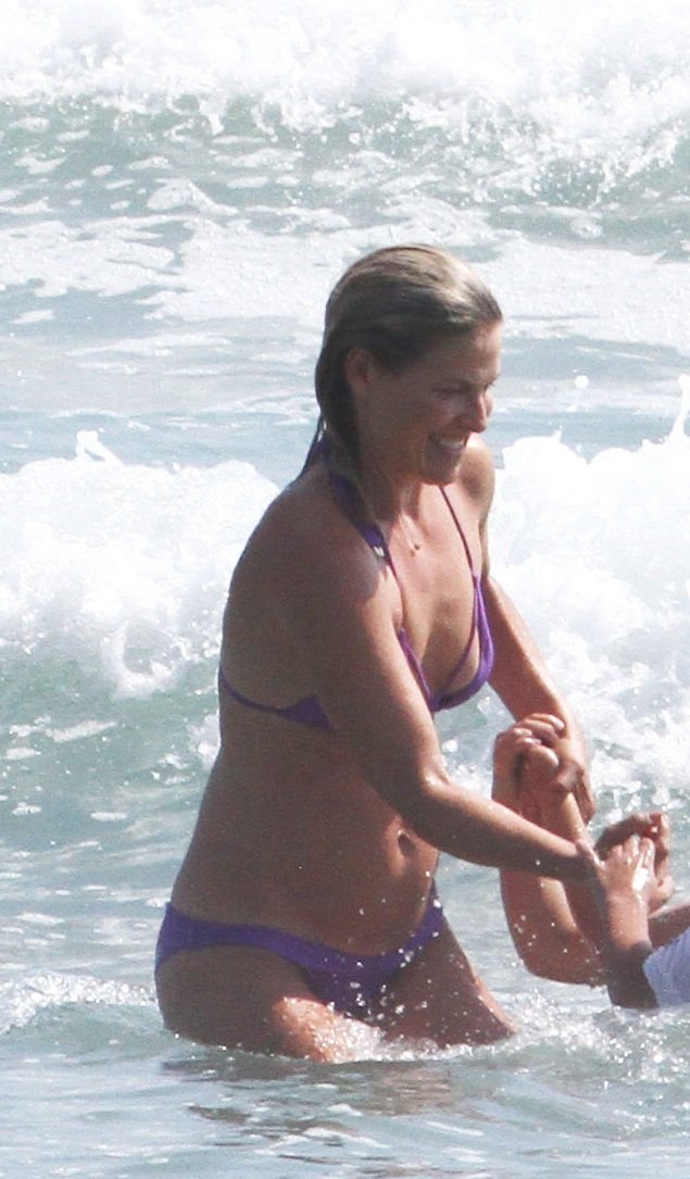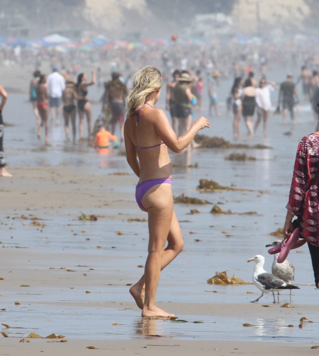 Али Лартер была замечена в бикини, строящей забавные гримасы, когда наносила масло для загара, купалась в океане с детьми и мужем Хейсом МакАртуром на пляже в Малибу, 14.08.2018. Алисон Элизабет (Али) Лартер — американская актриса и бывшая модель. Возраст: 42.