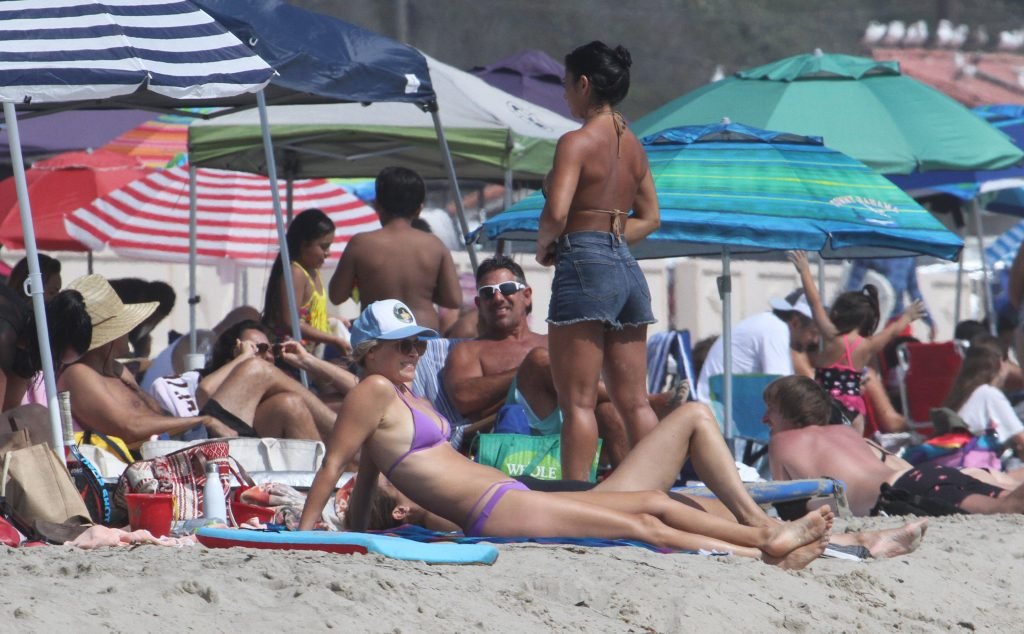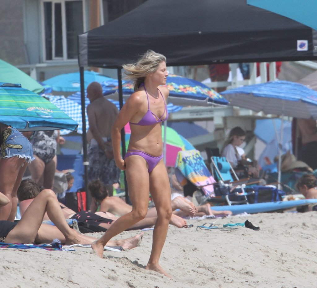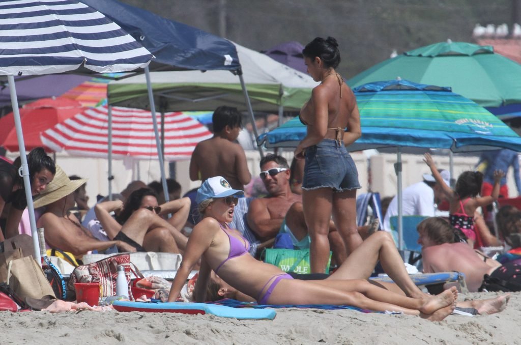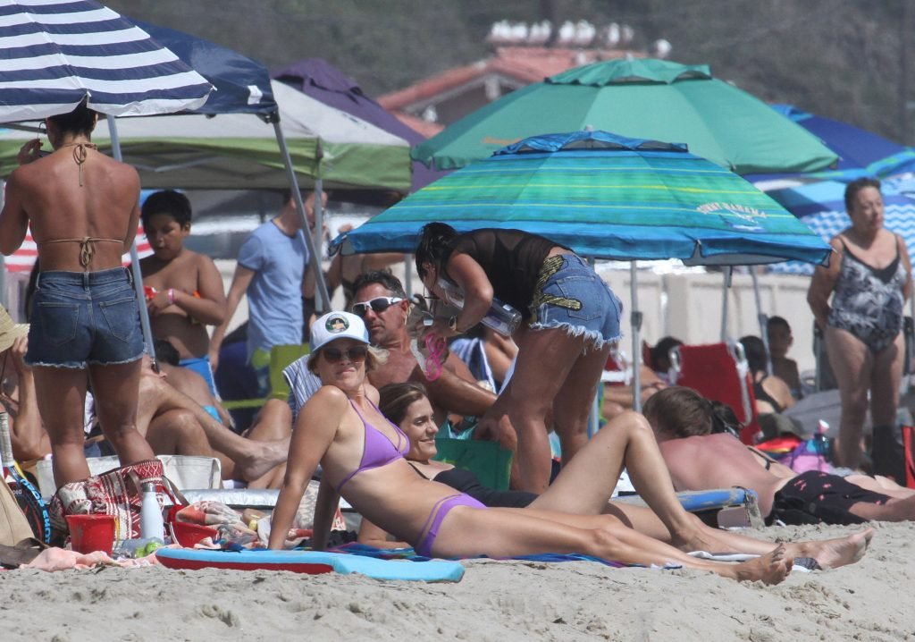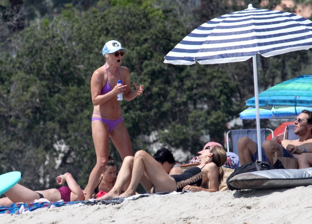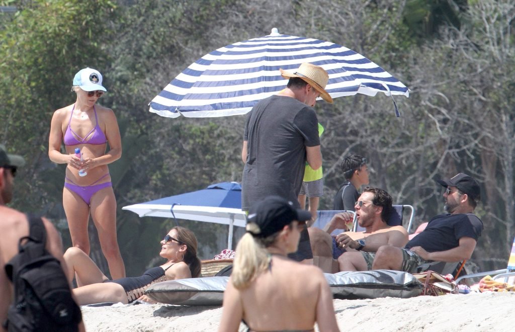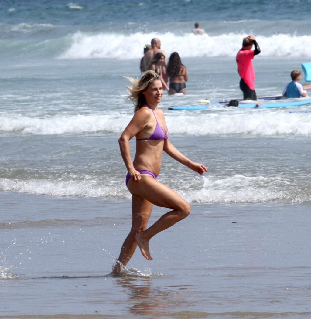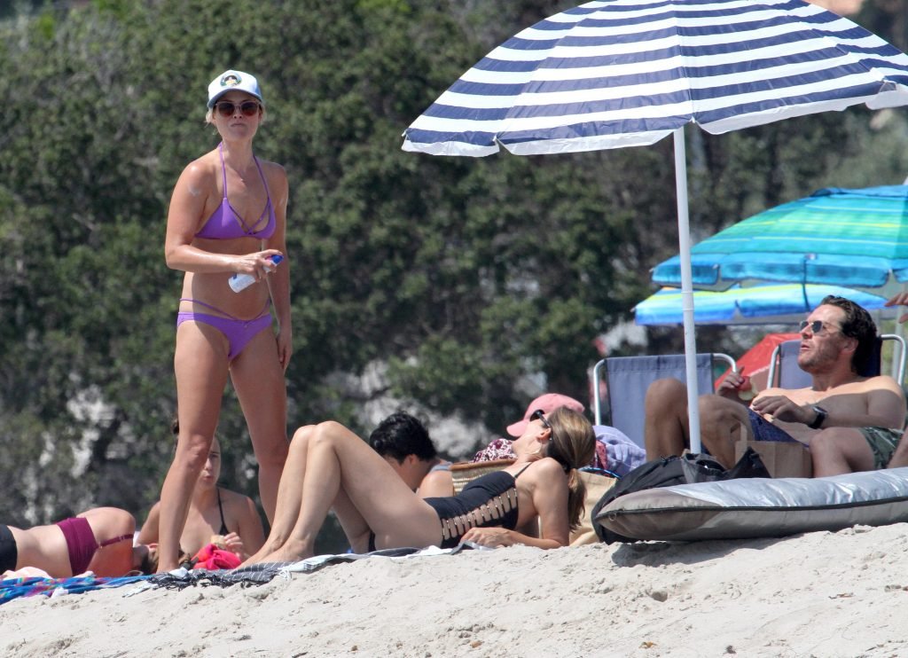 Али Лартер была замечена в бикини, строящей забавные гримасы, когда наносила масло для загара, купалась в океане с детьми и мужем Хейсом МакАртуром на пляже в Малибу, 14.08.2018. Алисон Элизабет (Али) Лартер — американская актриса и бывшая модель. Возраст: 42.