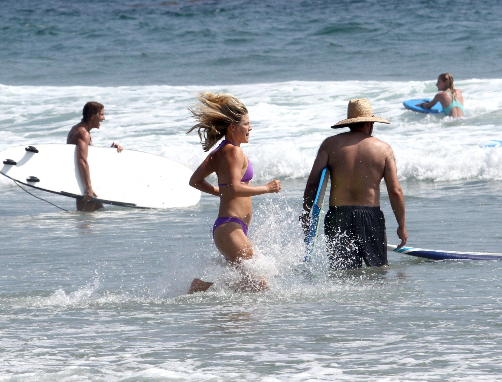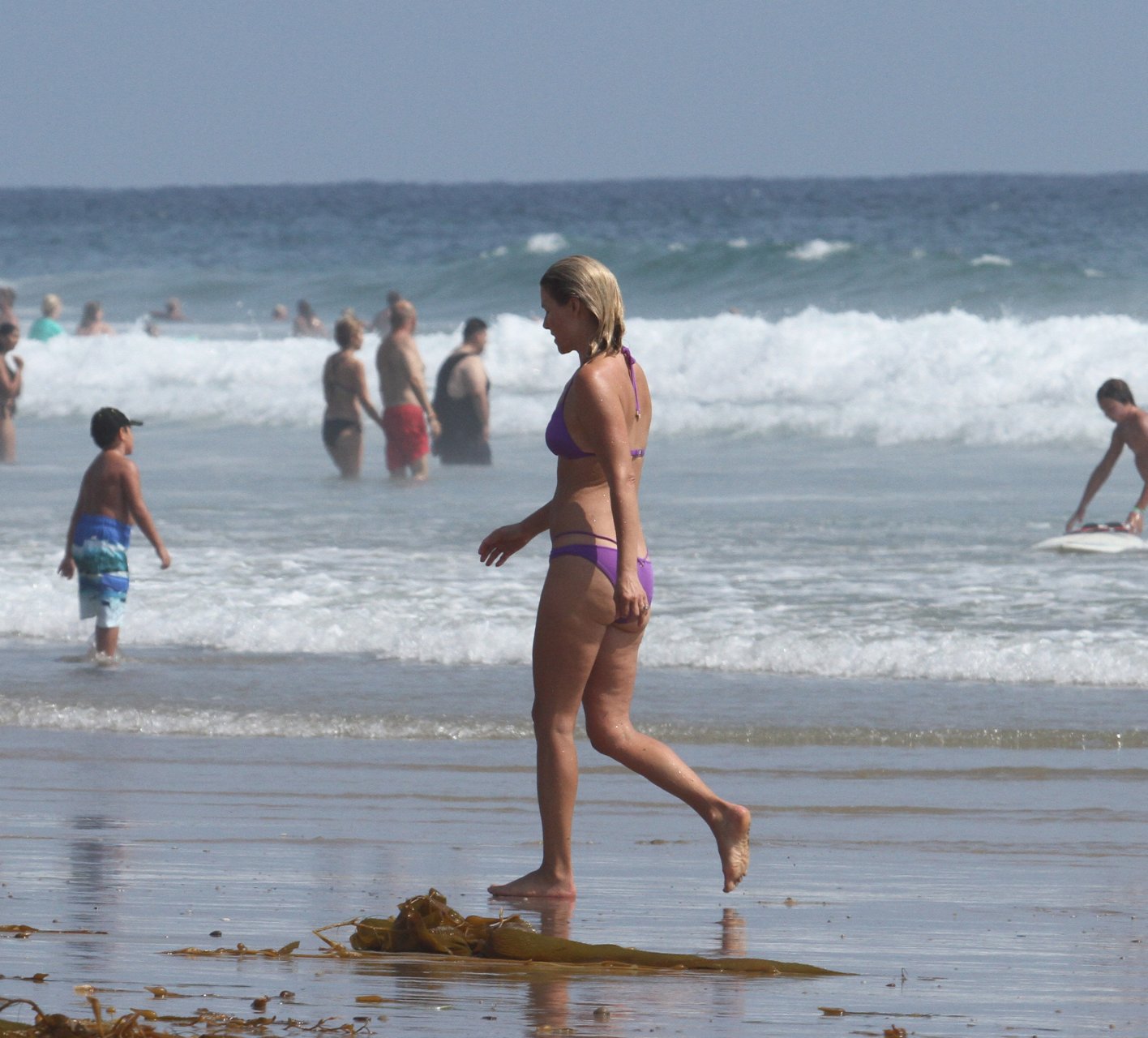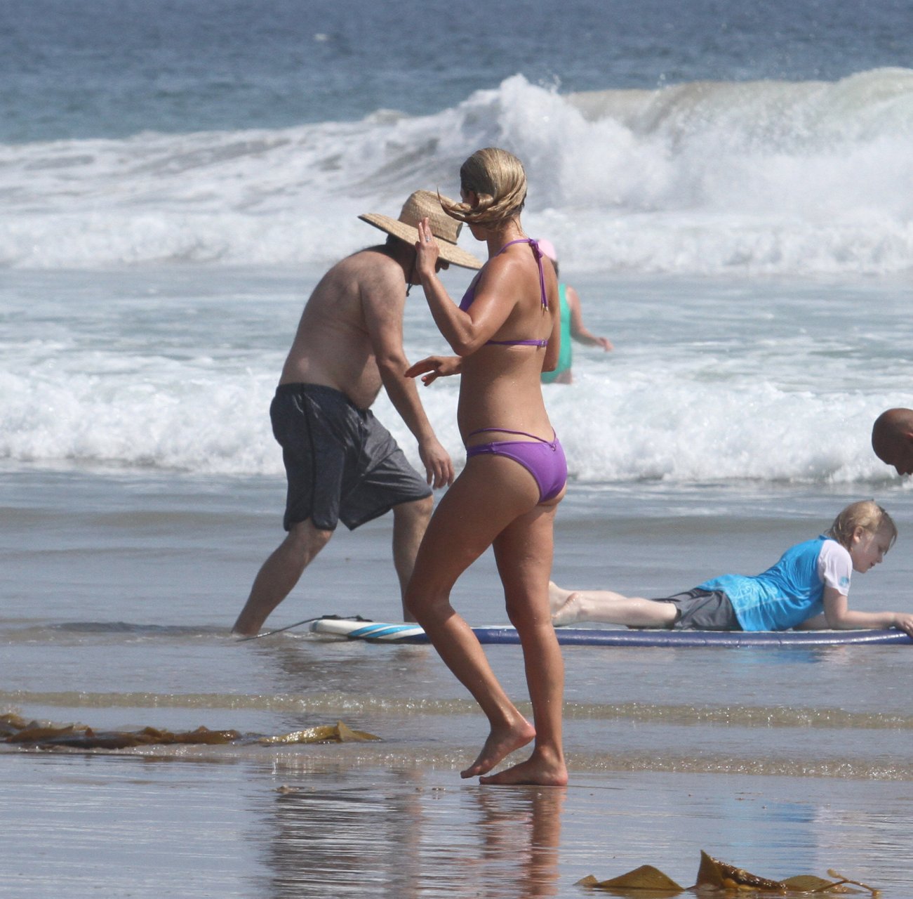 Али Лартер была замечена в бикини, строящей забавные гримасы, когда наносила масло для загара, купалась в океане с детьми и мужем Хейсом МакАртуром на пляже в Малибу, 14.08.2018. Алисон Элизабет (Али) Лартер — американская актриса и бывшая модель. Возраст: 42.