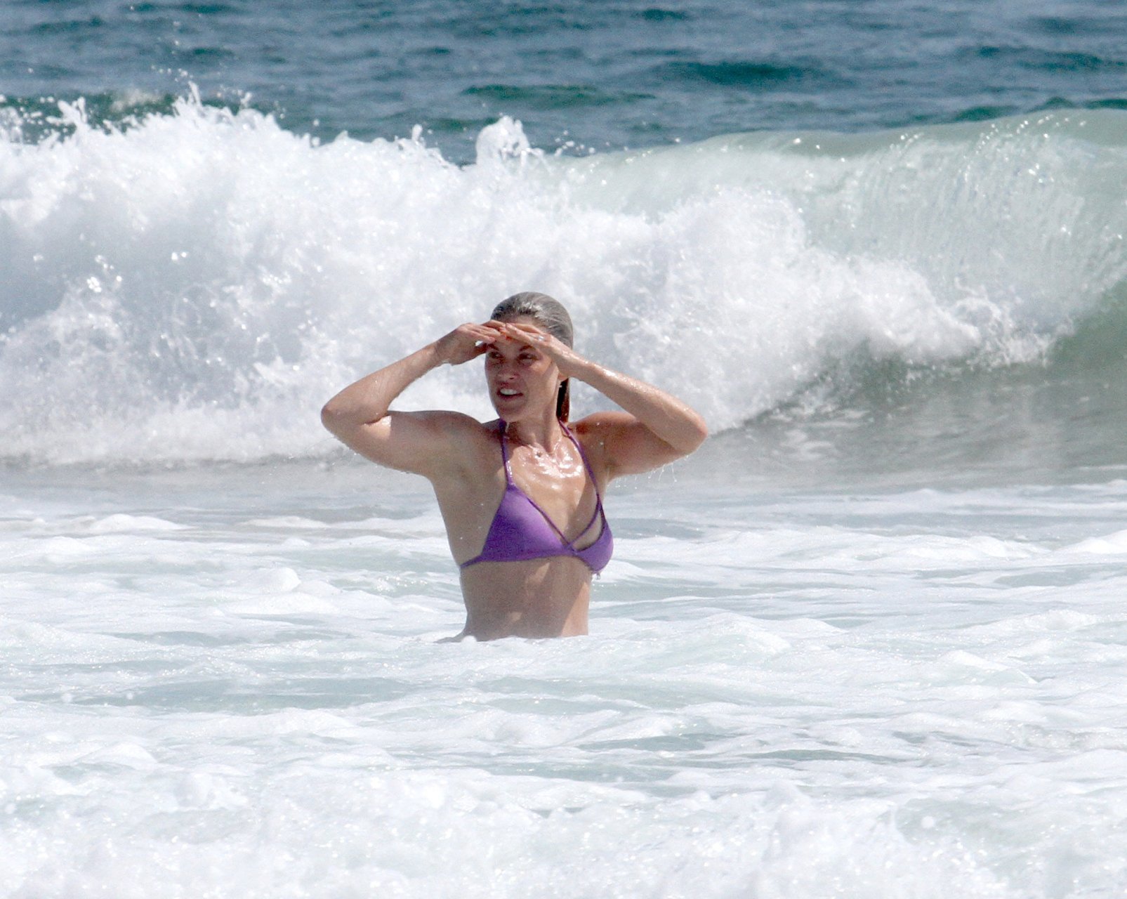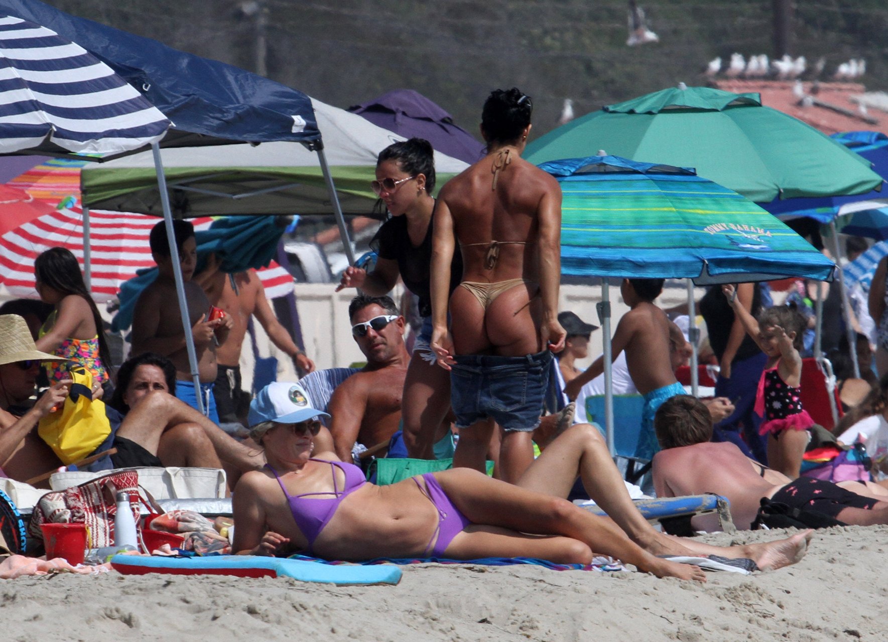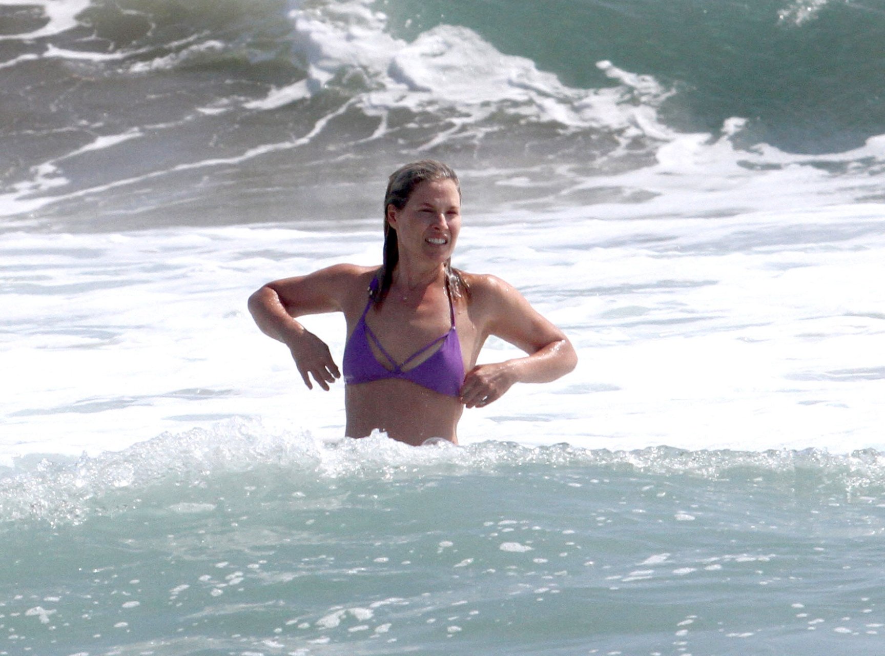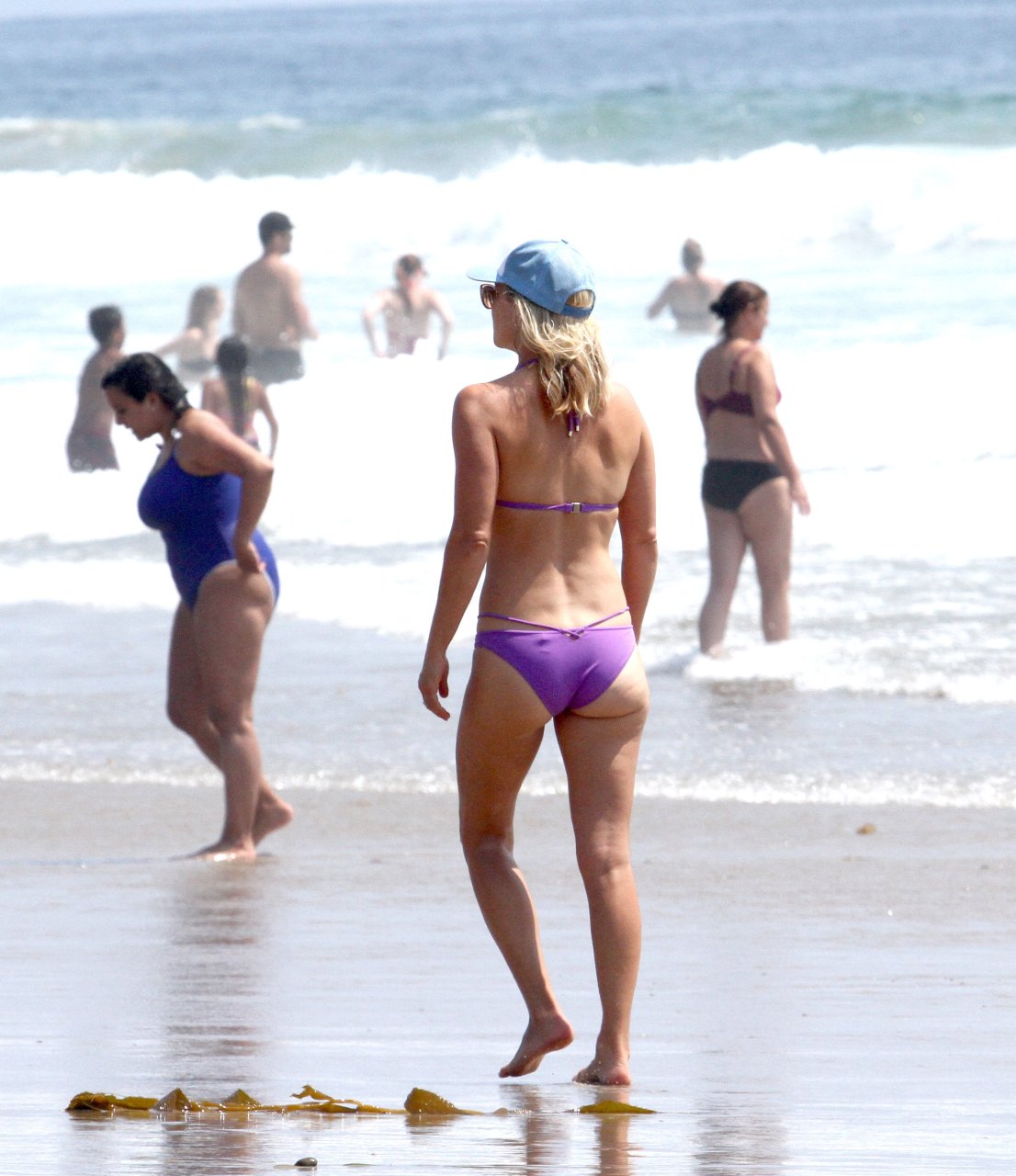 Али Лартер была замечена в бикини, строящей забавные гримасы, когда наносила масло для загара, купалась в океане с детьми и мужем Хейсом МакАртуром на пляже в Малибу, 14.08.2018. Алисон Элизабет (Али) Лартер — американская актриса и бывшая модель. Возраст: 42.