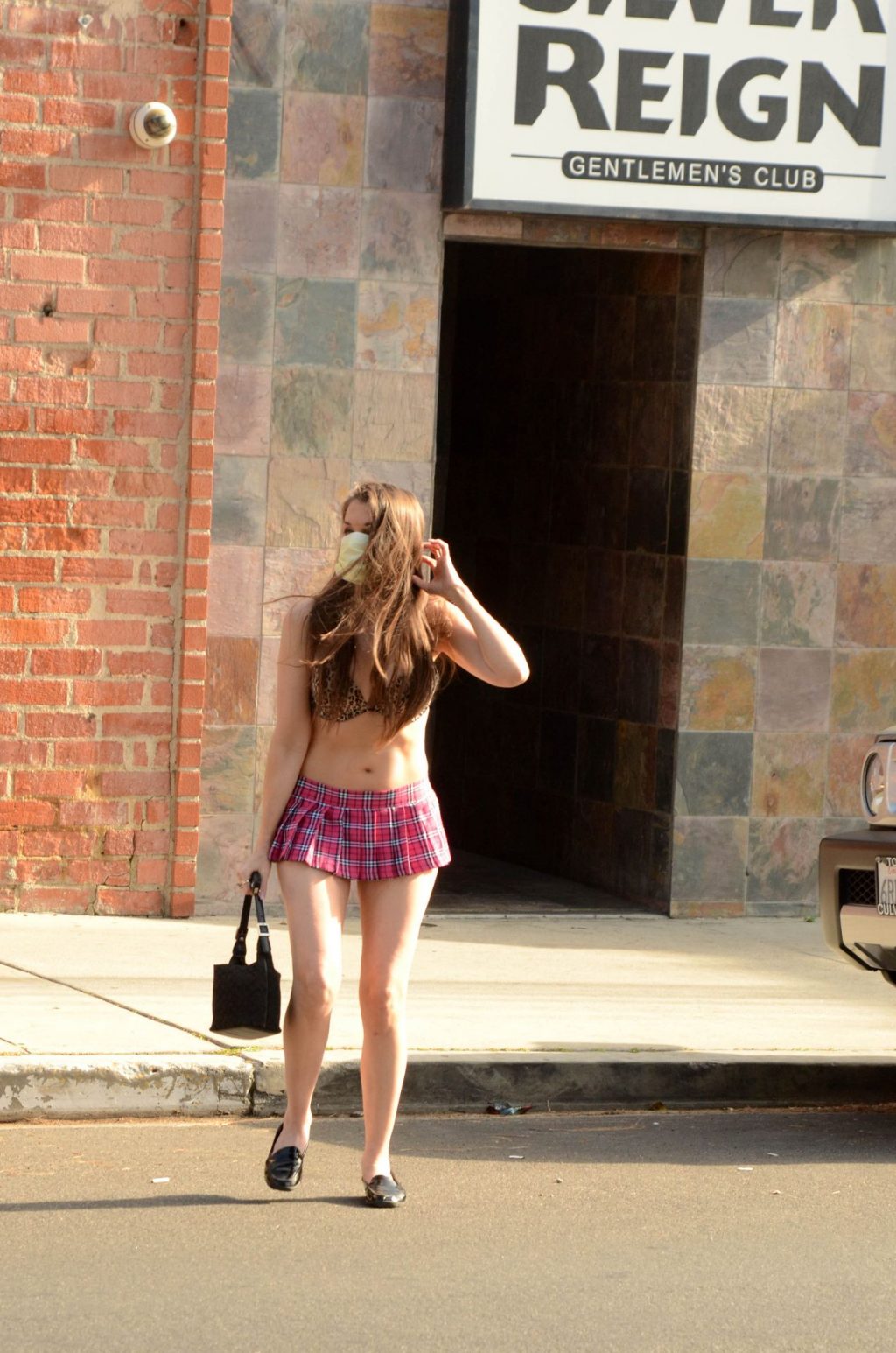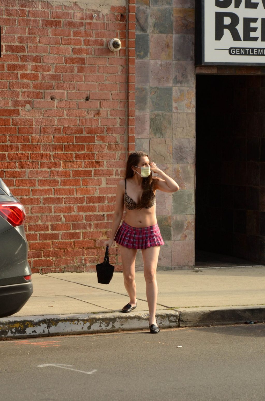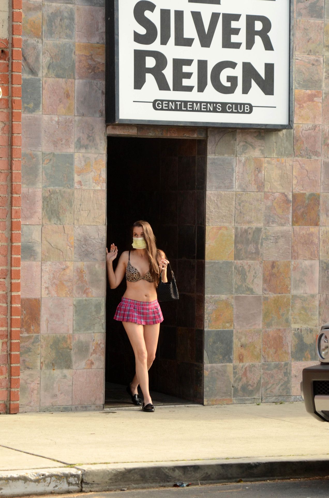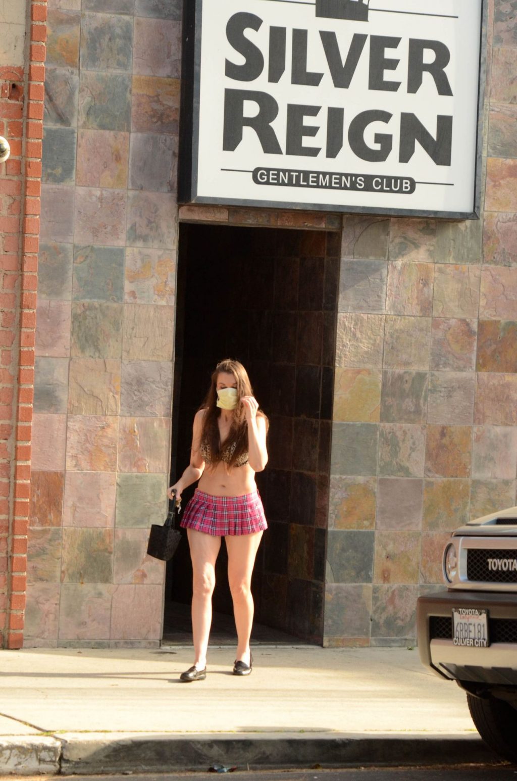Актриса “Спасатели Малибу” Алисия Арден была замечена в стрип-клубе в медицинской маске и откровенной микро-юбке, по всей видимости без нижнего белья, в Лос-Анджелесе, 18.03.2020.