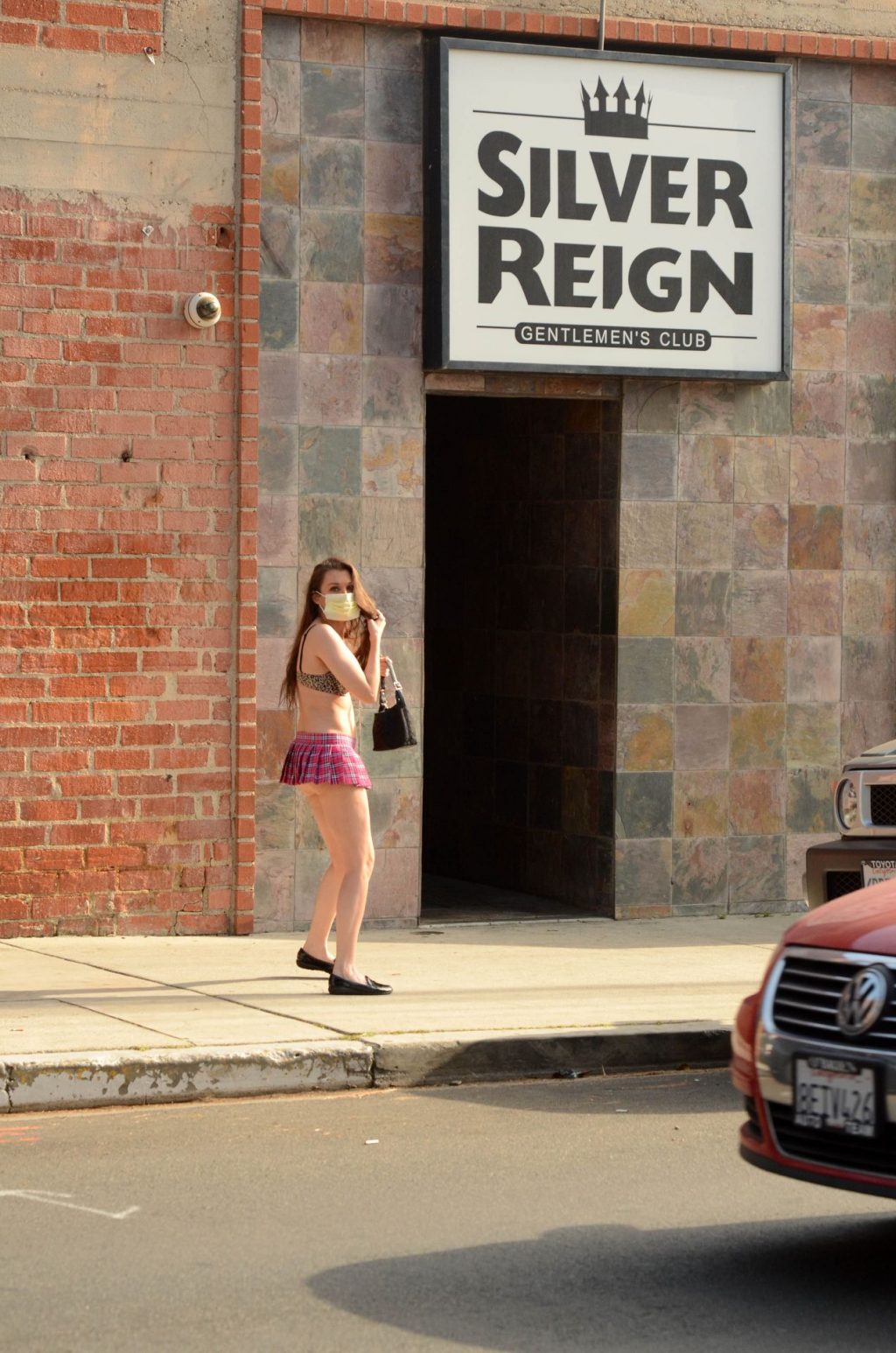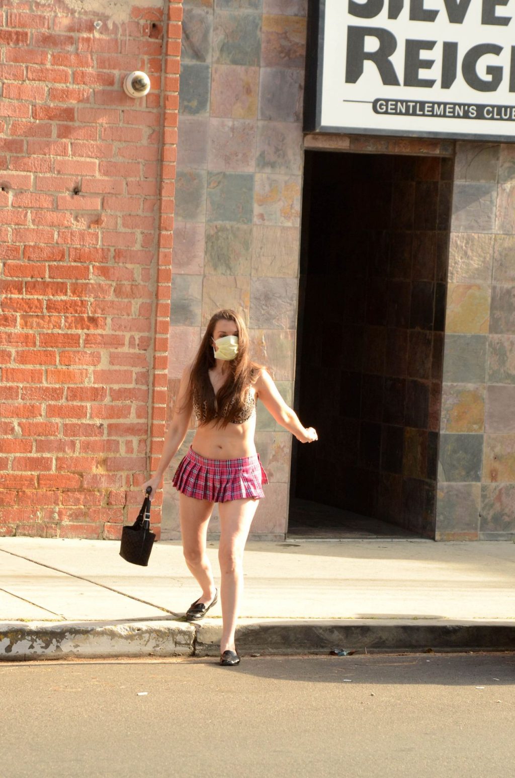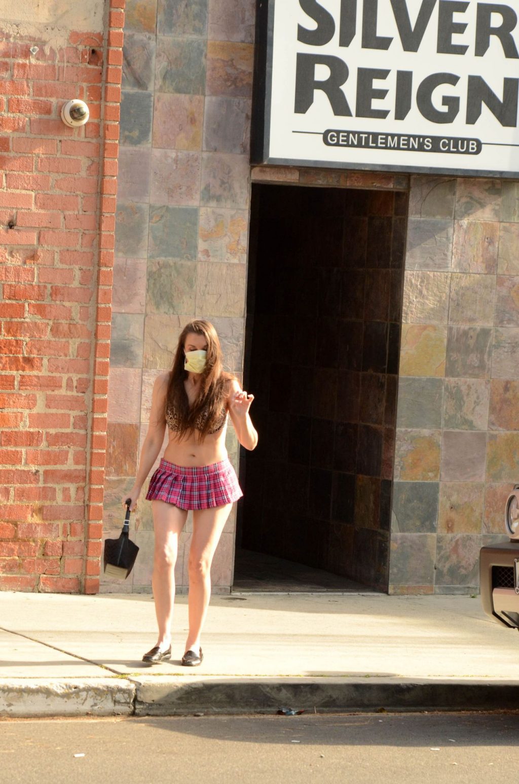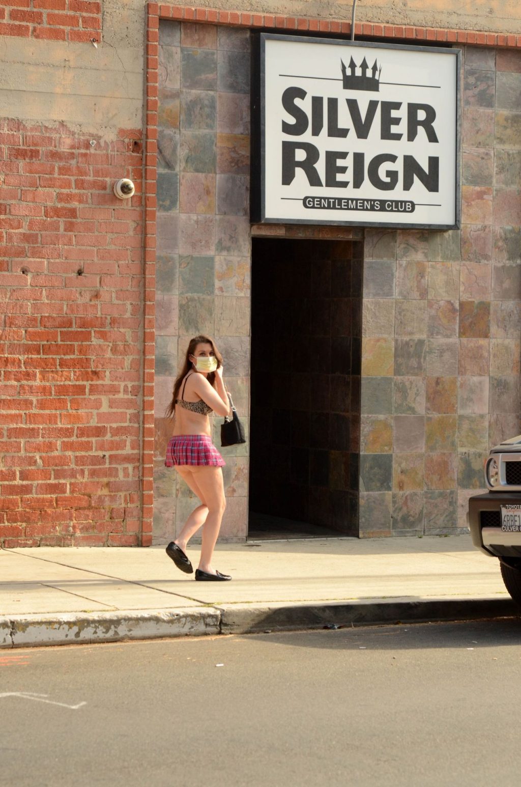 Актриса “Спасатели Малибу” Алисия Арден была замечена в стрип-клубе в медицинской маске и откровенной микро-юбке, по всей видимости без нижнего белья, в Лос-Анджелесе, 18.03.2020.