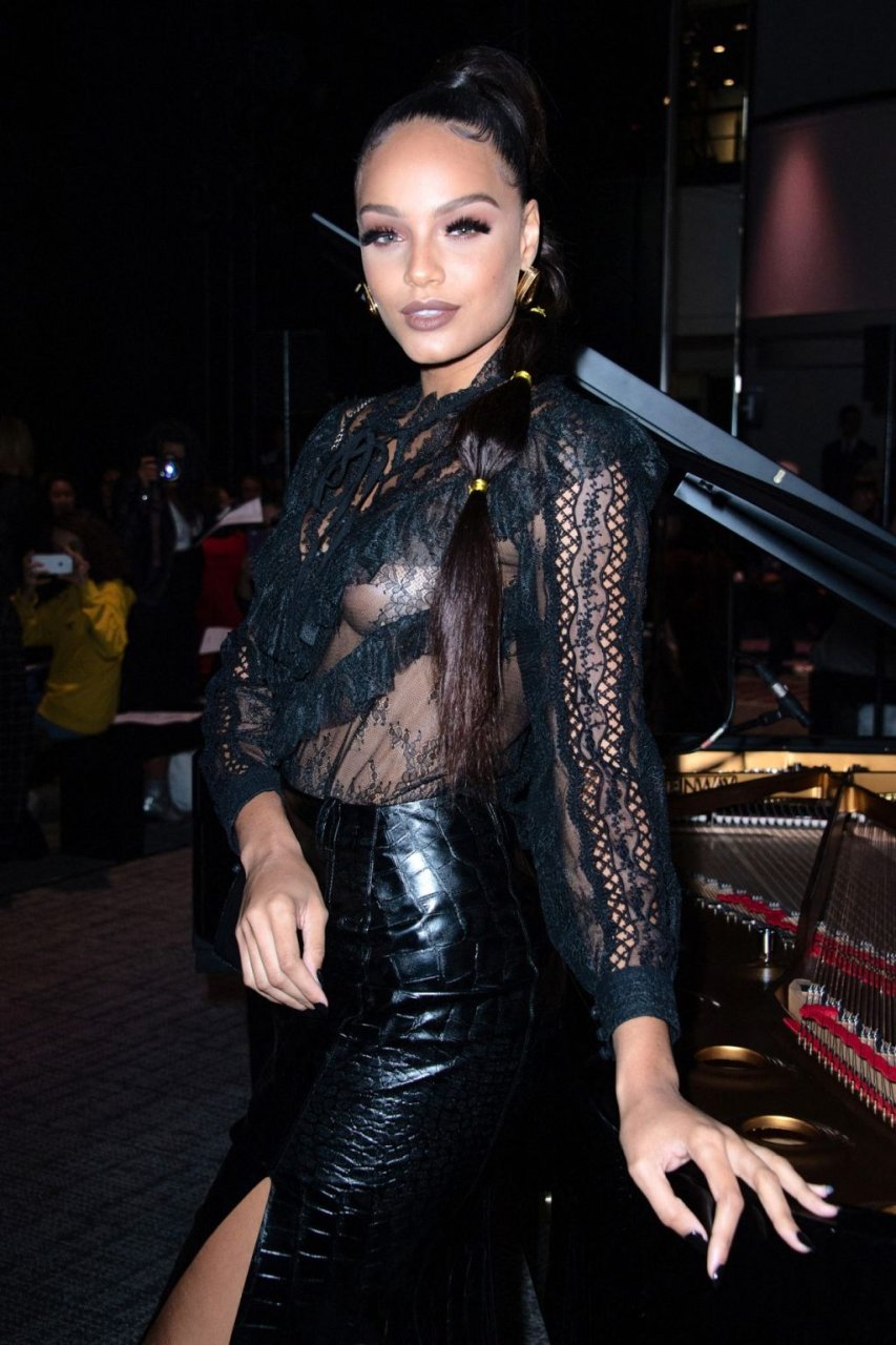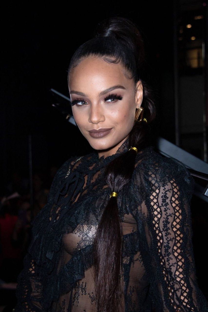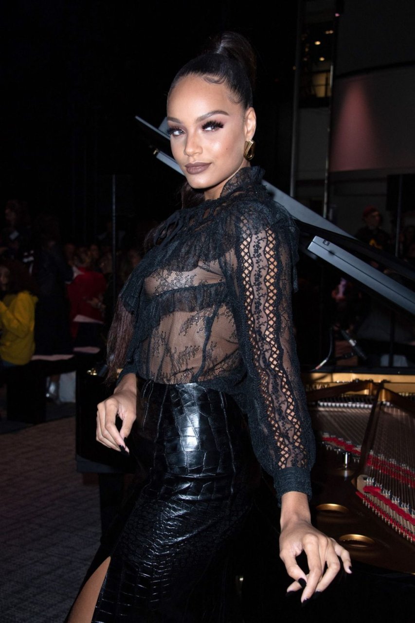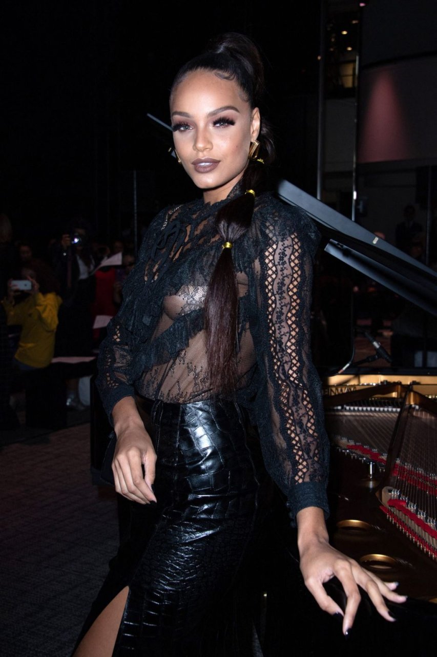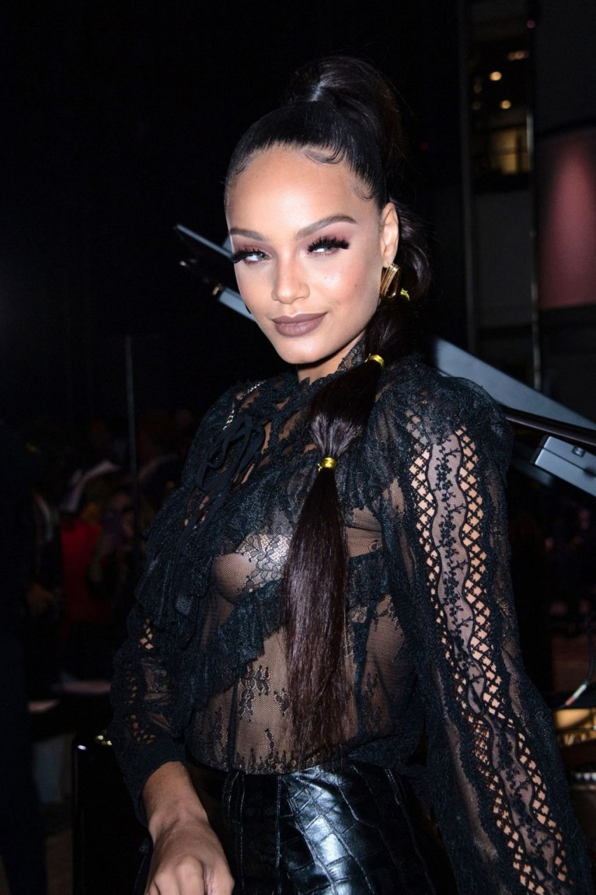 Французская модель Алисия Айлис (21) была замечена без бюстгальтера, в прозрачной черной блузке, во время показа женской одежды Guy Laroche Весна/Лето 2020 в рамках Парижской недели моды в Париже, 25.09.2019.