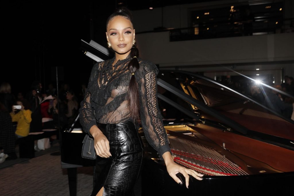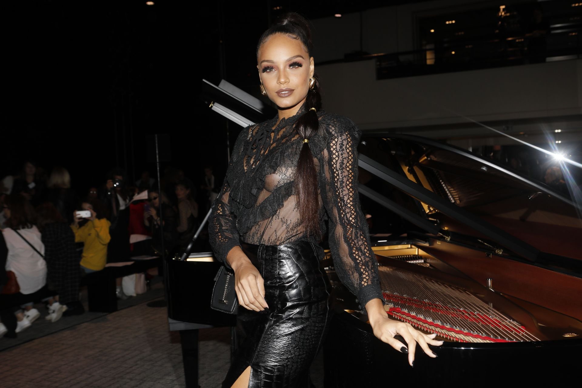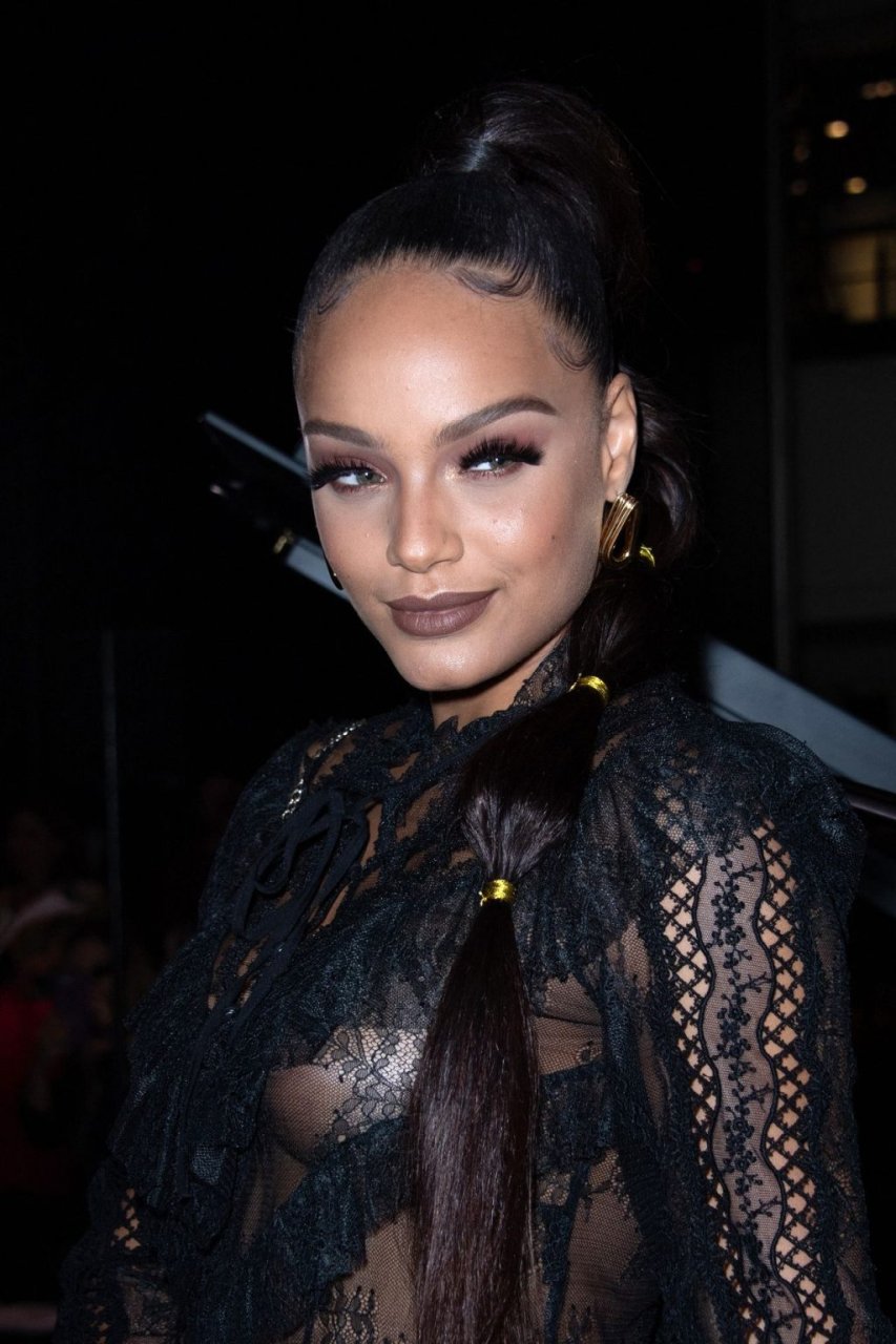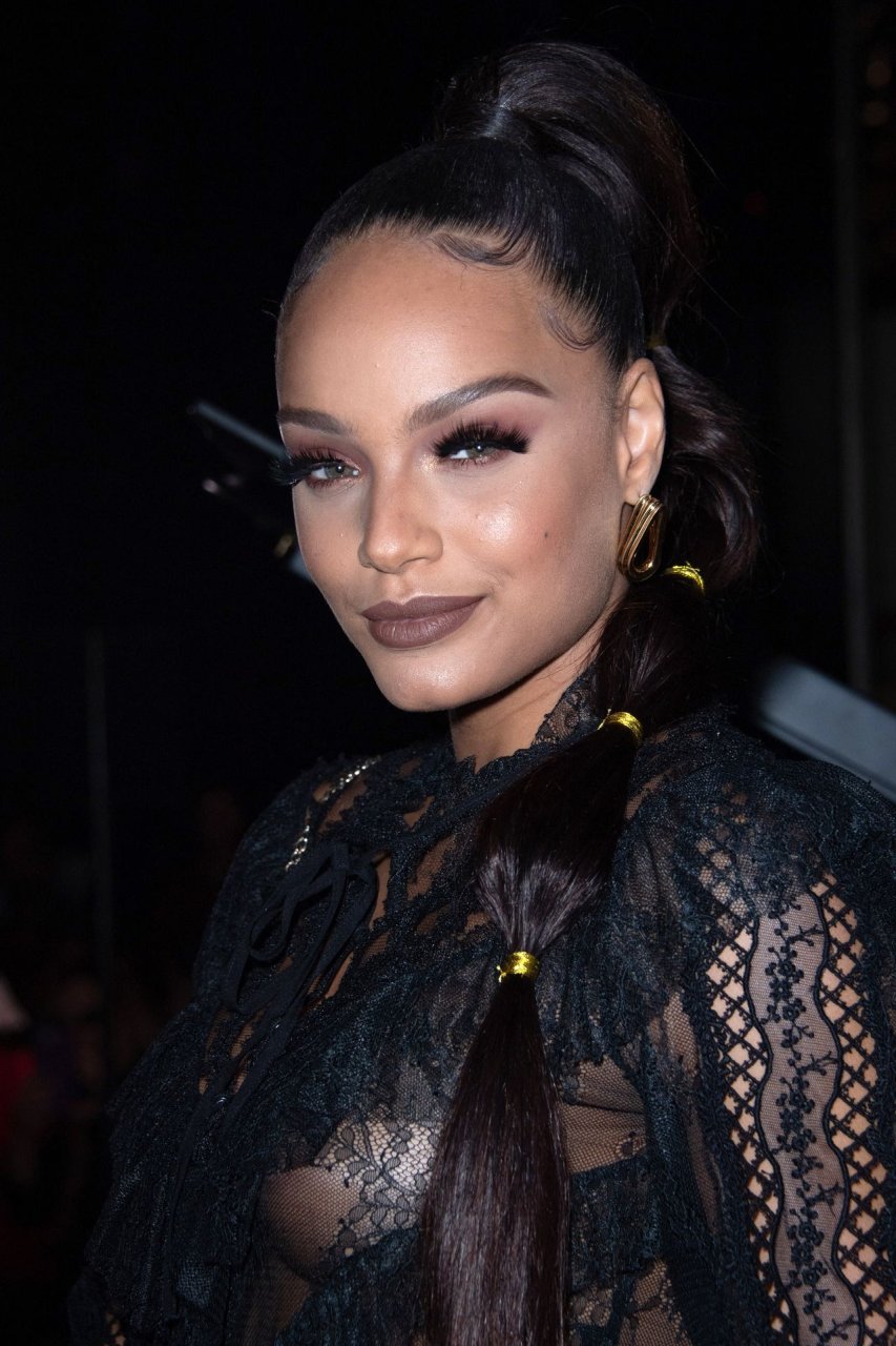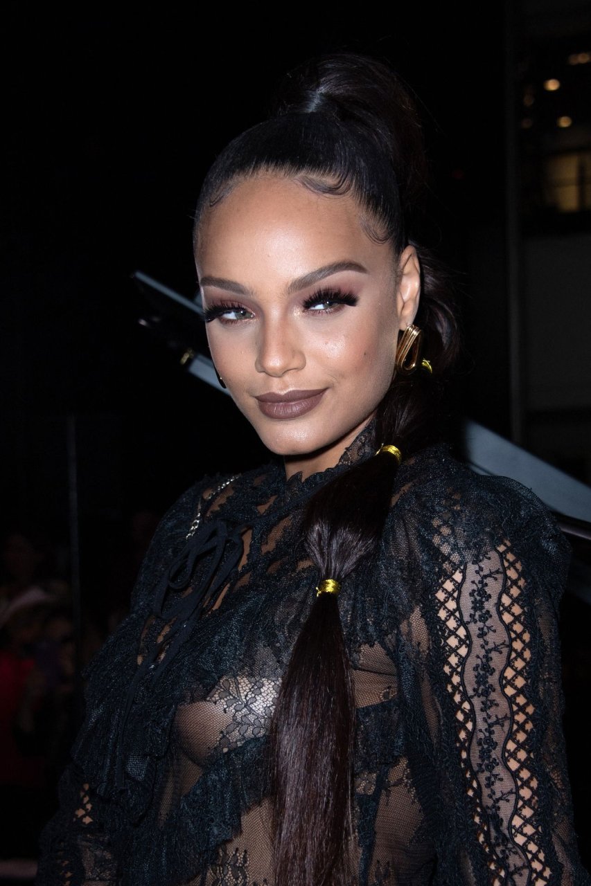 Французская модель Алисия Айлис (21) была замечена без бюстгальтера, в прозрачной черной блузке, во время показа женской одежды Guy Laroche Весна/Лето 2020 в рамках Парижской недели моды в Париже, 25.09.2019.