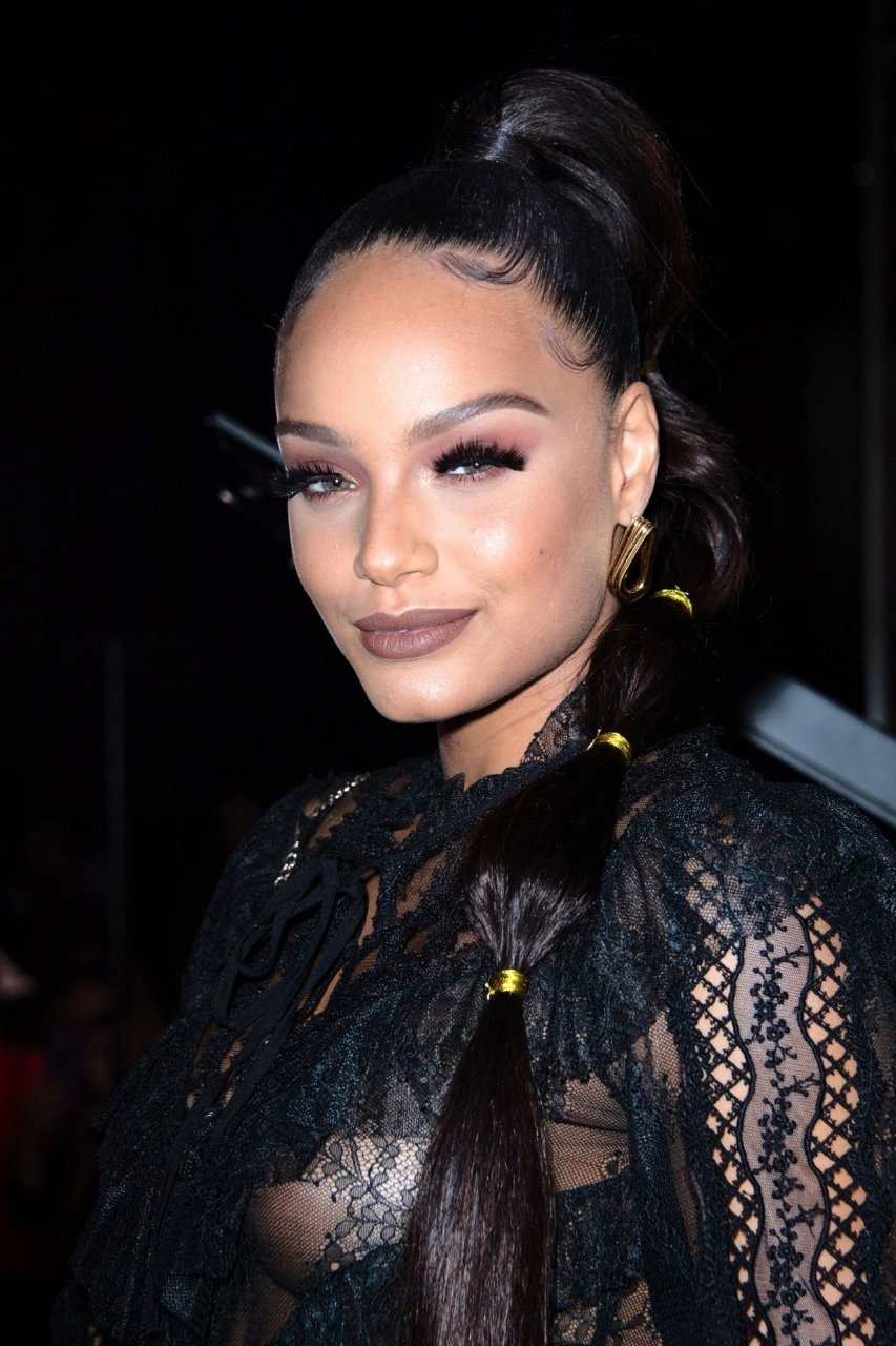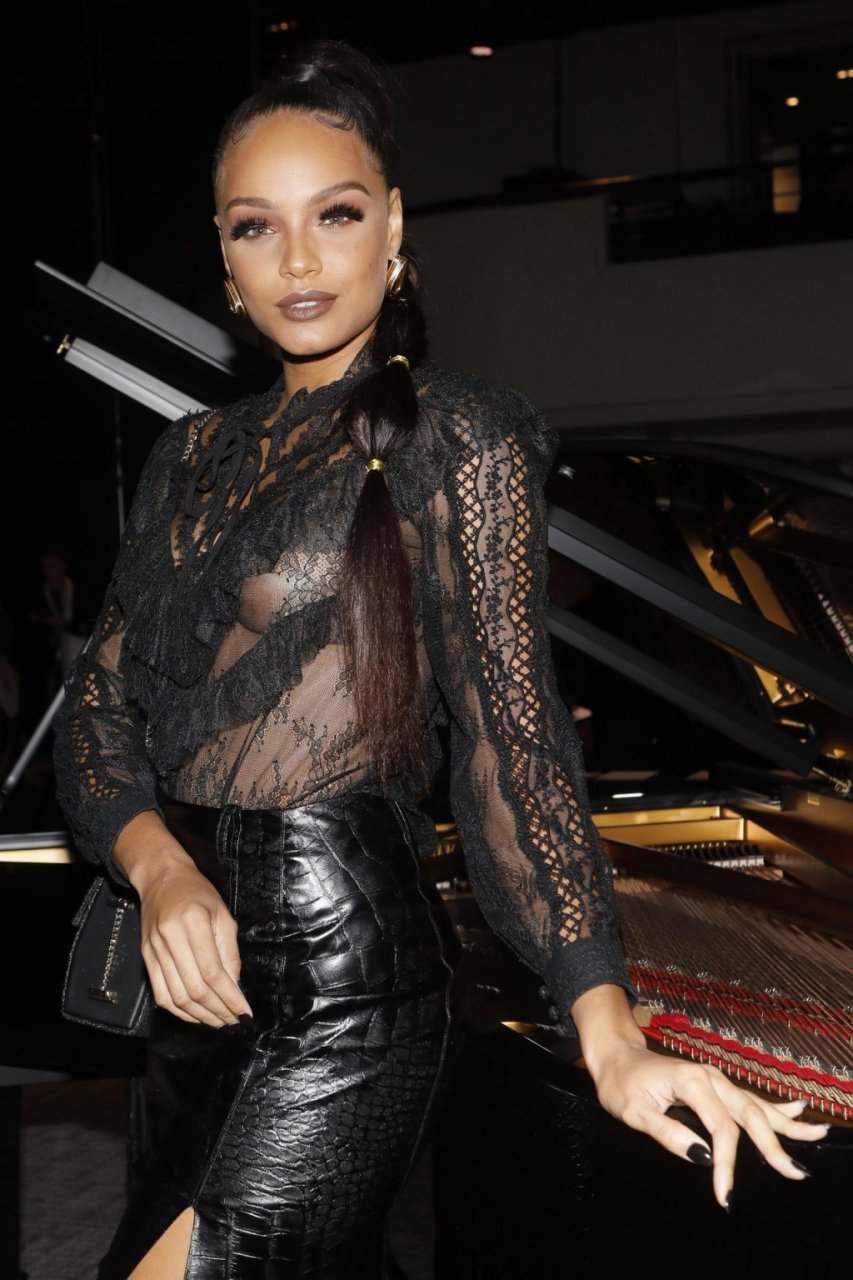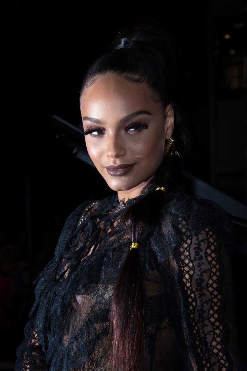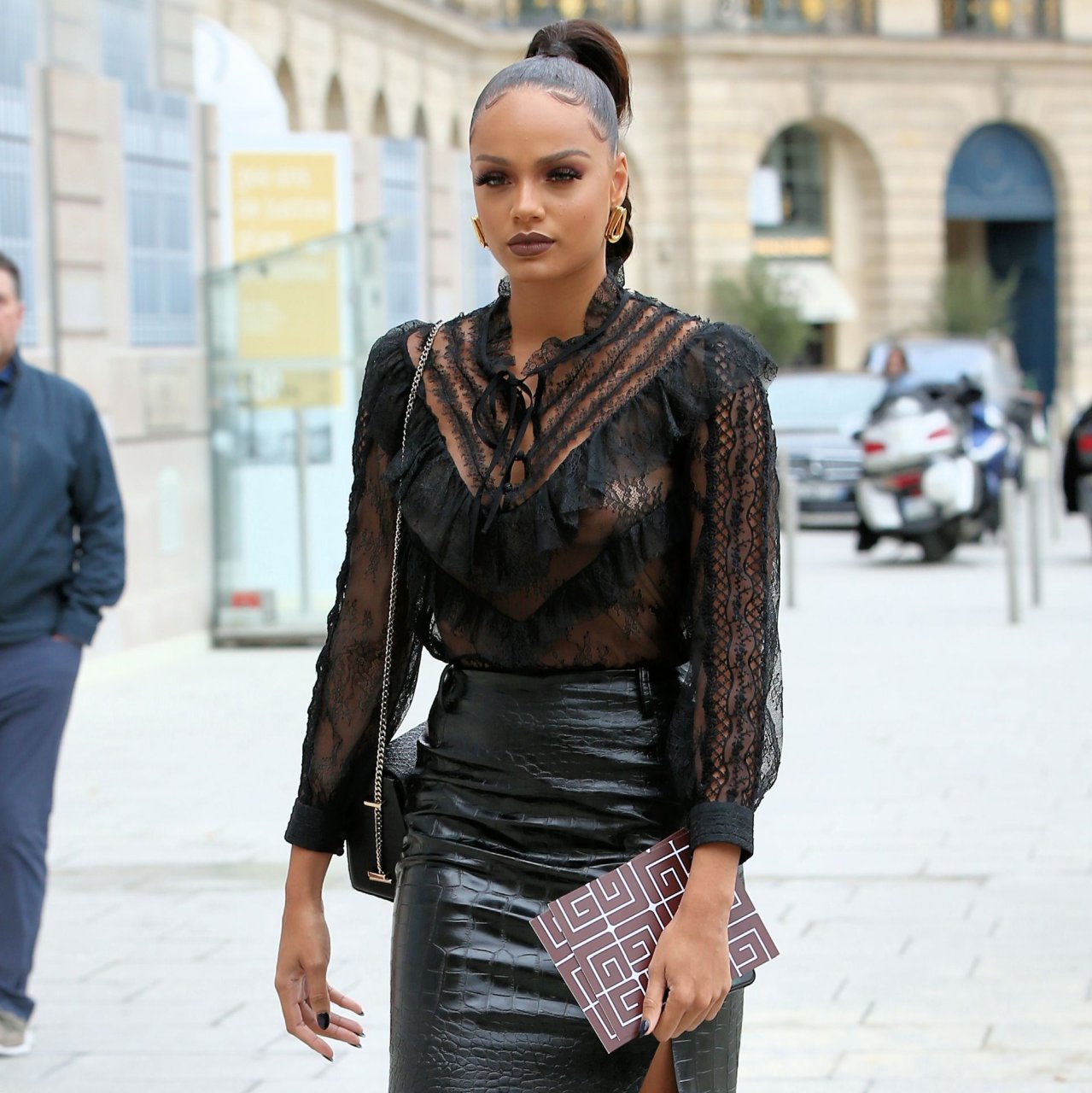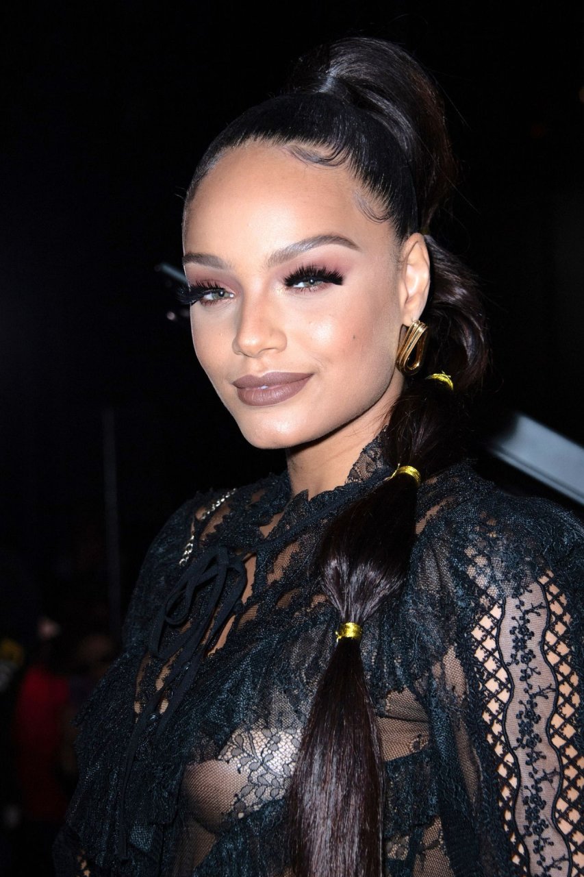 Французская модель Алисия Айлис (21) была замечена без бюстгальтера, в прозрачной черной блузке, во время показа женской одежды Guy Laroche Весна/Лето 2020 в рамках Парижской недели моды в Париже, 25.09.2019.