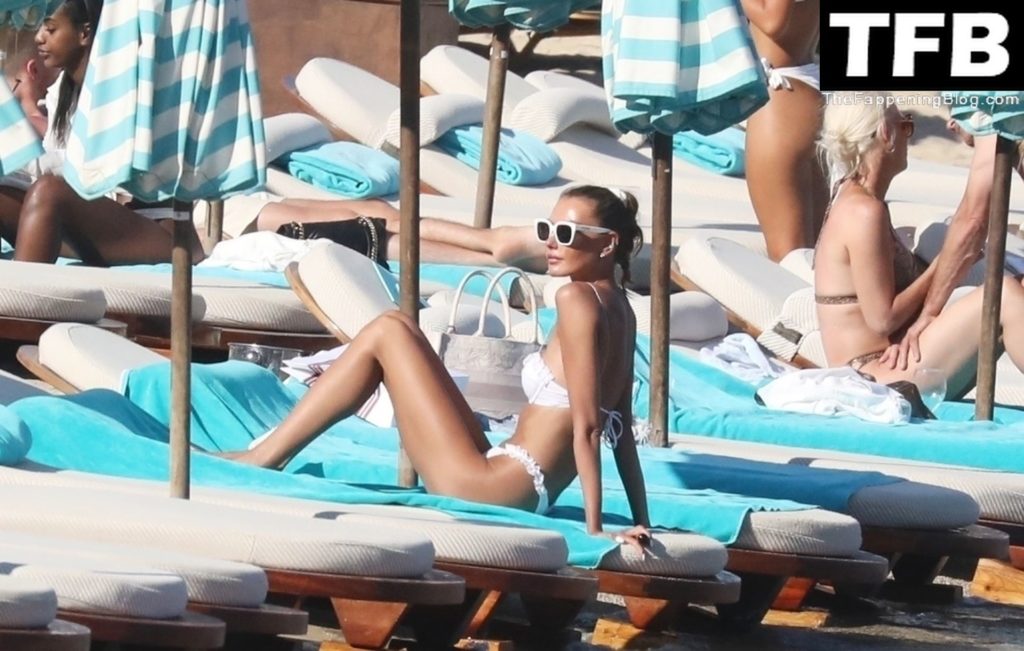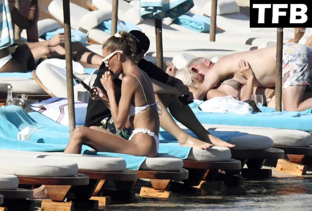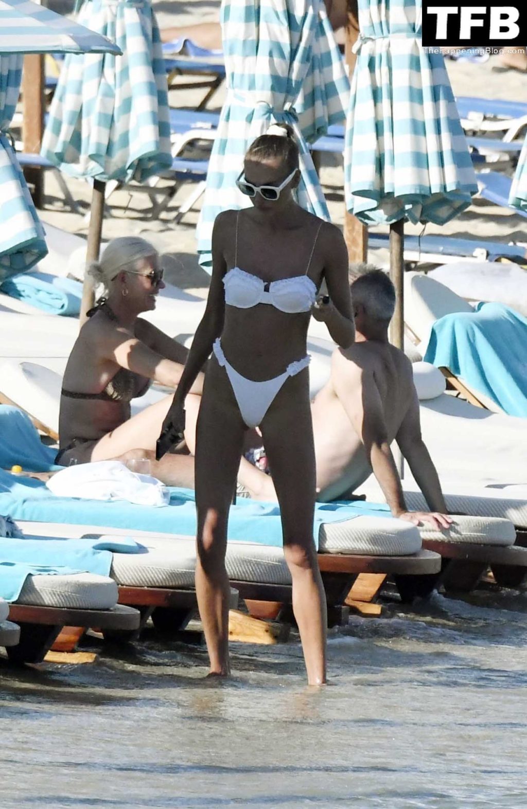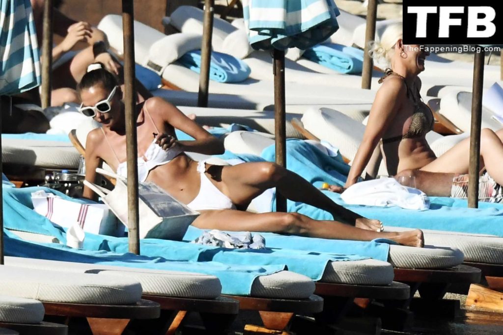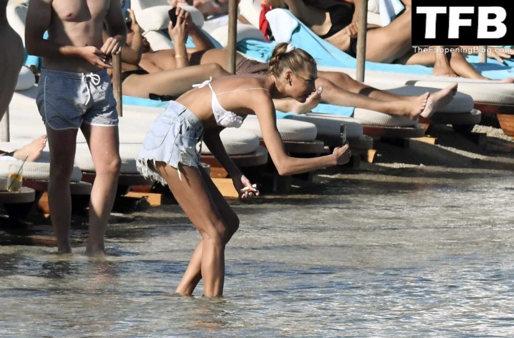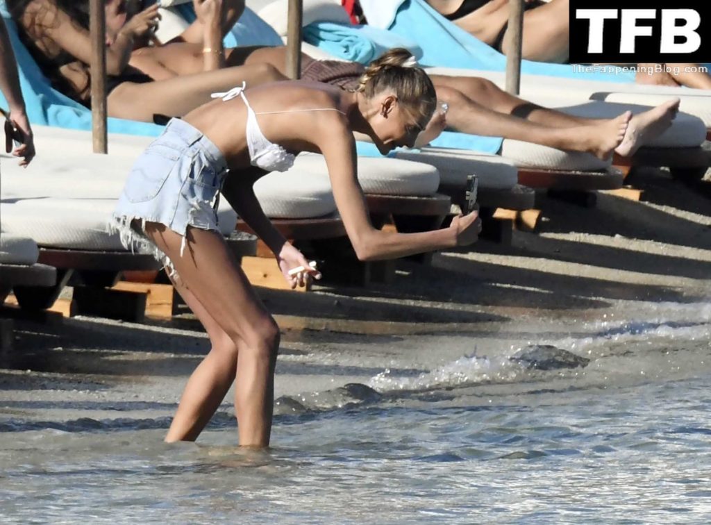 Несмотря на проблемы на родине в Украине, топ-модель из Украины Алина Байкова может расслабиться под греческим солнцем, одетая в крошечное белое бикини и белые солнцезащитные очки, демонстрируя свое модельное тело на пляже, 16.06.2022.